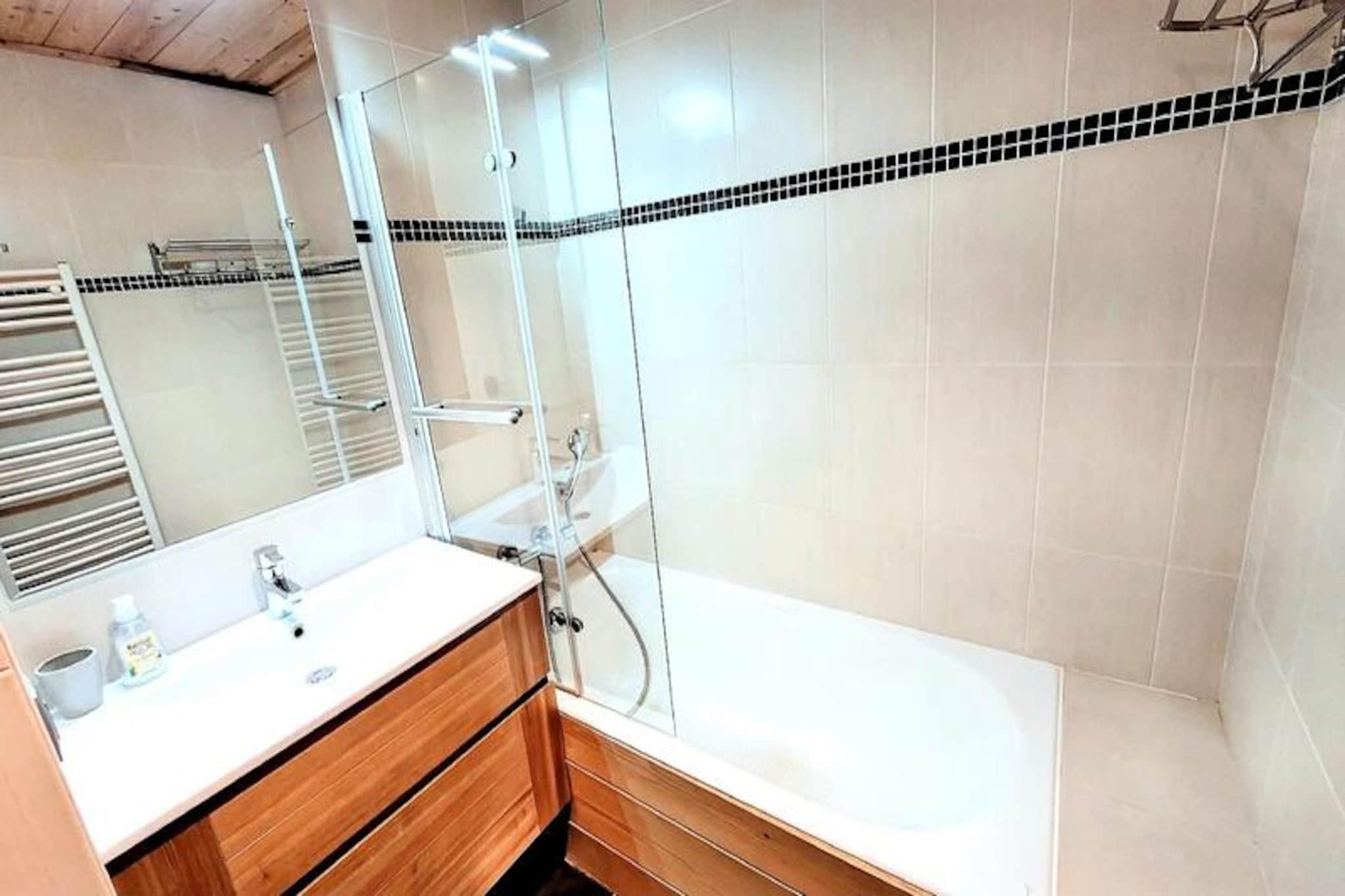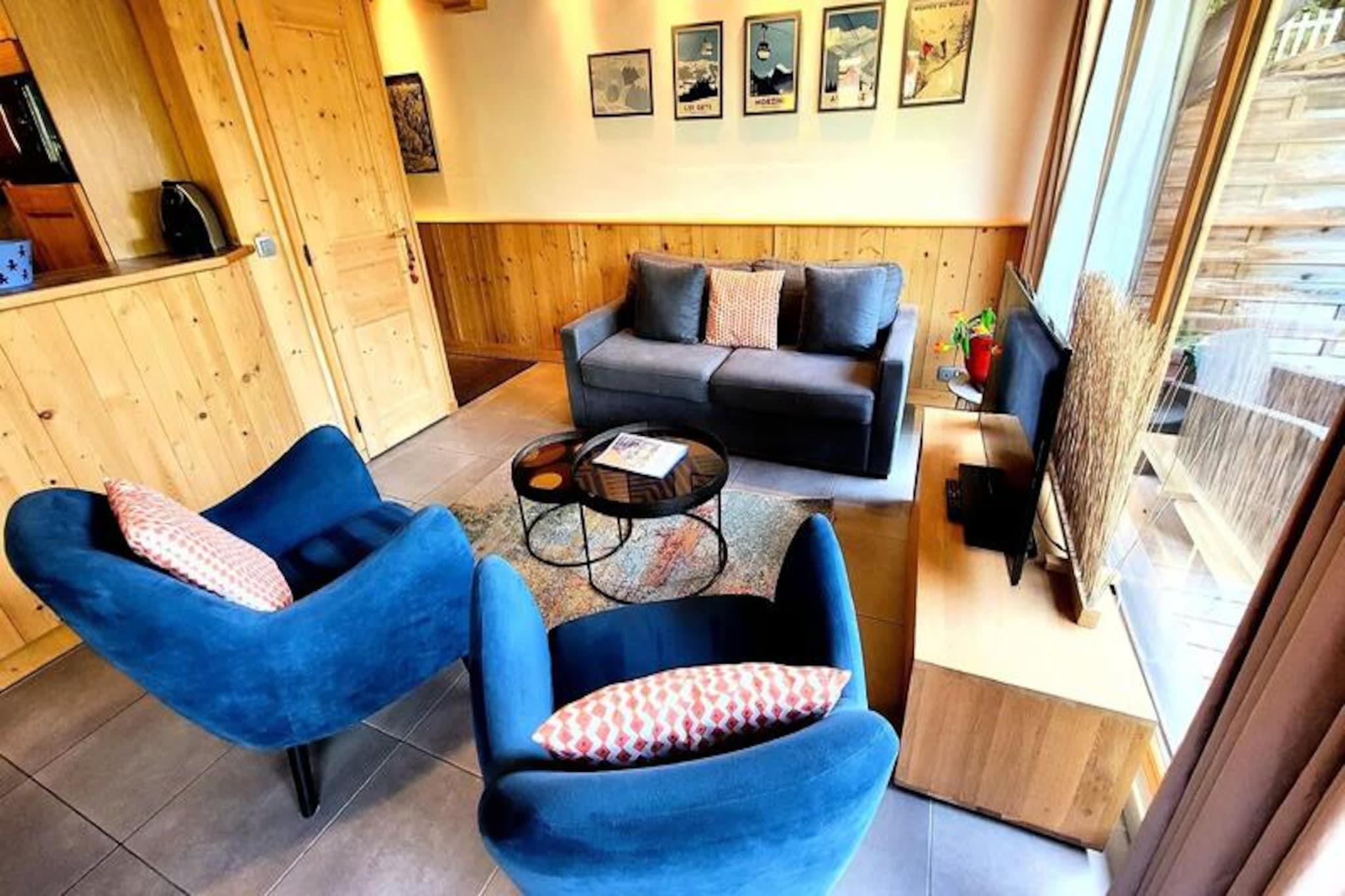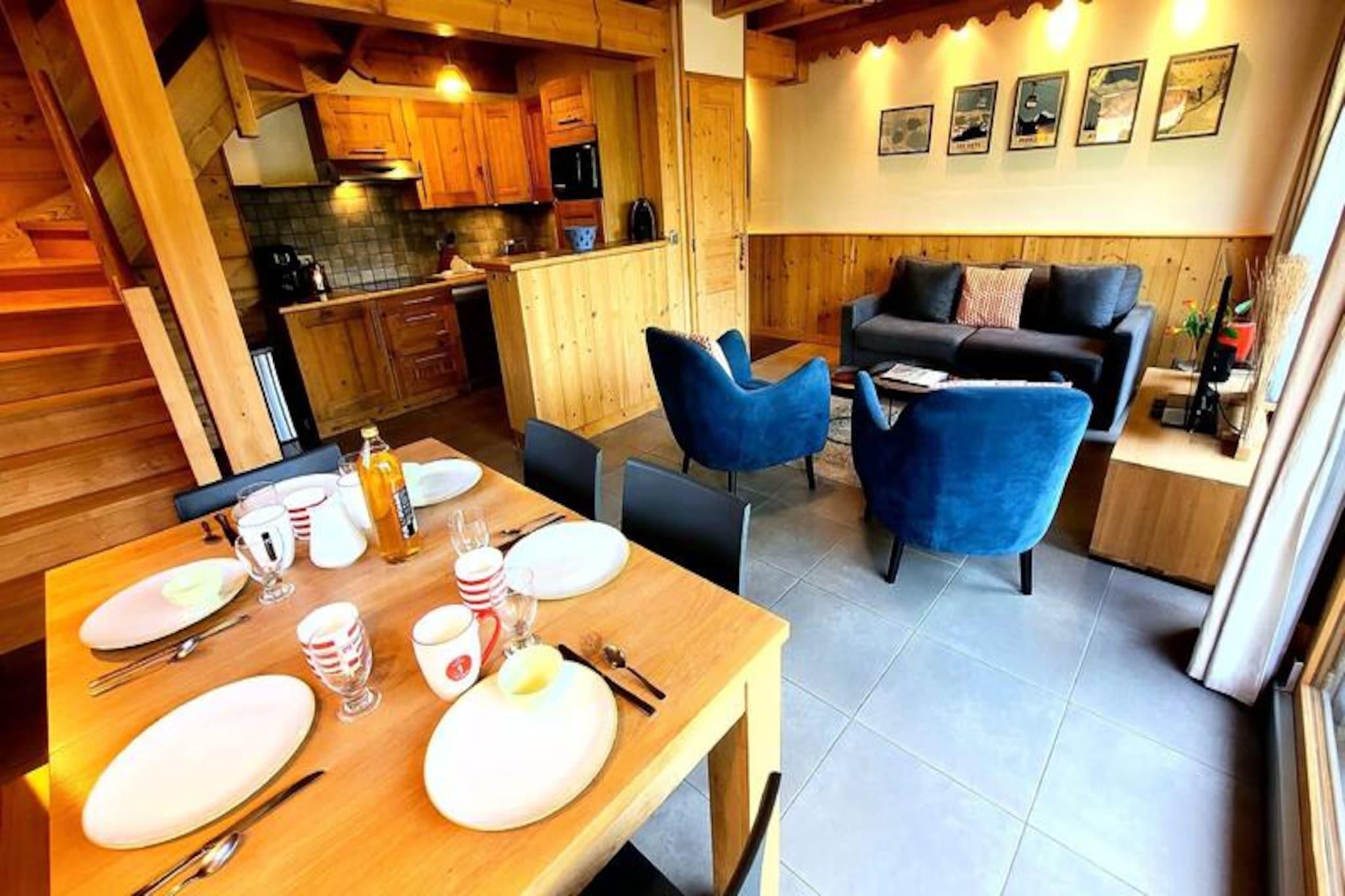 Imagine waking up to the soft glow of sunlight streaming through your southwest-facing windows, stepping out onto a private terrace that seamlessly extends into a lush garden. This spacious 57 m² duplex, nestled in the heart of the village, offers a serene retreat just 50 meters from the main ski lifts. Perfect for families or friends, this high-end residence combines modern comfort with alpine charm, ensuring a memorable stay in the French Alps. The duplex boasts a cozy living room with a 160 cm sofa bed, an open-plan kitchen equipped with everything you need, and large bay windows that invite the outdoors in. Upstairs, two well-appointed bedrooms, each with balcony access, provide restful havens after a day on the slopes. The bathroom features a bathtub and heated towel rail, while a separate toilet adds convenience. With thoughtful amenities like Wi-Fi, a Nespresso coffee maker, and a ski locker, every detail has been considered to make your stay as comfortable as possible. Located less than a five-minute walk from the resort center, you’ll find shops, restaurants, and entertainment at your doorstep, all without compromising the tranquility of your surroundings. In winter, enjoy the ease of ski-in/ski-out access, while summer transforms the area into a haven for hiking, cycling, and exploring the stunning alpine landscapes. Whether you’re savoring a barbecue on the terrace, relaxing in the sun-soaked garden, or strolling to the nearby French Ski School, this duplex offers the perfect blend of relaxation and adventure. With included services like end-of-stay cleaning, linens, and covered parking, your alpine escape is as effortless as it is unforgettable.