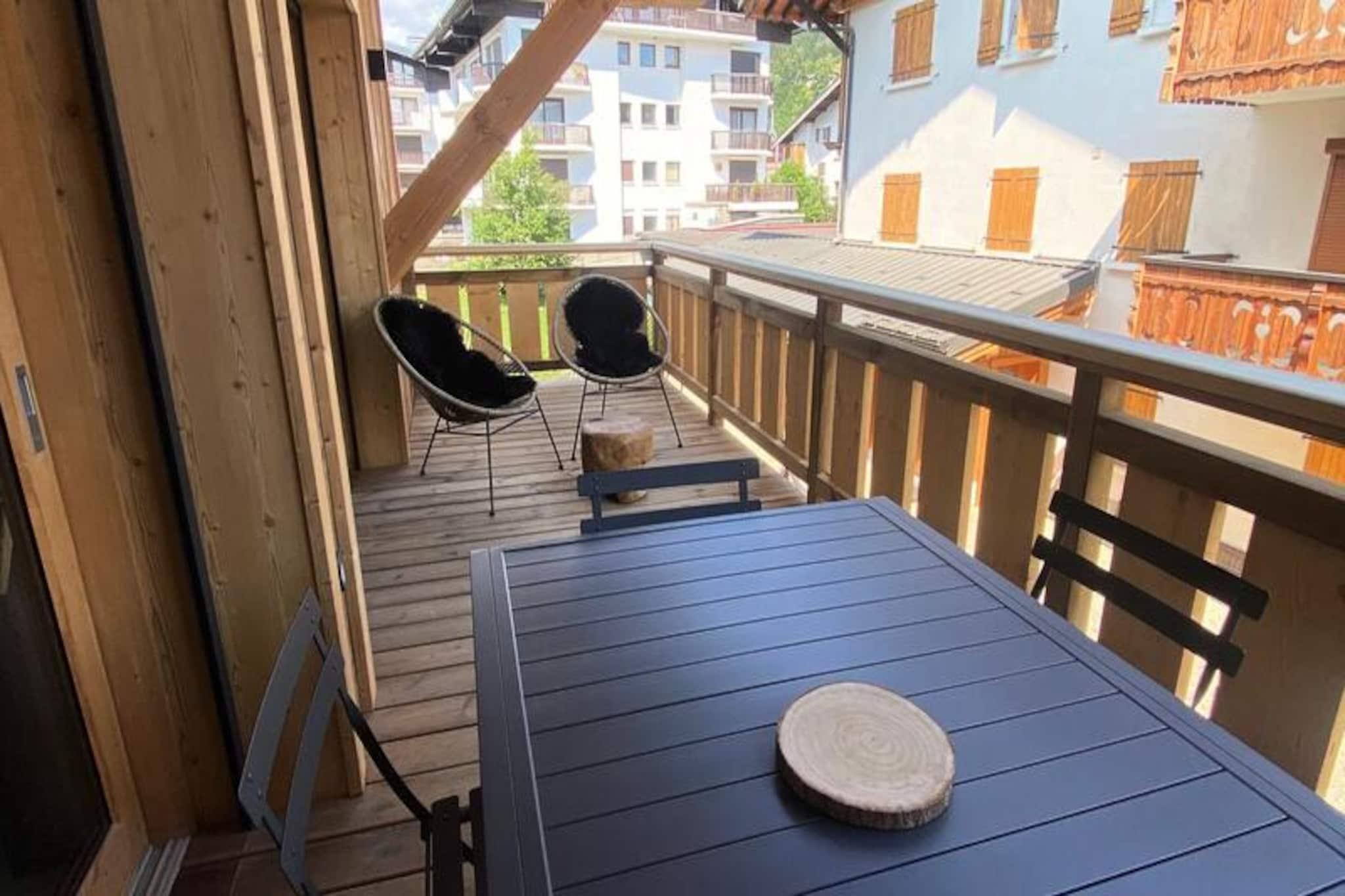 Amid the charming alpine village atmosphere of Le Confidential, this cozy yet elegant residence offers a perfect blend of rustic warmth and modern comfort. Crafted with wood and stone, the architecture harmonizes beautifully with the surrounding mountain scenery, inviting you to immerse yourself in the serene beauty of the French Alps. Whether you're planning a winter escape or a summer retreat, this property promises an unforgettable stay for families and friends alike. Located on the first floor of a 3-star residence, the apartment accommodates up to eight guests with a thoughtful layout designed for comfort and convenience. The en-suite double bedroom features a plush 140cm bed, while a second double bedroom and a bunk room with four single beds ensure ample space for everyone. The living area boasts a fully equipped kitchen, a cozy lounge with a sofa bed and television, and a dining area that opens onto a sheltered terrace—perfect for enjoying mountain views with your morning coffee. Modern amenities such as Wi-Fi, a Nespresso coffee maker, and a raclette grill add to the homely ambiance. Situated just 200 meters from the village center and shops, and a mere 350 meters from the ski slopes and the French Ski School (ESF), the location is ideal for both convenience and adventure. A shuttle stop is only 30 meters away, making it easy to explore the area. After a day on the slopes or hiking trails, unwind with the included luxury services: end-of-stay cleaning, linens, and towels. Additional options like bathrobe rentals and breakfast baskets are available to elevate your experience. With its prime location, thoughtful amenities, and warm alpine charm, this residence is the perfect base for creating cherished memories in the heart of the French Alps. Whether you're skiing, hiking, or simply relaxing, Le Confidential offers a slice of mountain paradise.