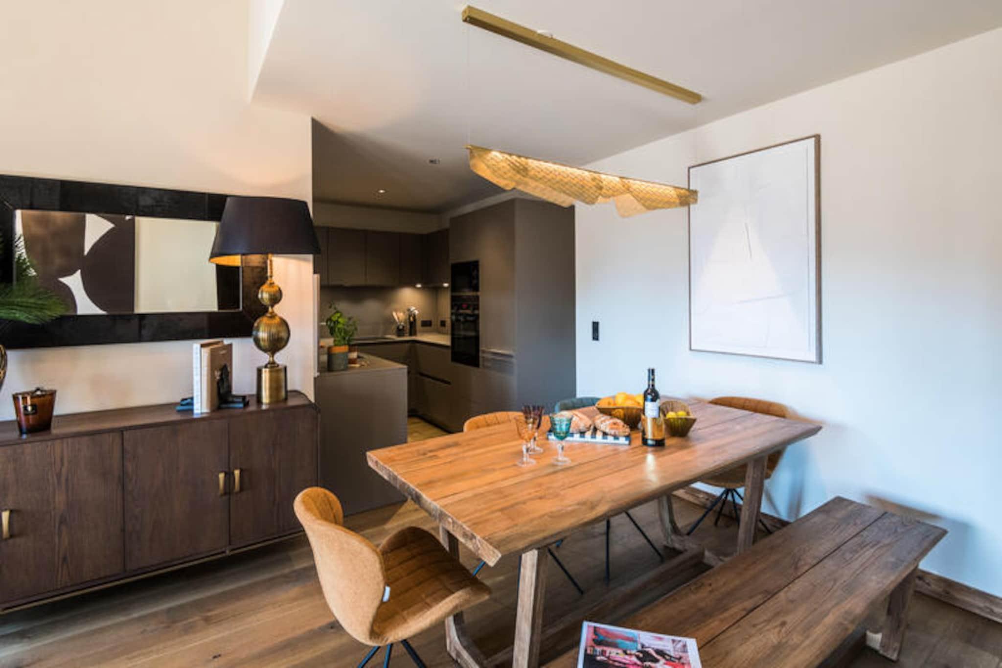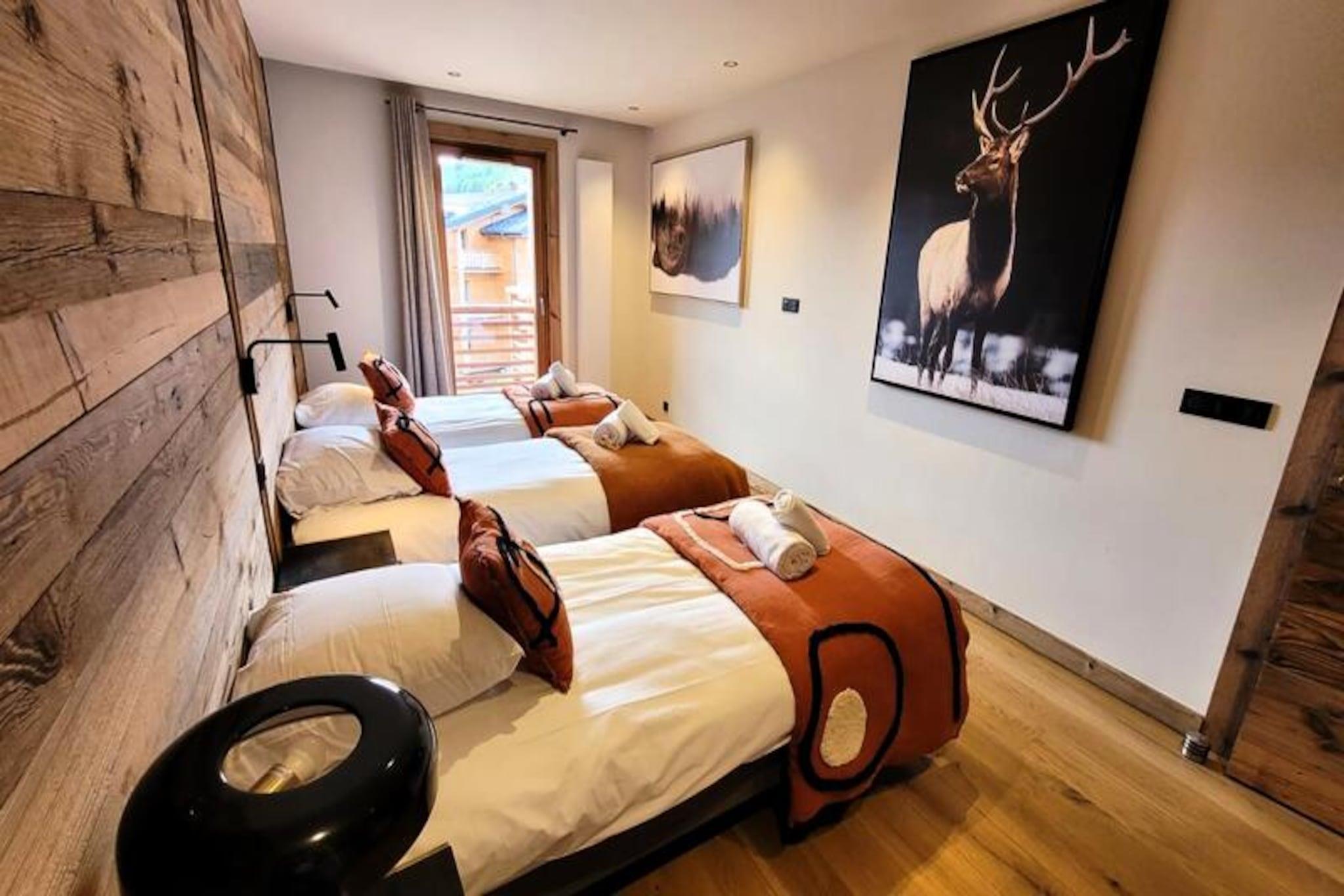 In the heart of the charming alpine village, this luxurious 4-star apartment offers a blend of elegance, comfort, and convenience. Located on the fourth floor of a prestigious new residence, it boasts stunning views of the surrounding mountains and slopes. The vibrant shopping arcades on the ground floor and the proximity to key amenities make it a perfect retreat for families and groups seeking a memorable alpine escape. Step inside to discover a beautifully designed 103 m² space with high ceilings and a warm, inviting atmosphere. The apartment features three spacious bedrooms, each with its own bathroom, ensuring privacy and comfort for up to seven guests. The open-plan living area, complete with a cozy fireplace, flows seamlessly into a fully equipped Bulthaup kitchen, making it ideal for shared meals and relaxed evenings. The southwest-facing 16 m² terrace invites you to soak up the sun and marvel at the breathtaking alpine scenery. After a day on the slopes, unwind in the residence’s high-end wellness facilities, including a sauna, hammam, and fitness center. The Chavannes chairlift is just 250 meters away, offering easy access to world-class skiing, while the ESF ski school is a short 350-meter stroll. With shops, restaurants, and a shuttle stop just steps away, everything you need is at your fingertips. This exceptional property combines the best of alpine luxury with unbeatable convenience, making it the perfect choice for your next mountain getaway. Whether you’re here for skiing, hiking, or simply relaxing, this apartment promises an unforgettable experience.