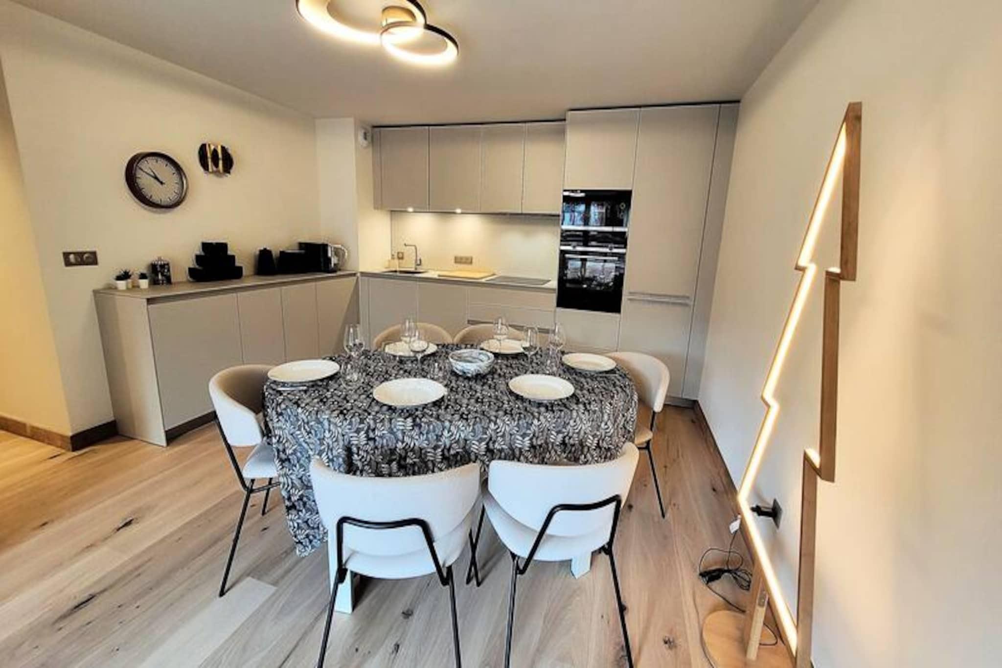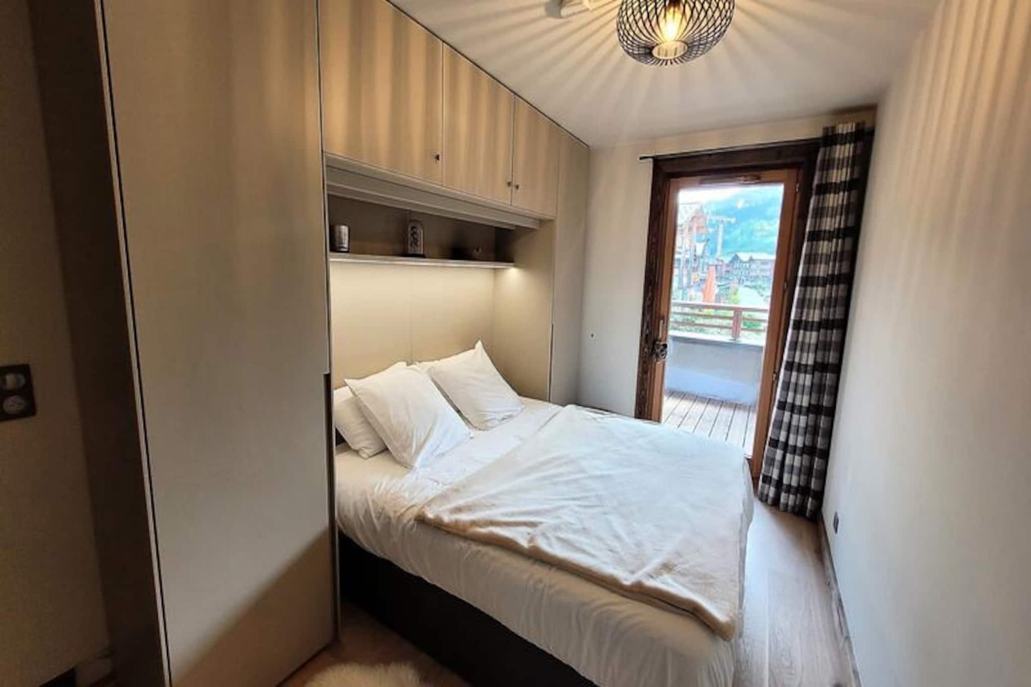 In the heart of the charming Les Gets resort, this prestigious apartment offers the perfect blend of modern luxury and alpine tradition. Situated just steps from the vibrant central street and the Chavannes slopes, it provides an ideal base for both winter sports enthusiasts and summer adventurers. Imagine waking up to breathtaking views of the surrounding mountains, with the convenience of shops, restaurants, and a supermarket right at your doorstep. The eastern exposure ensures your mornings are filled with sunlight, while the spacious terrace invites you to unwind and soak in the serene alpine atmosphere. \n\nDesigned to accommodate up to six guests, the apartment boasts a bright and airy living room with a fully equipped kitchen, perfect for preparing hearty meals after a day on the slopes or exploring mountain trails. The two double bedrooms and an en-suite master bedroom provide ultimate comfort, each featuring plush bedding, built-in closets, and private access to the balcony. The bathrooms are thoughtfully designed with modern amenities, including a walk-in shower, heated towel rails, and a bathtub for a relaxing soak. \n\nGuests can enjoy exclusive access to the residence’s wellness facilities, including a sauna, steam room, and fitness center, ensuring relaxation and rejuvenation after an active day. With private parking, a ski locker, and bicycle storage, every detail has been considered for your convenience. Whether you're here to ski, hike, or simply savor the beauty of the French Alps, this apartment promises an unforgettable stay in Les Gets. \n\nBook your alpine escape today and experience the perfect harmony of comfort, style, and adventure in one of the most sought-after destinations in the region.