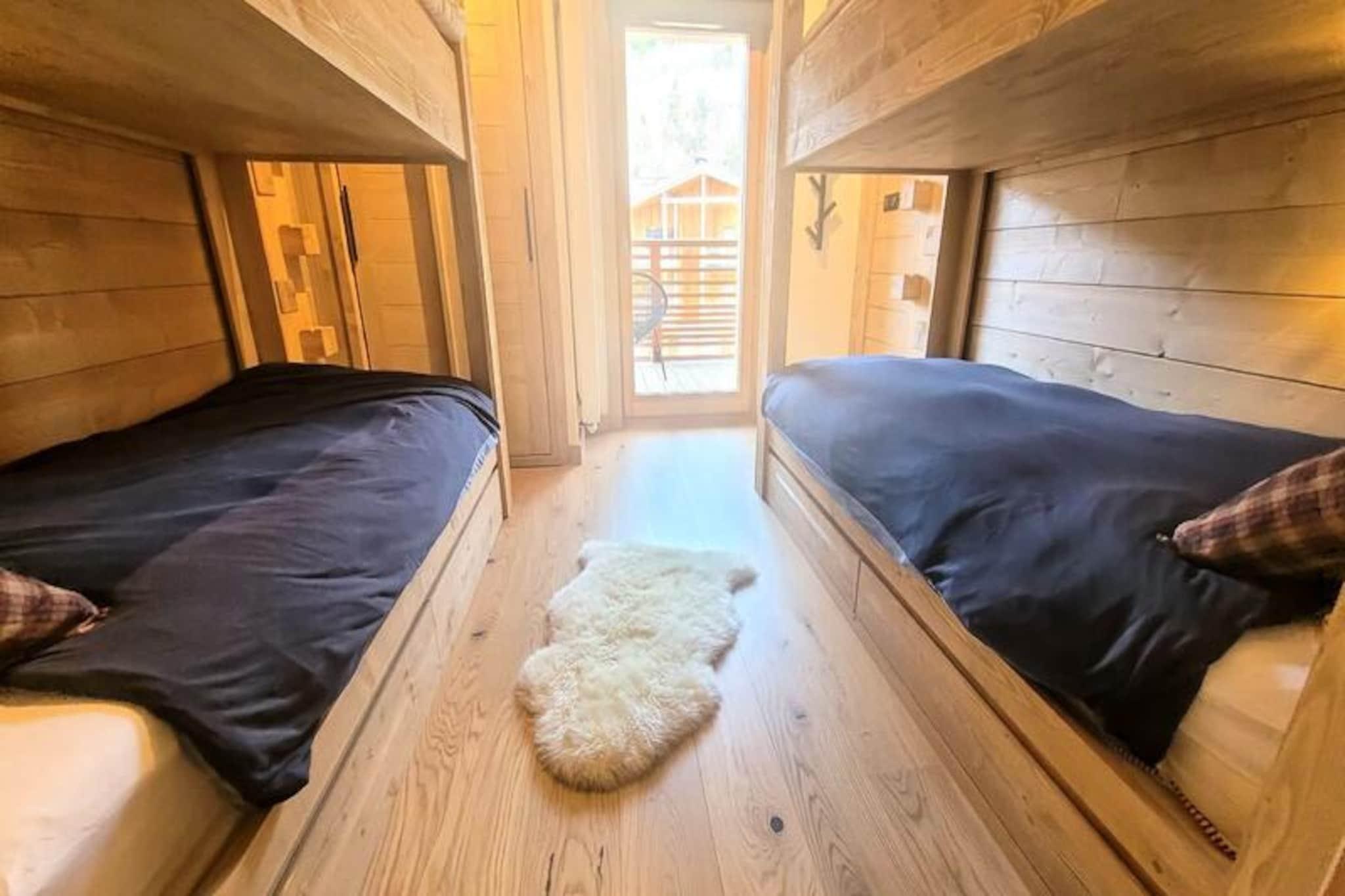 In the heart of the charming village of Les Gets, this luxurious apartment offers a perfect blend of sophistication and alpine warmth. Imagine waking up to the crisp mountain air and stepping onto your sunny terrace to take in the breathtaking views of the surrounding peaks and slopes. The residence is ideally located, with shopping arcades just below and the vibrant resort center at your doorstep, ensuring convenience and a lively atmosphere throughout your stay. This is where modern elegance meets the timeless beauty of the French Alps. \n\nDesigned with meticulous attention to detail, the apartment features a spacious living room with soaring ceilings and a unique steam fireplace that creates a cozy ambiance for relaxing evenings after a day on the slopes. The fully equipped kitchen invites you to prepare hearty meals, while the elegant dining area and balcony provide the perfect setting for sharing moments with loved ones. Accommodating up to six guests, the property includes an en-suite master bedroom, a charming bunk room ideal for children, and a second bathroom equipped with modern amenities like a washing machine and tumble dryer. \n\nStep outside and you’ll find yourself just 250 meters from the nearest ski slopes and 350 meters from the renowned French Ski School (ESF). Whether you’re here for winter sports or summer hikes, Les Gets offers endless opportunities for adventure and relaxation. The residence also boasts a sauna, steam room, and fitness center, ensuring your stay is as rejuvenating as it is exciting. \n\nWith its prime location, luxurious features, and thoughtful services like end-of-stay cleaning and linens, this apartment is the ultimate alpine retreat. Whether you’re seeking thrilling days on the slopes or tranquil evenings by the fireplace, this property promises an unforgettable escape in the heart of the French Alps.