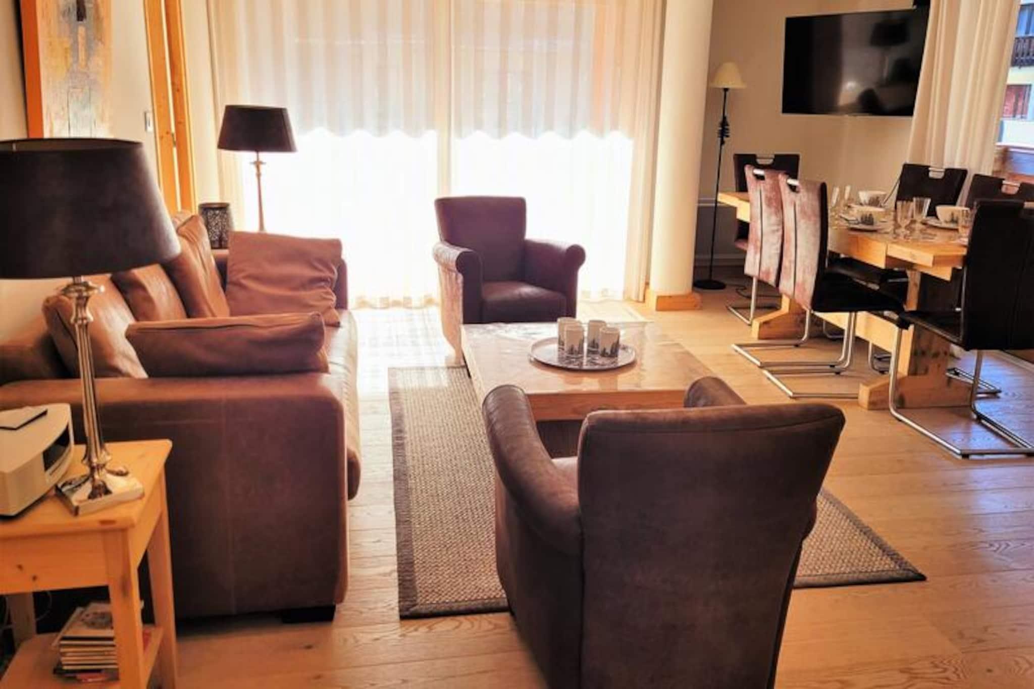 In the heart of the charming Les Gets village, this elegant apartment offers a perfect blend of alpine tradition and modern comfort. Imagine stepping out onto your west-facing balcony, soaking in the golden hues of the setting sun as the lively village hums with activity below. With ski slopes and mountain bike trails just 30 meters away, and the convenience of shops, restaurants, and the French Ski School within a short stroll, this property places you at the epicenter of year-round mountain adventures. \n\nSpanning 82 m², this spacious 4-room apartment is designed for relaxation and togetherness. The bright living area, complete with two cozy sofas, invites you to unwind after a day of exploration. The open-plan kitchen, fully equipped with modern appliances, makes it easy to prepare meals to share in the inviting dining area. With three well-appointed bedrooms, including an en-suite master bedroom with a TV and private shower, this home comfortably accommodates up to six guests. Additional amenities such as Wi-Fi, two TVs, a washing machine, and a tumble dryer ensure a seamless stay. \n\nWhether you’re here to carve through fresh powder in winter or explore scenic mountain trails in summer, the location is unbeatable. The residence offers two covered parking spaces, a cellar for mountain bikes, and easy access to the village’s vibrant offerings. From après-ski delights to summer festivals, Les Gets promises unforgettable moments. \n\nChoose this refined retreat for your next alpine escape and experience the perfect balance of adventure and relaxation.