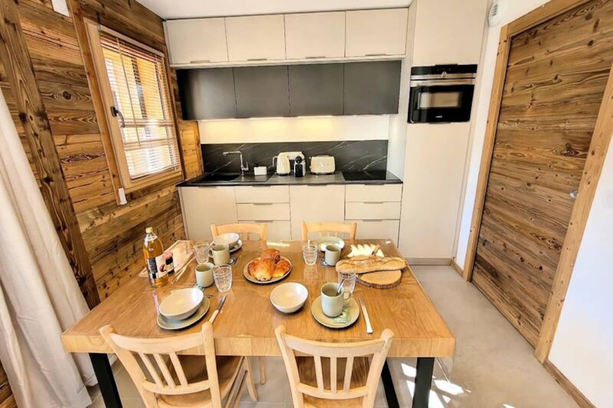 In the vibrant heart of the resort, L'Essentiel invites you to experience a harmonious blend of comfort, elegance, and practicality. This intimate luxury residence is perfectly situated just steps from shops, restaurants, ski lifts, and local activities, offering an unparalleled convenience for your mountain getaway. Imagine waking up to the crisp alpine air, enjoying your morning coffee on the balcony, and setting out for a day of adventure with everything you need right at your fingertips. Whether you’re here for winter sports or summer exploration, this property promises a seamless and memorable stay. \n\nDesigned to accommodate up to four guests, the apartment features a thoughtfully arranged layout that maximizes space and natural light. The cozy sleeping alcove and double bedroom provide restful retreats, while the living room opens onto a balcony, creating a warm and inviting atmosphere. A fully equipped kitchen with modern appliances, including a Nespresso machine and raclette set, ensures you can savor delicious meals after a day of adventure. Additional amenities such as underfloor heating, Wi-Fi, and a ski locker with boot dryer enhance your comfort and convenience. \n\nLocated just 450 meters from the nearest ski slopes and the French Ski School, L'Essentiel is ideal for ski enthusiasts. In summer, the region transforms into a haven for hikers and nature lovers, with trails and breathtaking views waiting to be discovered. The proximity to local shops, medical services, and shuttle stops ensures that every aspect of your stay is effortless. \n\nWhether you’re seeking thrilling alpine adventures or tranquil moments in the mountains, L'Essentiel offers the perfect base for creating unforgettable memories. Let the charm of this modern residence and its exceptional location inspire your next holiday in the French Alps.