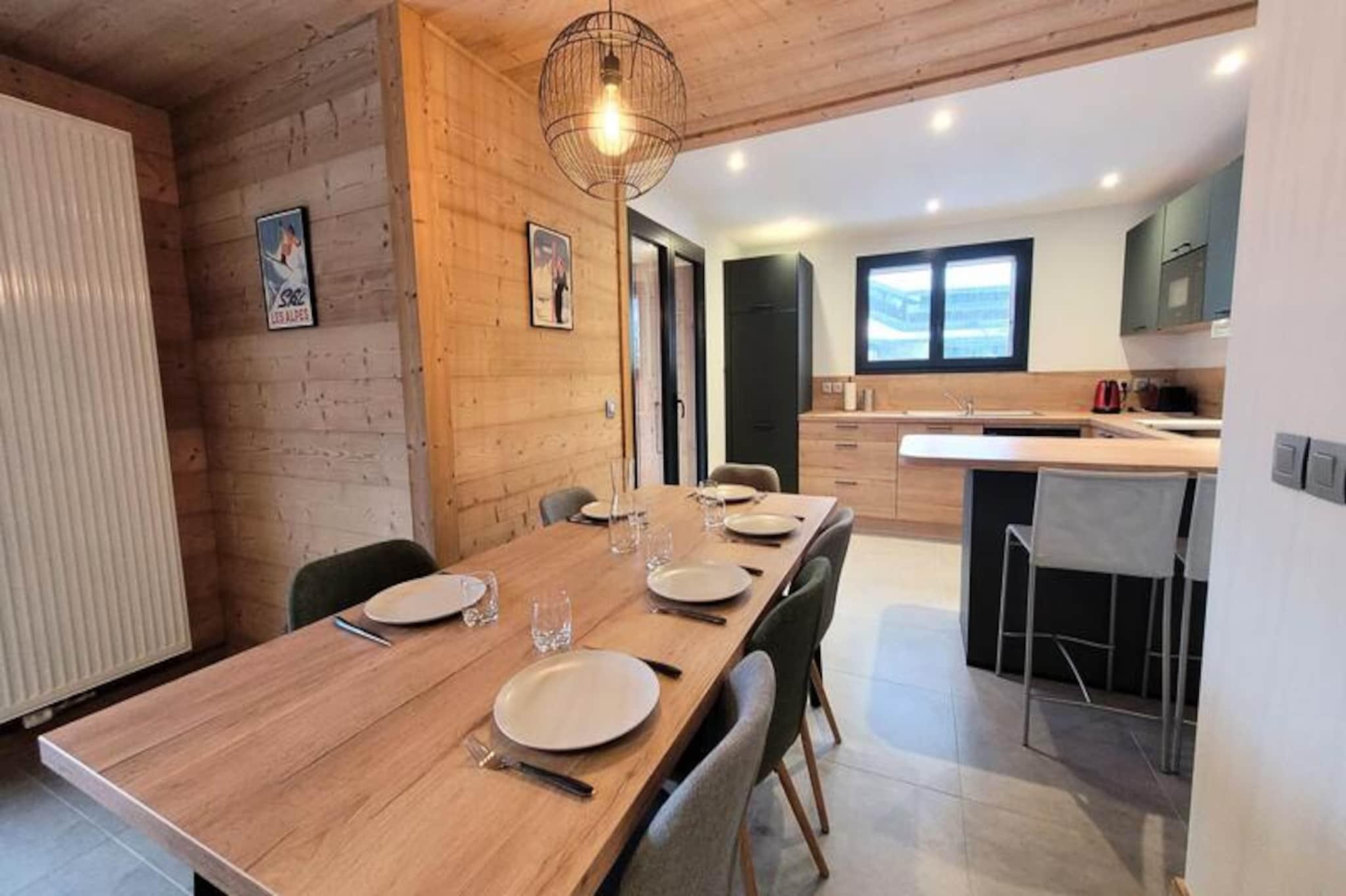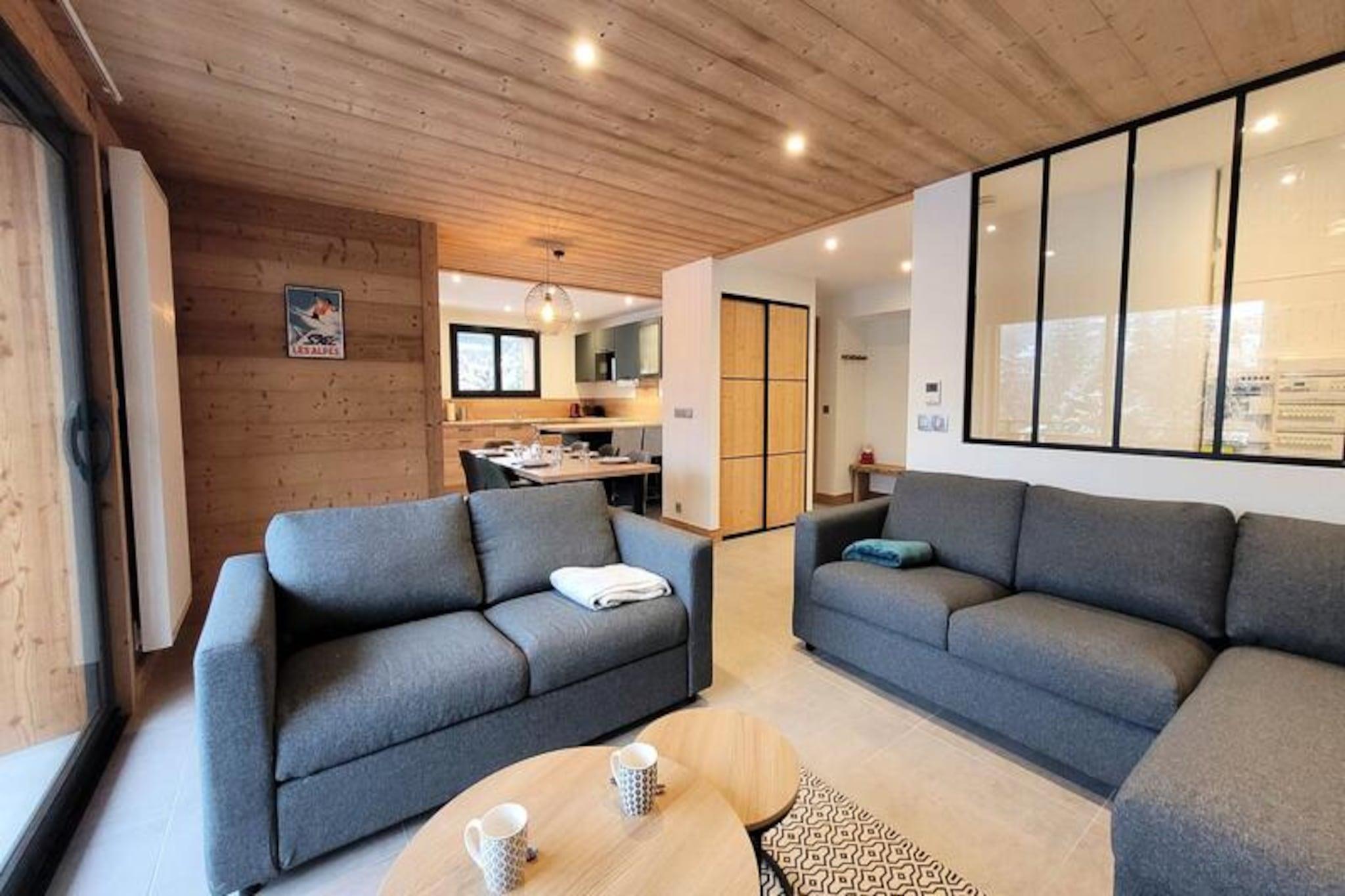In the heart of the picturesque Les Gets resort, this charming first-floor apartment in a fully renovated chalet offers a serene retreat for your mountain adventures. Bathed in natural light from its southeast exposure, the property combines modern comforts with alpine charm, creating an inviting space for families or groups of up to six guests. Whether you're seeking snowy slopes or summer trails, this location promises unforgettable moments year-round. \n\nStep inside to discover a thoughtfully designed layout featuring a master bedroom with a luxurious en-suite bathroom and balcony access, a cozy double bedroom, and a children's room with bunk beds. The open-plan living area boasts a fully equipped kitchen, dining space, and a semi-covered terrace, perfect for enjoying the crisp mountain air. Additional amenities include Wi-Fi, a dishwasher, and a shared laundry area, ensuring a convenient and comfortable stay. \n\nSituated just 50 meters from the Mont Chery slopes and a short walk to the Chavannes ski area, the apartment is ideally positioned for ski enthusiasts. Nearby, you'll find shops, restaurants, and the French Ski School within walking distance, while a shuttle service just 30 meters away offers easy access to explore the resort. In summer, the region transforms into a haven for hikers and cyclists, with breathtaking trails and scenic vistas waiting to be discovered. \n\nWhether you're here to carve through pristine snow or bask in alpine sunshine, this chalet apartment is your gateway to the best of Les Gets. With private parking, ski lockers, and included winter services like linens and cleaning, all you need to do is arrive and immerse yourself in the beauty of the French Alps.