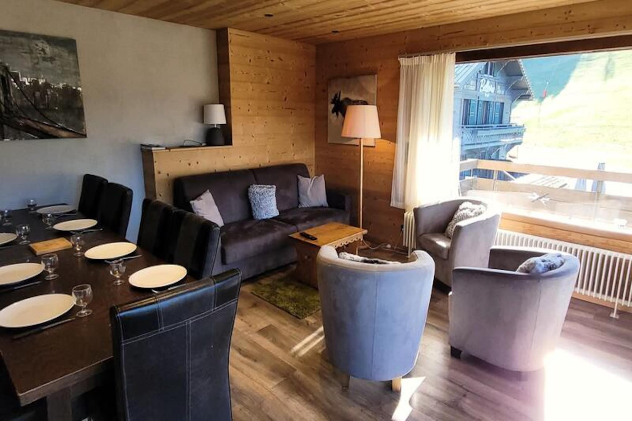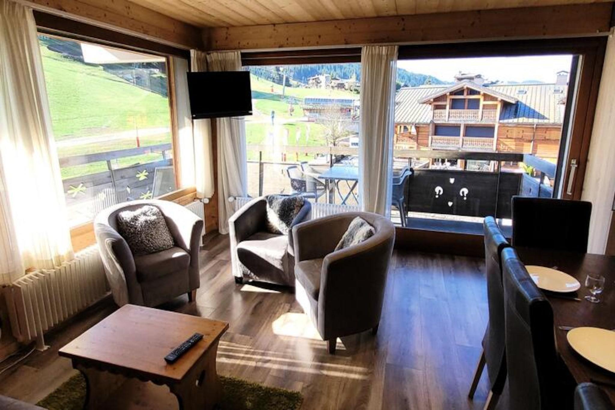 In the heart of Les Gets, where alpine charm meets modern comfort, this stunning 85 m² apartment offers an unforgettable mountain retreat. Situated directly on the snow front, with ski lifts and the ESF ski school just steps away, it’s the perfect base for winter sports enthusiasts and families alike. From the moment you arrive, you’ll be captivated by the breathtaking views from the southwest- and southeast-facing balconies, where you can soak up the sun and admire the pristine slopes right outside your door. The vibrant village atmosphere, combined with the convenience of having shops and entertainment within walking distance, ensures a seamless holiday experience. \n\nInside, the apartment is thoughtfully designed to accommodate up to eight guests. The spacious layout includes three bedrooms: a master bedroom with a luxurious double bed and TV, a versatile twin room that can be converted into a king-size bed, and a charming children’s room with bunk beds and a single bed. The living area features a comfortable sofa bed, a fully equipped kitchen, and a dining space that opens onto the balcony. Modern amenities such as Wi-Fi, central heating, and a dishwasher ensure a hassle-free stay, while the shared laundry facilities and ski lockers add extra convenience. \n\nLes Gets is a paradise for outdoor enthusiasts, offering world-class skiing in winter and scenic hiking and biking trails in summer. The nearby Chavannes lifts provide direct access to the slopes, while the village’s lively après-ski scene and family-friendly activities create memories to last a lifetime. Whether you’re here to carve through powder or explore alpine meadows, this residence places you at the heart of it all. \n\nWith its unbeatable location, exceptional comfort, and panoramic views, this apartment is the ideal choice for those seeking a blend of adventure and relaxation in the French Alps.
