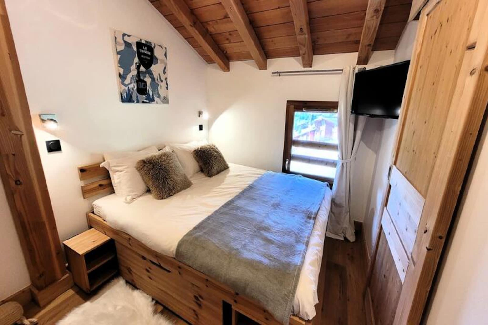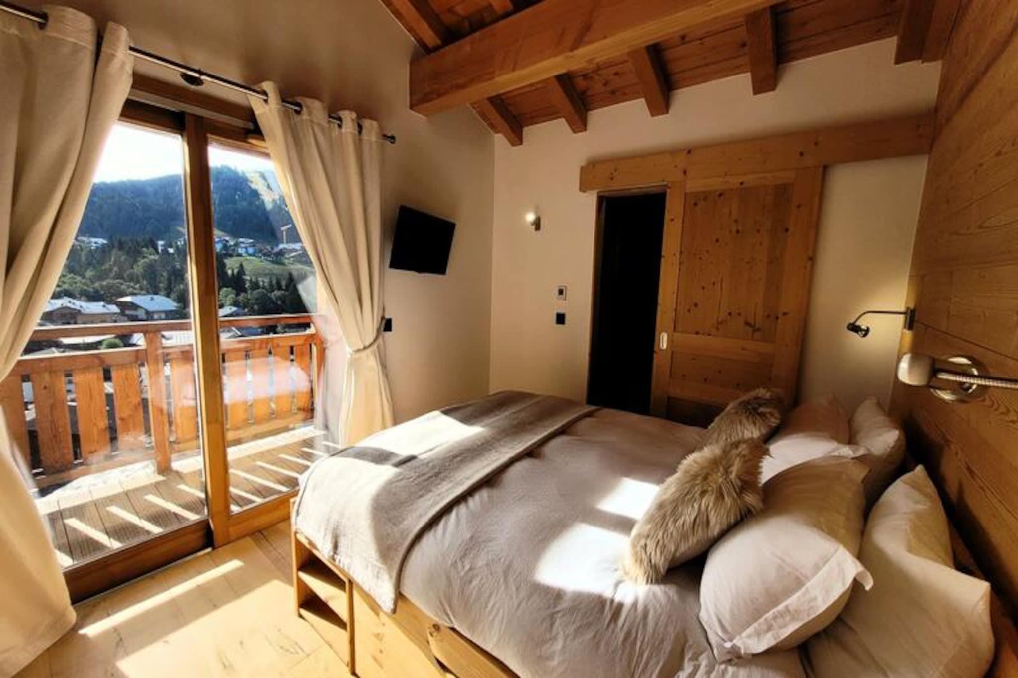 High above the charming alpine village of Les Gets, Kilimandjaro invites you to experience the perfect blend of rustic elegance and modern comfort. This exclusive triplex apartment, nestled within a cluster of ten wood-clad chalets, offers breathtaking views over the resort and the Les Chavannes ski area, making it an idyllic retreat for your mountain getaway. Whether you're seeking serene mornings with the sunrise or cozy evenings by the fire, this property promises a memorable escape in the heart of the French Alps. \n\nThe apartment is thoughtfully designed across three levels, comfortably accommodating up to six guests. The ground floor features a luxurious master bedroom with a king-size bed, en-suite bathroom, and ample storage space. The first floor boasts a spacious living area with a wood-burning stove, a fully equipped kitchen, and a dining area that opens onto a balcony with stunning south-east views. On the second floor, you'll find two additional en-suite bedrooms, each with a double bed, TV, and private balcony access. Modern amenities such as underfloor heating, high-speed Wi-Fi, and a washer-dryer ensure a seamless and comfortable stay. \n\nLocated just 400 meters from the village center and shops, and a short shuttle ride to the ski slopes, Kilimandjaro offers unparalleled convenience. The French Ski School (ESF) is within walking distance, while après-ski options and local restaurants are easily accessible. In summer, the area transforms into a haven for hikers and cyclists, with trails winding through lush alpine meadows and breathtaking vistas. \n\nWhether you're here to carve through fresh powder or explore the vibrant summer landscape, Kilimandjaro is your gateway to an unforgettable alpine adventure. With its prime location, luxurious amenities, and stunning views, this property is the perfect choice for those seeking both relaxation and adventure in the heart of the Alps.
