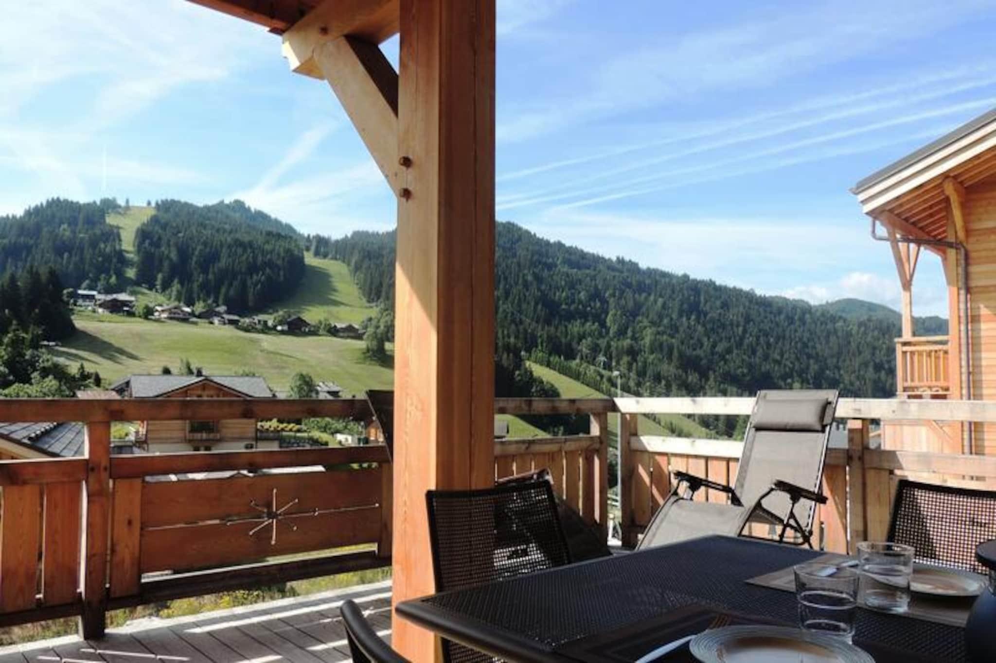 In a serene hamlet just moments from the heart of Les Gets, this charming chalet offers a mountain retreat like no other. Surrounded by breathtaking alpine views, Chalet La Source des Granges is the perfect escape for those seeking tranquility and comfort. Imagine waking up to crisp mountain air, enjoying your morning coffee on the southwest-facing terrace, and planning your day of adventure or relaxation in this idyllic setting. \n\nSpanning three levels and 140 m², this chalet comfortably accommodates up to six guests. The ground floor features a practical entrance hall with storage, a laundry room, and a garage. On the first floor, the cozy living room with a wood-burning stove invites you to unwind, while the dining area and fully equipped kitchen make meal preparation a delight. Large bay windows open onto the terrace, where you can soak in the sun or stargaze in the evening. The upper floors house two spacious double bedrooms, including an en-suite, and a versatile reading area with a sofa bed, perfect for quiet moments or additional guests. Modern amenities such as underfloor heating, Wi-Fi, and a raclette set ensure a comfortable and authentic alpine experience. \n\nLocated just 800 meters from the village center, shops, and ski slopes, and with a shuttle stop only 50 meters away, the chalet offers easy access to all the delights of Les Gets. Whether you're hitting the slopes, exploring local trails, or indulging in Savoyard cuisine, everything is within reach. After a day of adventure, return to the warmth of the chalet, where the crackling fire and cozy ambiance await. \n\nChalet La Source des Granges is more than just a place to stay—it's a haven where cherished memories are made, blending the charm of alpine living with modern comforts. Perfect for families or friends, this is your gateway to an unforgettable mountain escape.