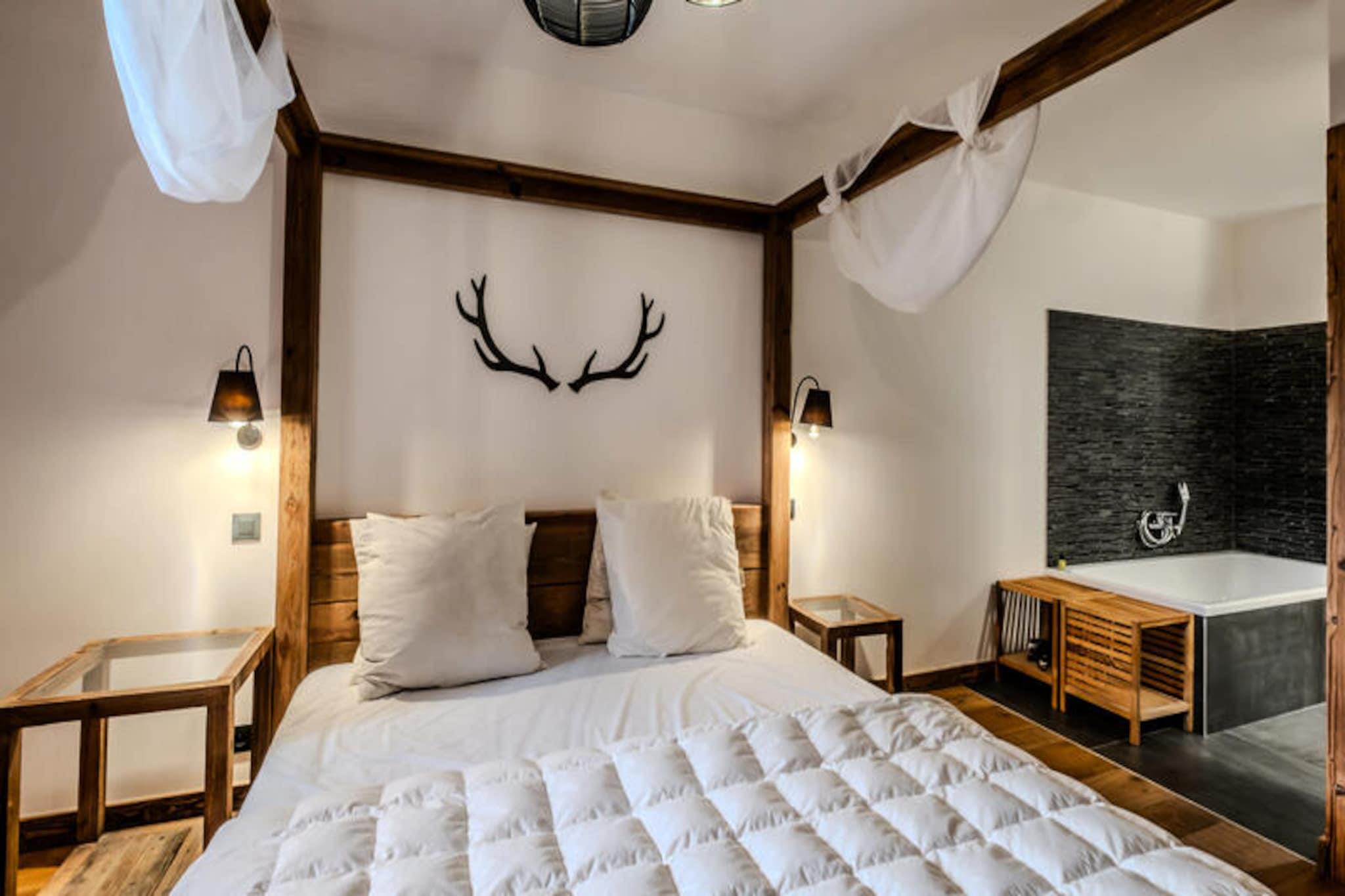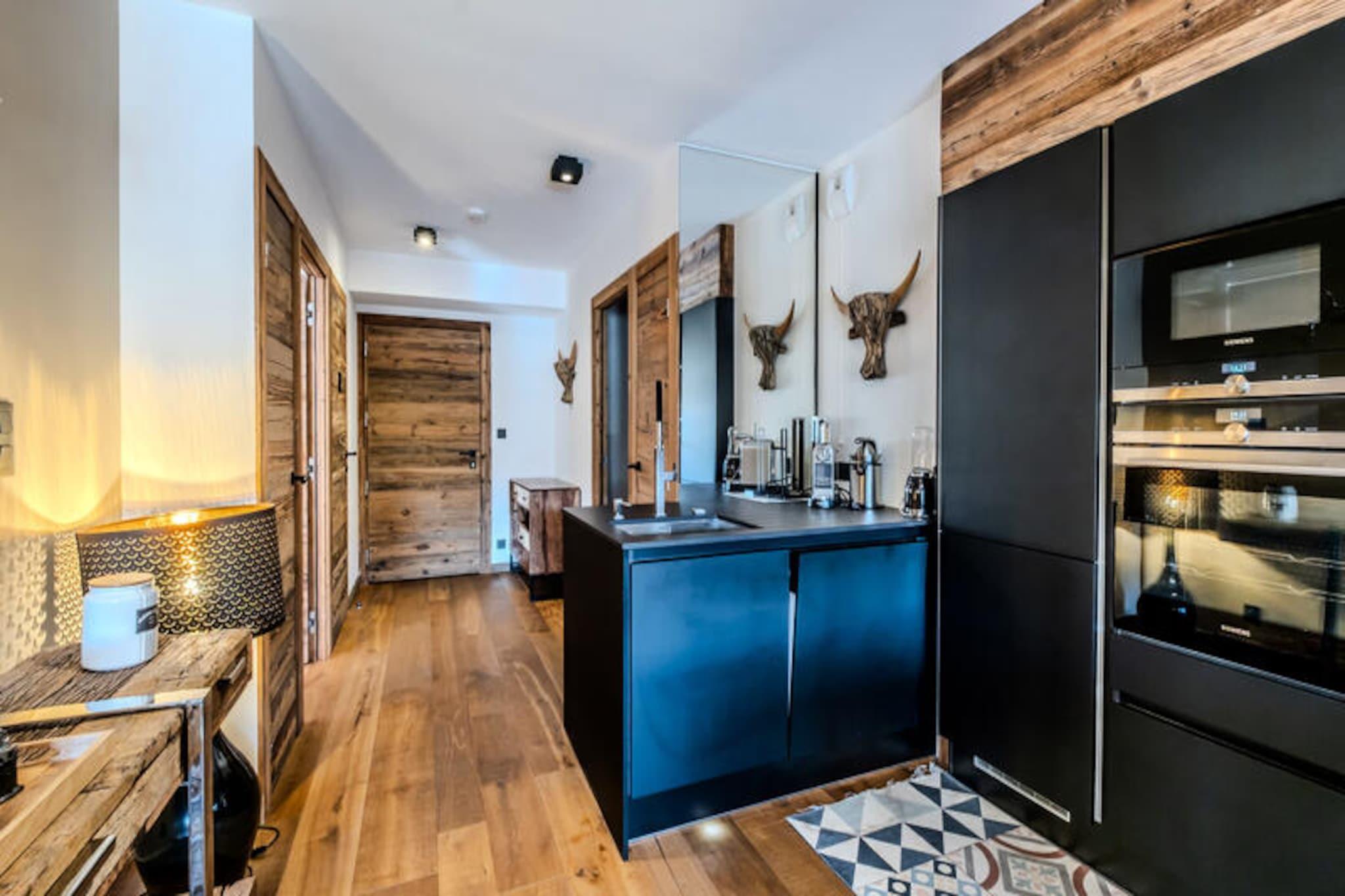 High above the charming village of Les Gets, this exceptional apartment offers a serene retreat with breathtaking views of the Chavannes ski area and surrounding alpine peaks. Completed in 2020, this prestigious residence combines traditional chalet aesthetics with modern luxury, creating a harmonious blend of comfort and style. From the moment you step onto the southeast-facing terrace, the panorama of the mountains invites you to relax and soak in the tranquility of this unique setting. With sunshine guaranteed and quiet surroundings, this is the perfect escape for those seeking a peaceful yet vibrant alpine experience. \n\nDesigned for up to five guests, the apartment boasts spacious interiors with high-end amenities. The master bedroom features a plush king-size bed and an en-suite bathroom with a shower, bathtub, and private toilet, while the twin bedroom offers cozy single beds for restful nights. The open-plan living room, complete with a fully equipped kitchen and a sofa bed, is ideal for unwinding after a day on the slopes. Step outside onto the terrace and indulge in the private sauna, surrounded by the crisp mountain air. Additional conveniences include Wi-Fi, a wine cellar, a raclette grill, and a laundry room, ensuring every detail of your stay is catered for. \n\nLocated just 450 meters from the village center and nearest shops, and 650 meters from the ski slopes and ESF ski school, the apartment offers easy access to all the highlights of Les Gets. A free shuttle service at the foot of the residence ensures seamless transportation to the slopes. Whether you’re skiing in winter or exploring the lush trails in summer, the region offers endless opportunities for adventure and relaxation. \n\nWith its blend of luxury, comfort, and prime location, this apartment is more than a holiday home—it’s an invitation to create unforgettable memories in the heart of the French Alps.