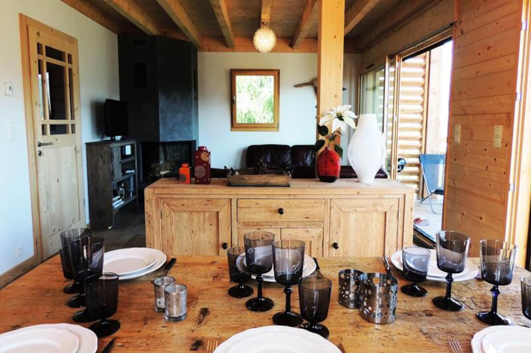 High above the charming village of Les Gets, this exquisite chalet offers a serene retreat in a peaceful, south-facing hamlet. Completed in 2015, the property combines traditional alpine craftsmanship with modern comforts, creating a warm and inviting atmosphere. Imagine waking up to panoramic views of the village below, surrounded by the tranquility of the mountains, where every detail has been designed for your ultimate comfort and relaxation. Whether you're visiting in winter or summer, this chalet is a perfect haven for families and groups seeking a memorable alpine escape. \n\nSpanning 140 m², the chalet comfortably accommodates up to eight guests across four spacious bedrooms. The ground floor features a cozy living room with a fireplace, perfect for gathering after a day of adventure. Large bay windows flood the space with natural light and provide direct access to the terrace, where breathtaking views await. The fully equipped kitchen opens onto a dining area, making it ideal for shared meals and moments. Each bedroom offers ample space and access to either a terrace or balcony, ensuring everyone enjoys their own private retreat. Modern amenities such as underfloor heating, Wi-Fi, and a range of kitchen appliances ensure a seamless stay. \n\nLocated just 2.4 km from the heart of Les Gets, the chalet provides easy access to the village's shops, restaurants, and ski slopes. A shuttle stop is conveniently located 200 meters away, making it effortless to explore the area. In winter, the nearby slopes and the renowned French Ski School (ESF) promise unforgettable days on the snow, while summer brings opportunities for hiking, mountain biking, and soaking in the alpine beauty. The chalet's quiet location offers the perfect balance of seclusion and accessibility. \n\nWith its blend of traditional charm, modern amenities, and stunning views, this chalet invites you to create lasting memories in the heart of the French Alps. Whether you're seeking adventure or relaxation, this is your home away from home.