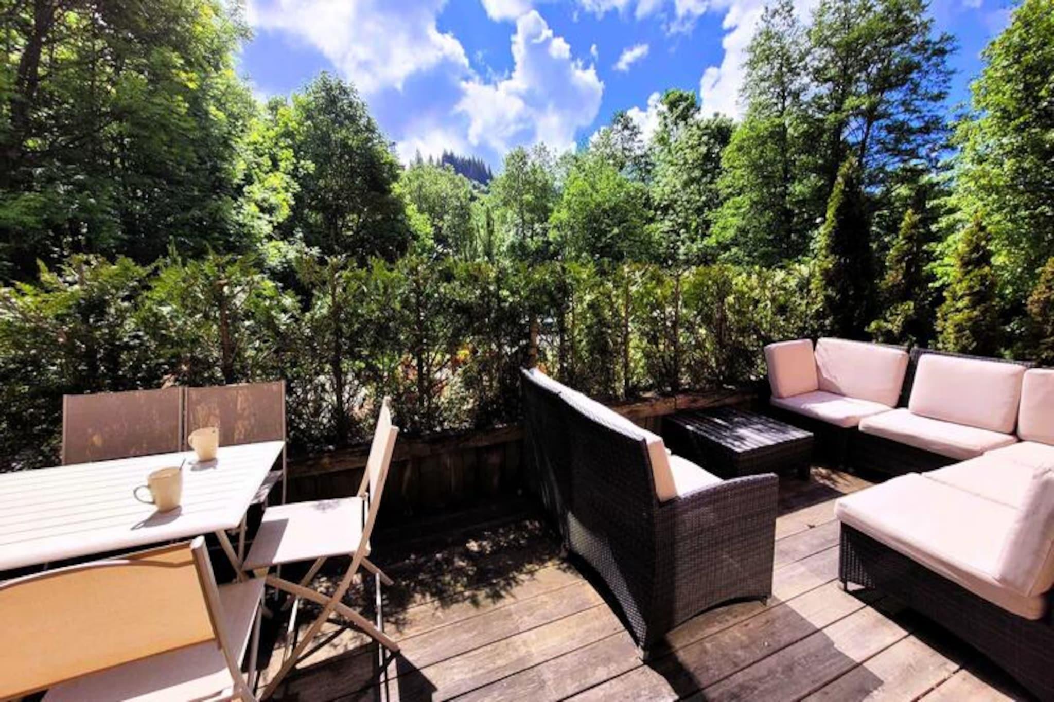 In the serene charm of Les Gets, this ground-floor apartment offers a perfect blend of tranquility and convenience. Just a short stroll from the resort center, you’ll find yourself immersed in the alpine lifestyle, with shops, ski lifts, and the vibrant heart of the village all within easy reach. Whether you’re visiting in winter for the pristine slopes or in summer for the lush mountain trails, this property is an ideal retreat for families or groups of friends seeking a memorable getaway. The east-facing terrace invites you to start your mornings with a warm cup of coffee, soaking in the crisp mountain air and gentle sunlight. Inside, the apartment’s 91 m² layout is thoughtfully designed for comfort and functionality. The spacious living area features a fully equipped kitchen, a cozy dining space, and a lounge with a TV, perfect for unwinding after a day of adventure. With three well-appointed bedrooms, including an en-suite master bedroom and a room with twin beds, the property comfortably accommodates up to six guests. Modern amenities such as Wi-Fi, a Nespresso machine, and high-quality appliances ensure a seamless stay. The location is unbeatable, with the nearest shops just 500 meters away and the Mt Chery ski slopes only 700 meters from your doorstep. The French Ski School (ESF) and shuttle services are also conveniently close, making it easy to explore the area. In summer, the surrounding trails and outdoor activities transform Les Gets into a haven for nature enthusiasts. Whether you’re here to carve through fresh powder or bask in the beauty of the Alps, this apartment offers the perfect base for unforgettable moments in the mountains.