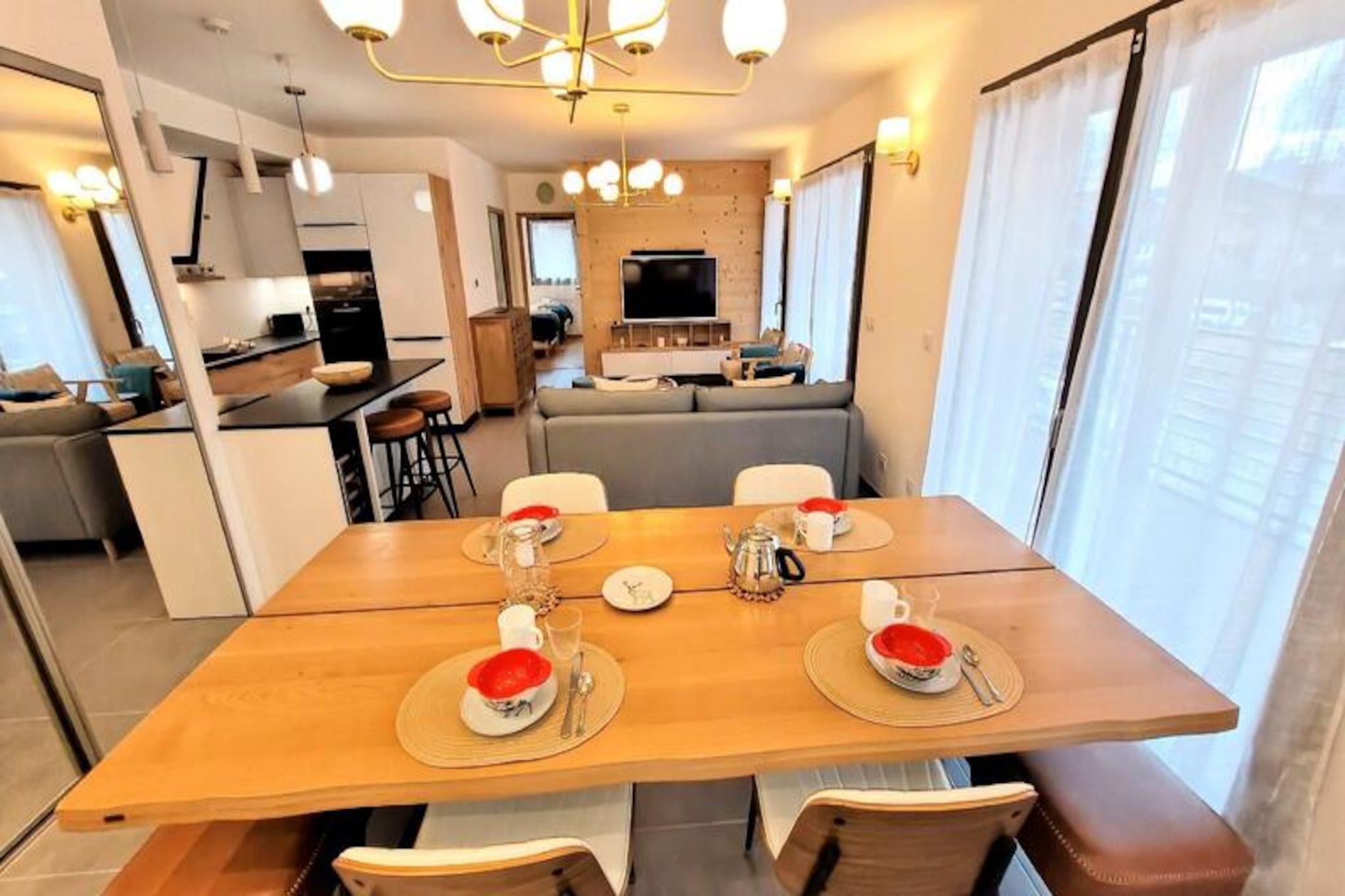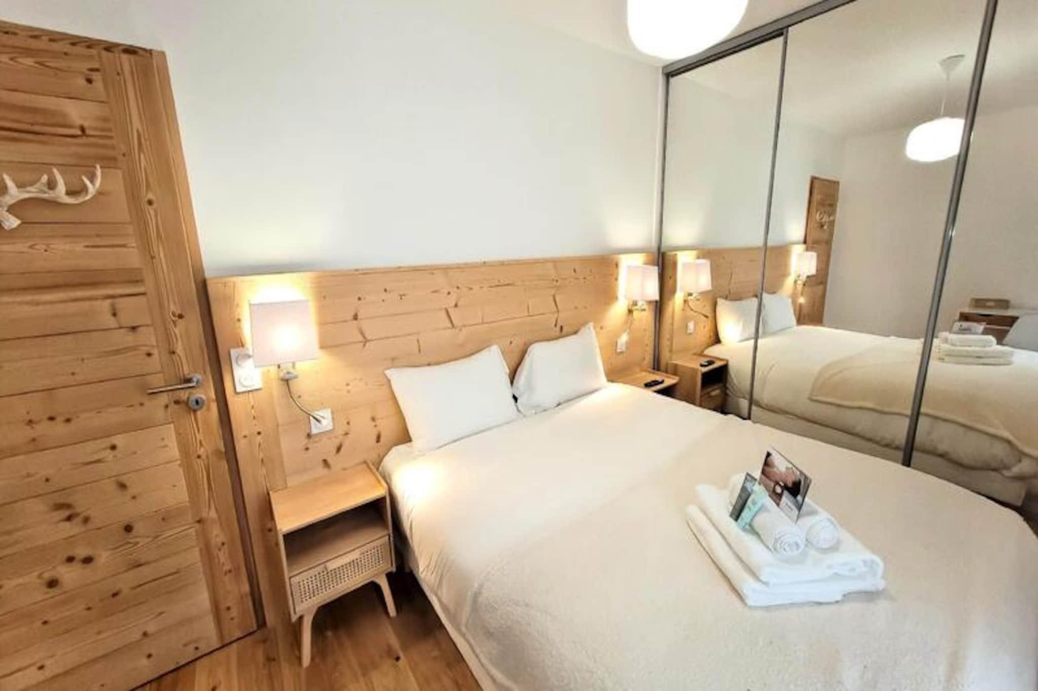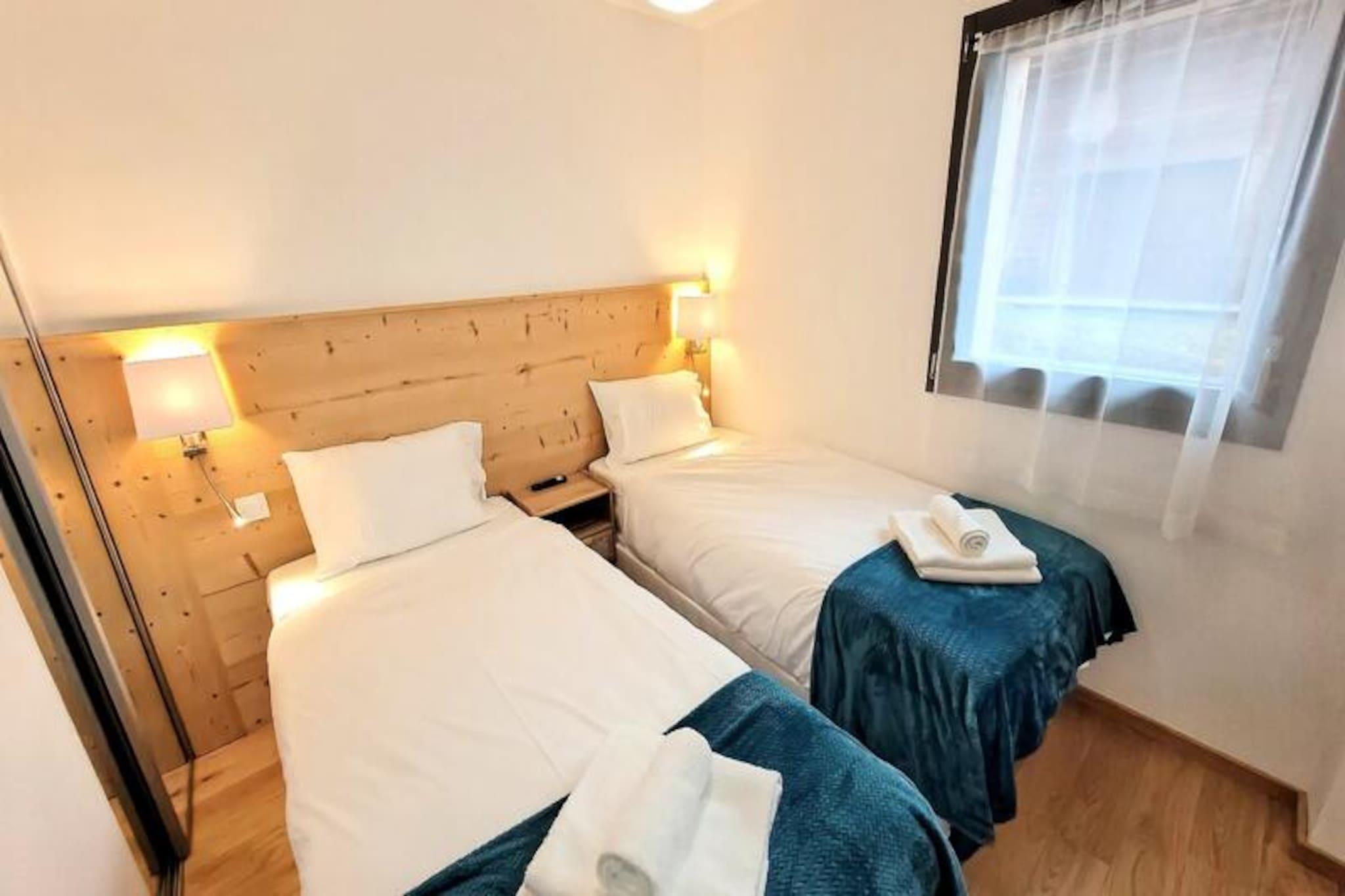 In the heart of the charming French Alps, this modern apartment in the La Croisette residence offers a perfect blend of comfort and convenience. Completed in 2024, the residence is ideally located just 300 meters from the town center and steps away from the lively market square. With its south-east exposure, the apartment is bathed in natural light throughout the day, creating a warm and inviting atmosphere for your alpine getaway. Whether you're here to ski the nearby slopes or simply relax, this residence promises a memorable stay. \n\nThe apartment spans 64 m² and is thoughtfully designed to accommodate up to six guests, with an ideal capacity for four. The living room is bright and spacious, featuring a fully equipped kitchen, dining area, and a cozy lounge with a TV. French doors lead to a generous 30 m² terrace, perfect for enjoying your morning coffee or unwinding after a day of adventure. The master bedroom boasts a comfortable double bed, TV, and direct access to the terrace, while the second bedroom offers two single beds that can be combined. Additional sleeping arrangements include a sofa bed in the living area. Two modern shower rooms ensure convenience for all guests. \n\nLocated just 600 meters from the nearest ski slopes and 700 meters from the French Ski School, this residence is a haven for winter sports enthusiasts. In summer, the region transforms into a paradise for hikers and nature lovers, with scenic trails and breathtaking views. Essential amenities such as shops, shuttles, and medical services are all within walking distance, making your stay stress-free and enjoyable. \n\nWhether you're seeking adventure or tranquility, this apartment is your gateway to the best of the French Alps. With high-quality facilities, thoughtful services, and a prime location, it’s the perfect choice for your next holiday.