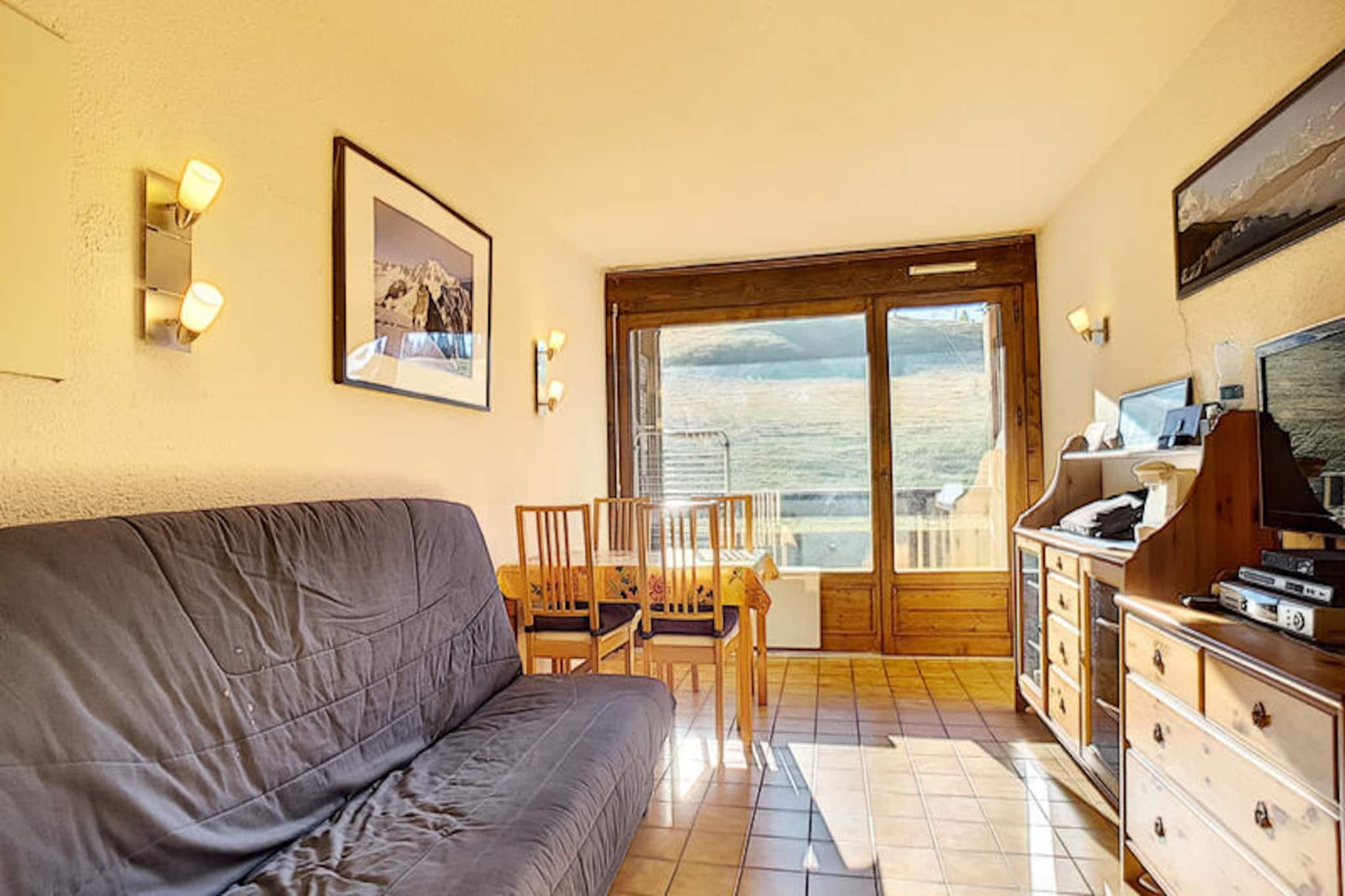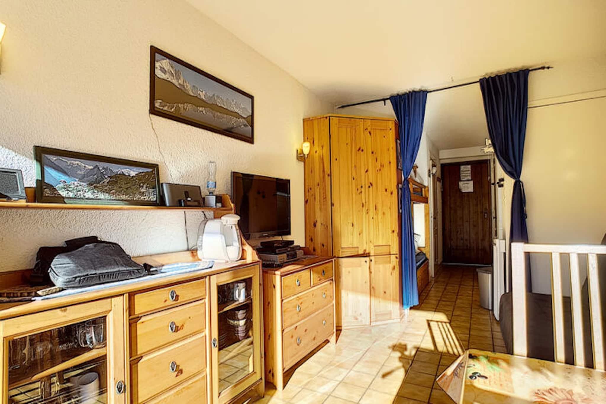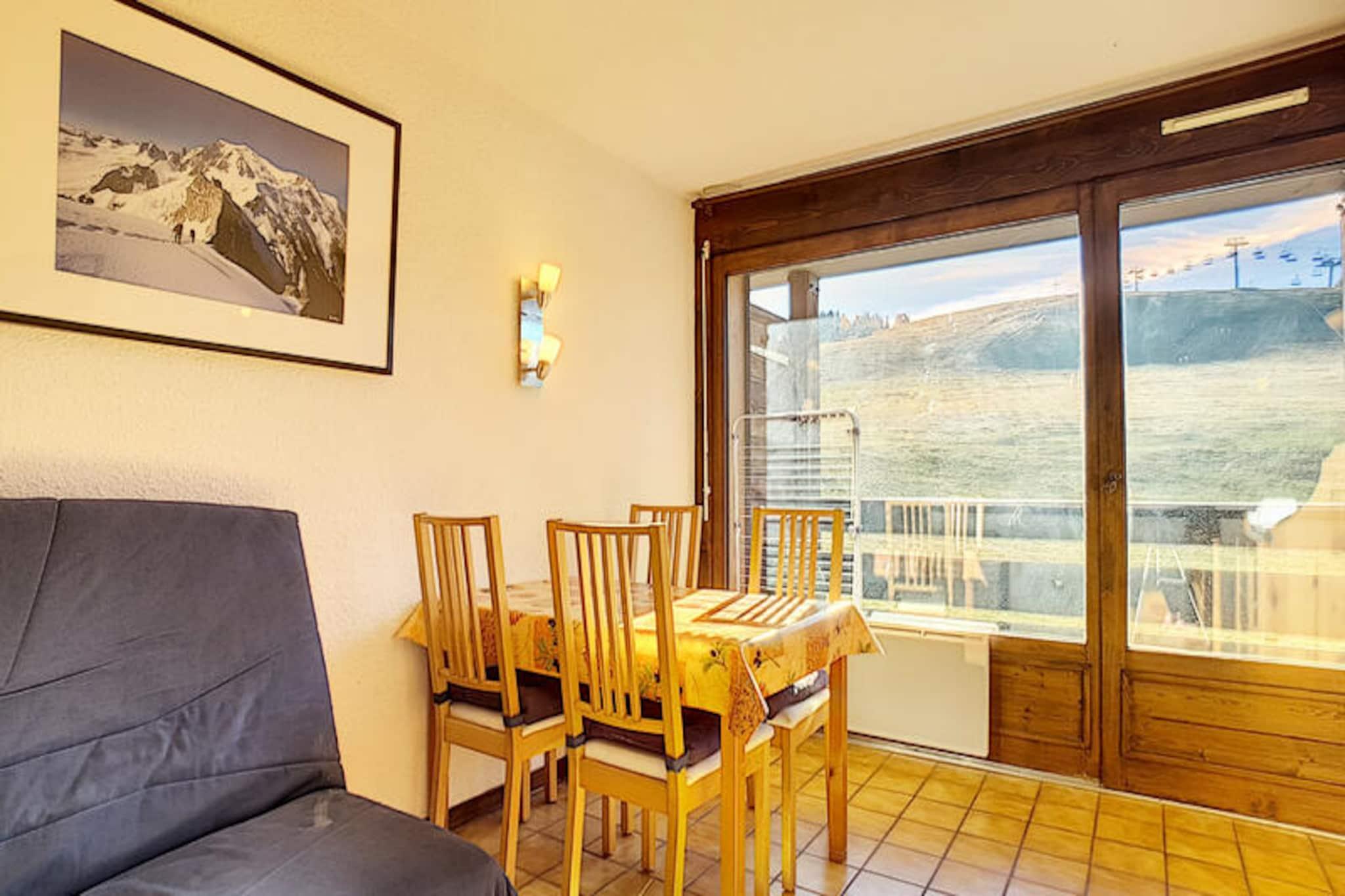 High above the charming village of Les Gets, this cozy 28 m² studio apartment offers a perfect retreat for mountain enthusiasts. Just 60 meters from the ski slopes of Plateau des Chavannes, you can step out and embrace the alpine adventure with ease. The southeast-facing balcony provides a serene spot to soak in the breathtaking views of snow-covered pistes and majestic peaks, making every moment unforgettable. Whether you're here for the thrill of skiing or the tranquility of mountain life, this studio promises a memorable stay. \n\nInside, the apartment is thoughtfully designed to maximize comfort and functionality. A sleeping alcove with a bunk bed and a sofa bed in the living room ensures ample space for up to four guests. The modern shower room and separate WC add convenience, while the fully equipped kitchen, complete with a refrigerator, microwave, oven, dishwasher, and coffee maker, invites you to prepare hearty meals after a day on the slopes. Additional amenities such as a washing machine, television, and internet access ensure a seamless and relaxing experience. \n\nBeyond the slopes, the vibrant town center is just 4 kilometers away, easily accessible via free shuttle buses that operate day and night. Here, you'll discover a variety of restaurants, shops, and local attractions. In summer, Les Gets transforms into a haven for outdoor activities, with highlights including the scenic Les Gets golf course and the tranquil Lac des Écoles. \n\nWith its unbeatable location, modern amenities, and year-round appeal, this apartment is the perfect base for your mountain getaway. Whether you're chasing powder in winter or exploring alpine trails in summer, Les Gets offers something special for everyone.