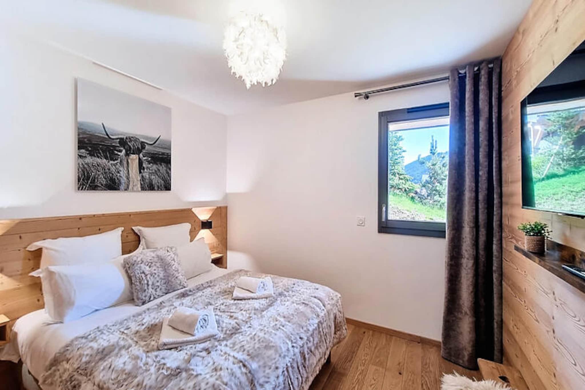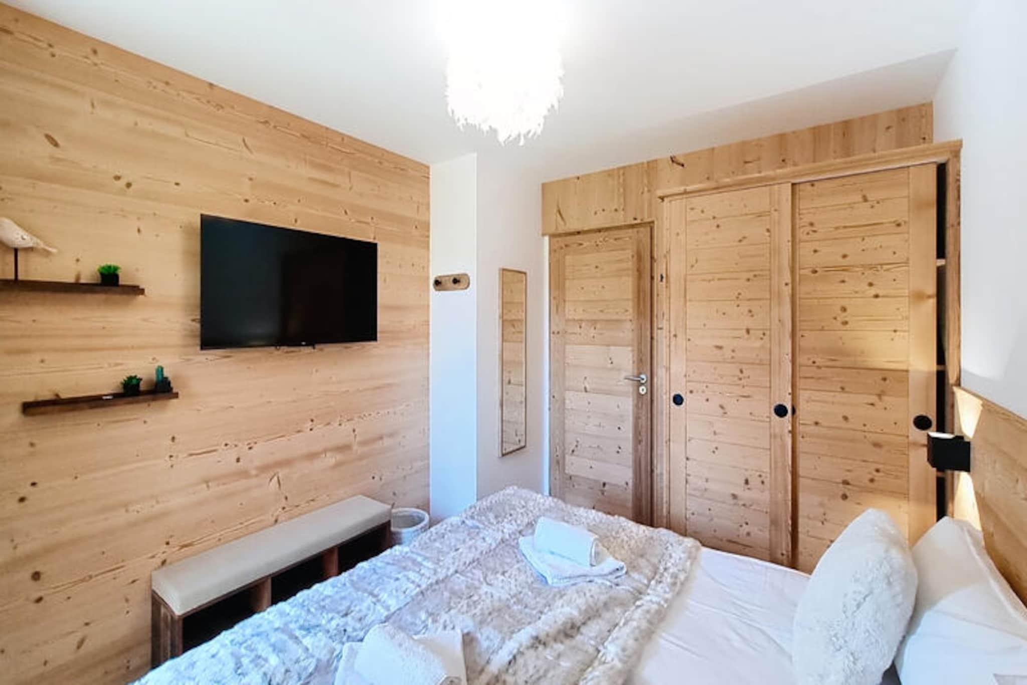 In the picturesque mountain village of Les Gets, this delightful 54m² apartment offers a perfect retreat for families and friends seeking both adventure and relaxation. With its blend of modern comfort and alpine charm, it promises an unforgettable stay in the heart of the French Alps. Imagine waking up to crisp mountain air and serene views, ready to explore the stunning surroundings. \n\nThe apartment comfortably accommodates up to four guests with two inviting bedrooms—one featuring a plush double bed and the other with two cozy single beds. The open-plan kitchen is fully equipped with everything you need to prepare delicious meals, including a refrigerator, oven, dishwasher, microwave, Nespresso coffee machine, and more. After a day of skiing or hiking, unwind in the living area with three televisions or step out onto the balcony to soak in the tranquil atmosphere. A modern bathroom with a shower ensures your comfort, while private covered parking with a charging point adds convenience for those traveling by car. \n\nLocated just 550 meters from the Chavannes ski lifts and a short stroll from the vibrant town center, this apartment places you at the heart of Les Gets’ activities. Whether you’re hitting the slopes in winter or exploring scenic trails in summer, everything is within easy reach. The village itself boasts charming shops, cozy cafes, and a welcoming ambiance that captures the essence of alpine living. \n\nChoose this cozy apartment for your next getaway and create lasting memories surrounded by the beauty of the French Alps. Whether you’re here for skiing, hiking, or simply unwinding, this is the perfect base for your mountain escape.