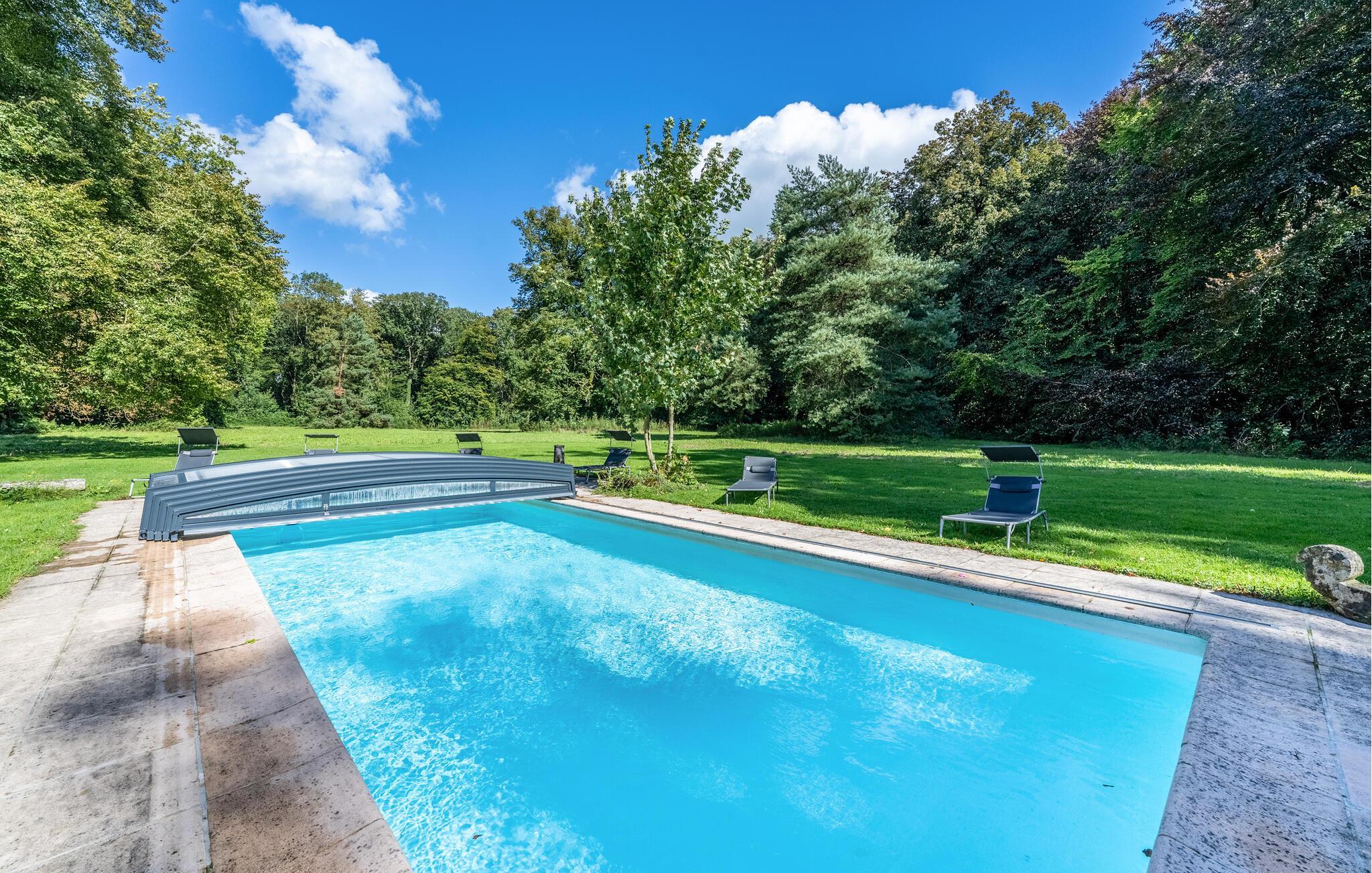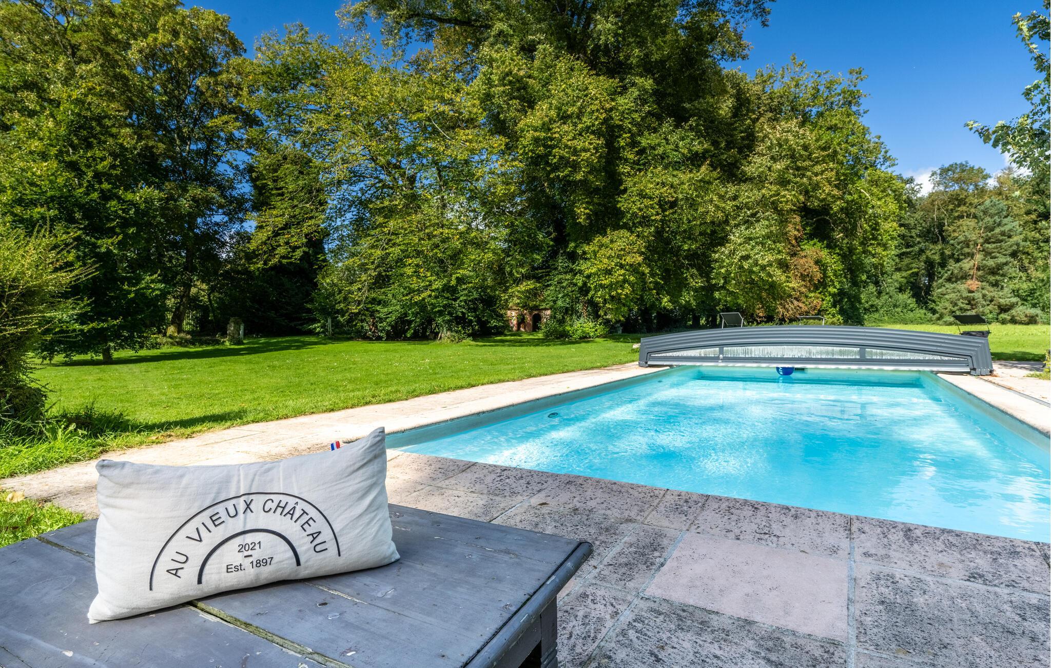 Etwas nördlich von Paris gelegen, verleben Sie einen fantastischen Urlaub in diesem komplett renovierten, komfortablen Schloss in einer idyllischen Umgebung. Alle Räume dieses Ferienhauses bieten eine gelungene Kombination aus modernem Design und traditionellem französischen Charme. Wachen Sie morgens gut ausgeschlafen auf und schlendern Sie die langen Gänge entlang oder lassen Sie sich auf einem der zahlreichen Sessel oder Sofas nieder. Atmen Sie tief durch und spüren Sie die sorglose Stimmung, die das fürstliche Ambiente verbreitet. Für Spaziergänge steht Ihnen der große Park mit privatem Wanderweg zur Verfügung. Oder machen Sie Reitausflüge und Radwanderungen in der Umgebung. Darüber hinaus können hier private Jagdausflüge und Yogaseminare veranstaltet werden. Ihr Swimmingpool vervollständigt das fantastische Urlaubserlebnis.