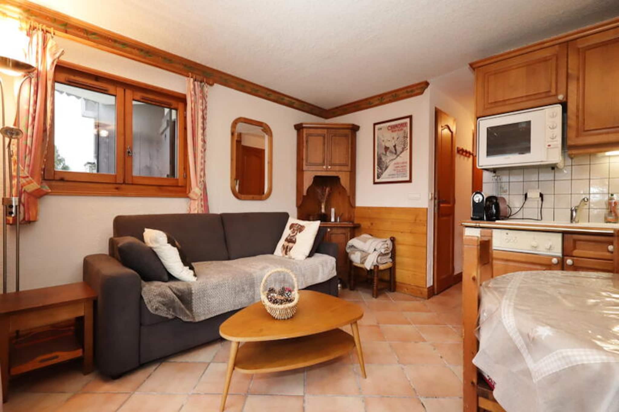 Imagine waking up to the breathtaking views of the Fiz mountain range and the iconic Mont Blanc, where every moment feels like a postcard come to life. This charming 2-room cabin apartment in Les Houches offers the perfect alpine escape for families or friends, combining comfort, convenience, and stunning natural surroundings. Located just 300 meters from the Prarion cable cars and 1.9 kilometers from the heart of Les Houches, you’ll have easy access to both thrilling outdoor adventures and the quaint charm of the village. Step inside this 32m² retreat and discover a thoughtfully designed space that accommodates up to six guests. The living room invites you to relax with its cozy sofa bed, television, and dining area, all opening onto a balcony with panoramic views. The fully equipped kitchen, complete with a stovetop, oven, dishwasher, washing machine, and refrigerator, makes meal preparation a breeze. The main bedroom features a comfortable double bed and ample storage, while the cabin bedroom with its bunk bed is perfect for children or additional guests. A modern bathroom with a shower and a separate toilet add to the convenience. After a day on the slopes or exploring the trails, unwind in the residence’s indoor pool, open daily from 9 a.m. to 9 p.m. The property also includes a ski locker and shared outdoor parking, ensuring a hassle-free stay. For added comfort, optional services such as Wi-Fi, linen rental, and childcare equipment are available. Pets are welcome, making it a true home away from home for the whole family. Whether you’re here to ski, hike, or simply soak in the alpine beauty, this apartment offers a serene and practical base for your mountain adventures. With the majestic Mont Blanc as your backdrop, every day in Les Houches is an unforgettable experience.