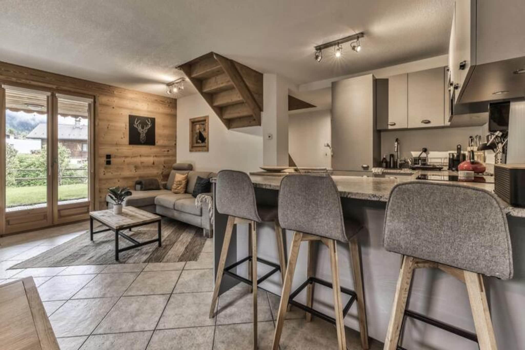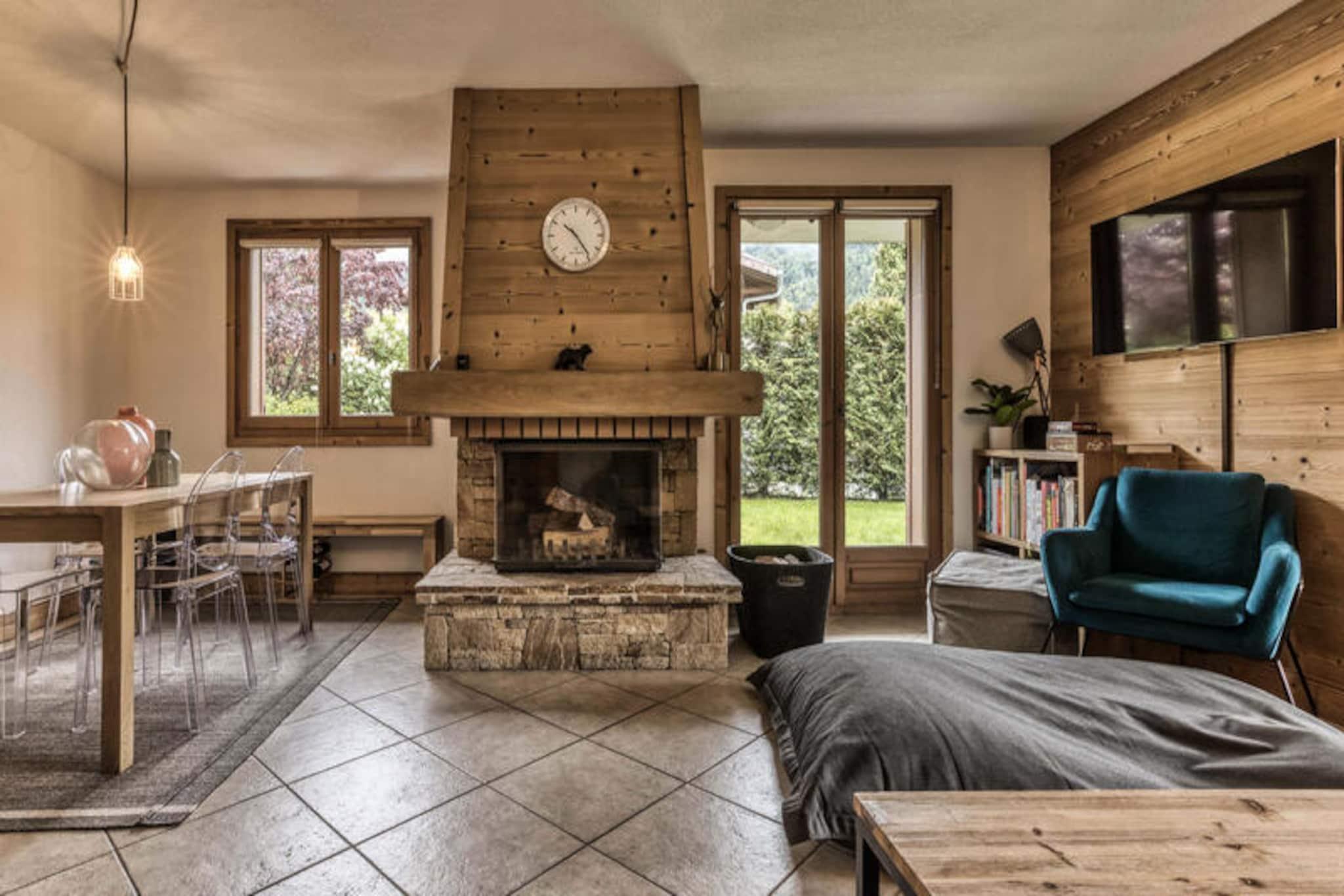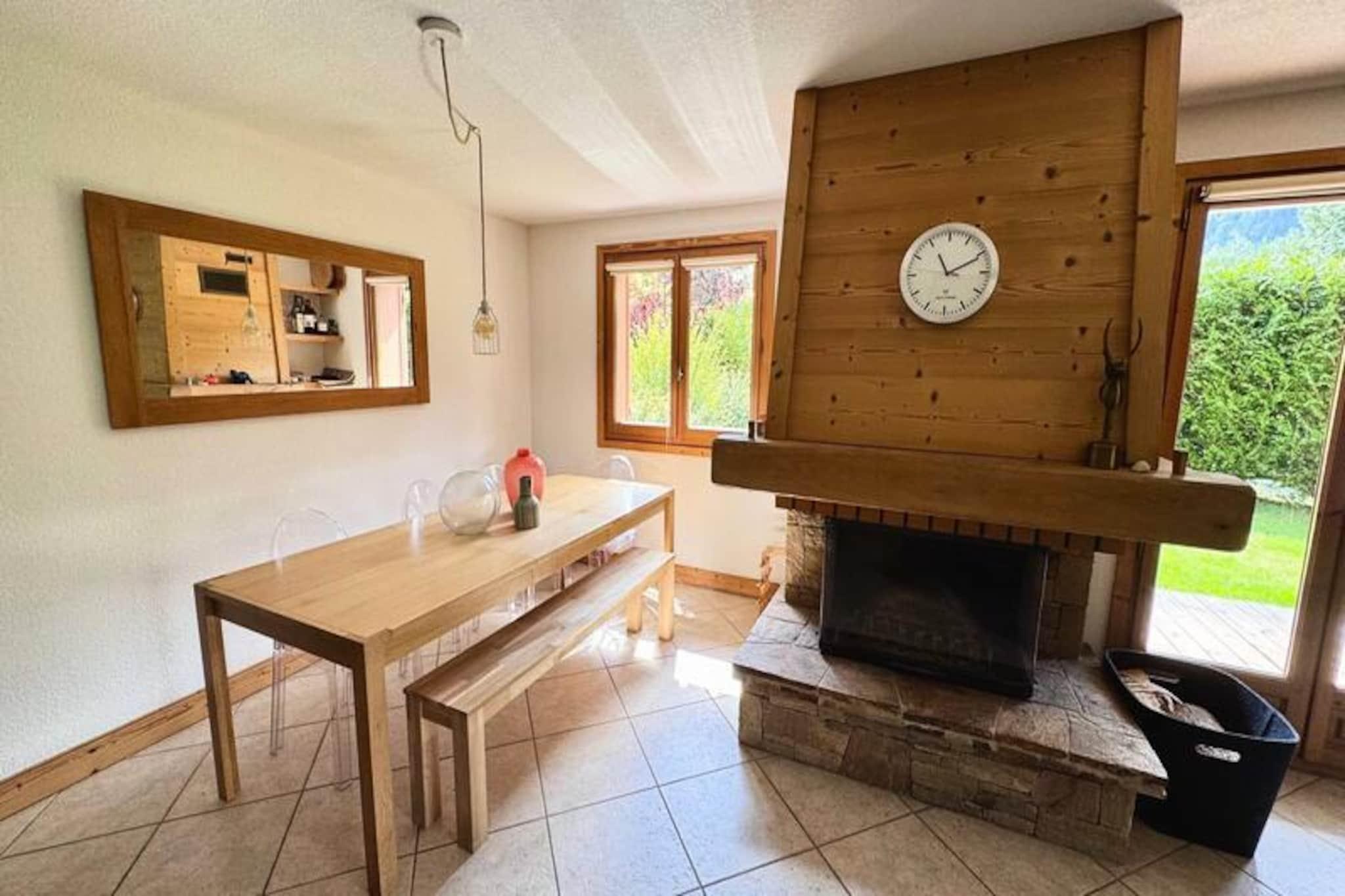 Surrounded by the majestic peaks of the Mont Blanc massif, this elegant 97m² apartment in the Le Pont district of Les Houches offers a serene alpine retreat for up to eight guests. Just a short 10-minute drive from Chamonix, this property combines the charm of mountain living with modern comforts, making it an ideal base for exploring the French Alps. Whether you’re here to ski, hike, or simply relax, the breathtaking scenery and tranquil atmosphere set the stage for an unforgettable holiday. \n\nThe apartment is thoughtfully designed across three levels, ensuring ample space and privacy for families or groups. On the ground floor, the cozy living and dining area features a fireplace and TV, opening onto a terrace and garden where you can soak in the crisp mountain air. The fully equipped kitchenette includes everything you need for home-cooked meals, while the first-floor bedrooms offer restful double beds and balcony access for panoramic views. A games room with billiards and table football on the lower level adds a touch of fun to your stay, and bicycles are available for guests eager to explore the surrounding trails. \n\nConveniently located, the apartment is just 350 meters from a bus stop and 1.3 kilometers from the Taconnaz train station, ensuring easy access to local attractions. Les Houches village center and ski slopes are nearby, while the vibrant town of Chamonix is within easy reach for dining, shopping, and adventure. Whether you’re skiing the renowned pistes or enjoying summer hikes, this property places you at the heart of alpine excitement. \n\nWith its blend of comfort, location, and stunning surroundings, this apartment invites you to experience the magic of the Mont Blanc region. Perfect for families, friends, and even your furry companions, it’s a place to create lasting memories in one of the most iconic mountain destinations in the world.