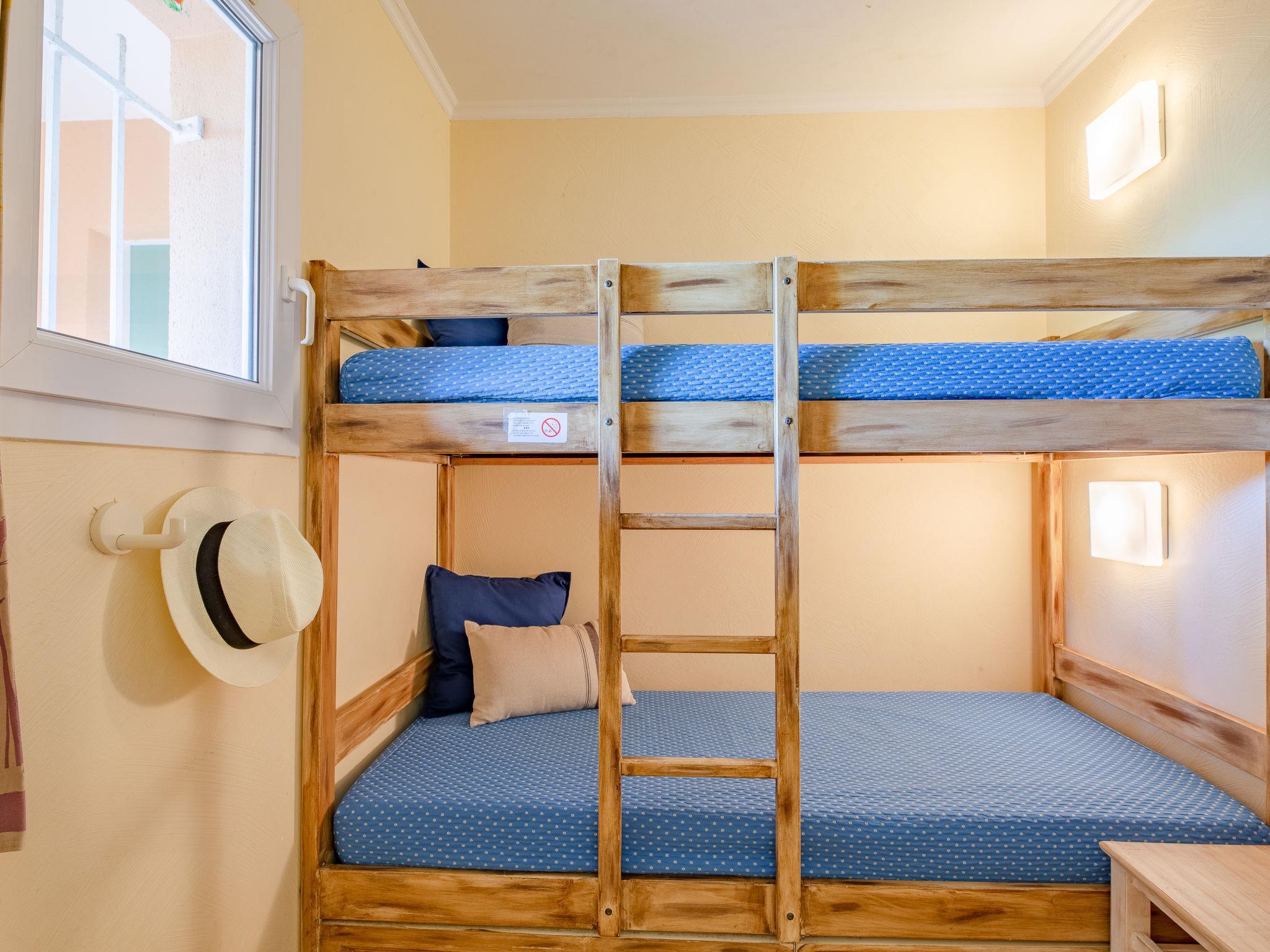 3-room apartment 45 m2, on the ground floor. Simple and practical furnishings: living/dining room with 2 beds (80 cm, length 190 cm), TV and air conditioning. Exit to the garden, to the terrace. 1 room with 1 x 2 bunk beds (80 cm, length 190 cm). 1 room with 1 french bed (140 cm, length 190 cm), air conditioning. Exit to the garden, to the terrace. (oven, dishwasher, 4 ceramic glass hob hotplates, toaster, kettle, microwave, freezer, electric coffee machine). Bathroom, shower/WC, sep. WC. Heating. Terrace 20 m2, south facing position. Terrace furniture. Facilities: washing machine. Internet (WiFi, extra). Parking space n 334. Please note: non-smokers only. Smoke alarm, no lift. 8310700018431