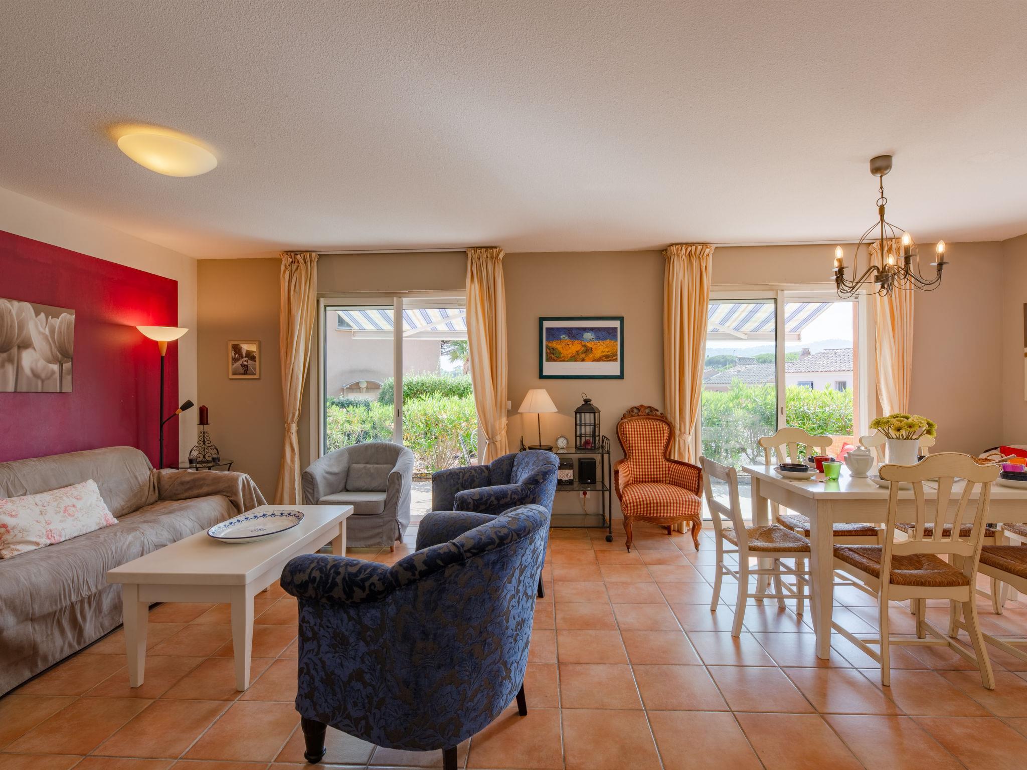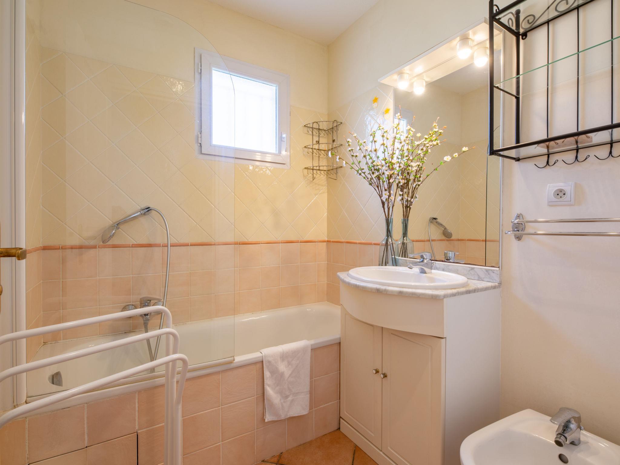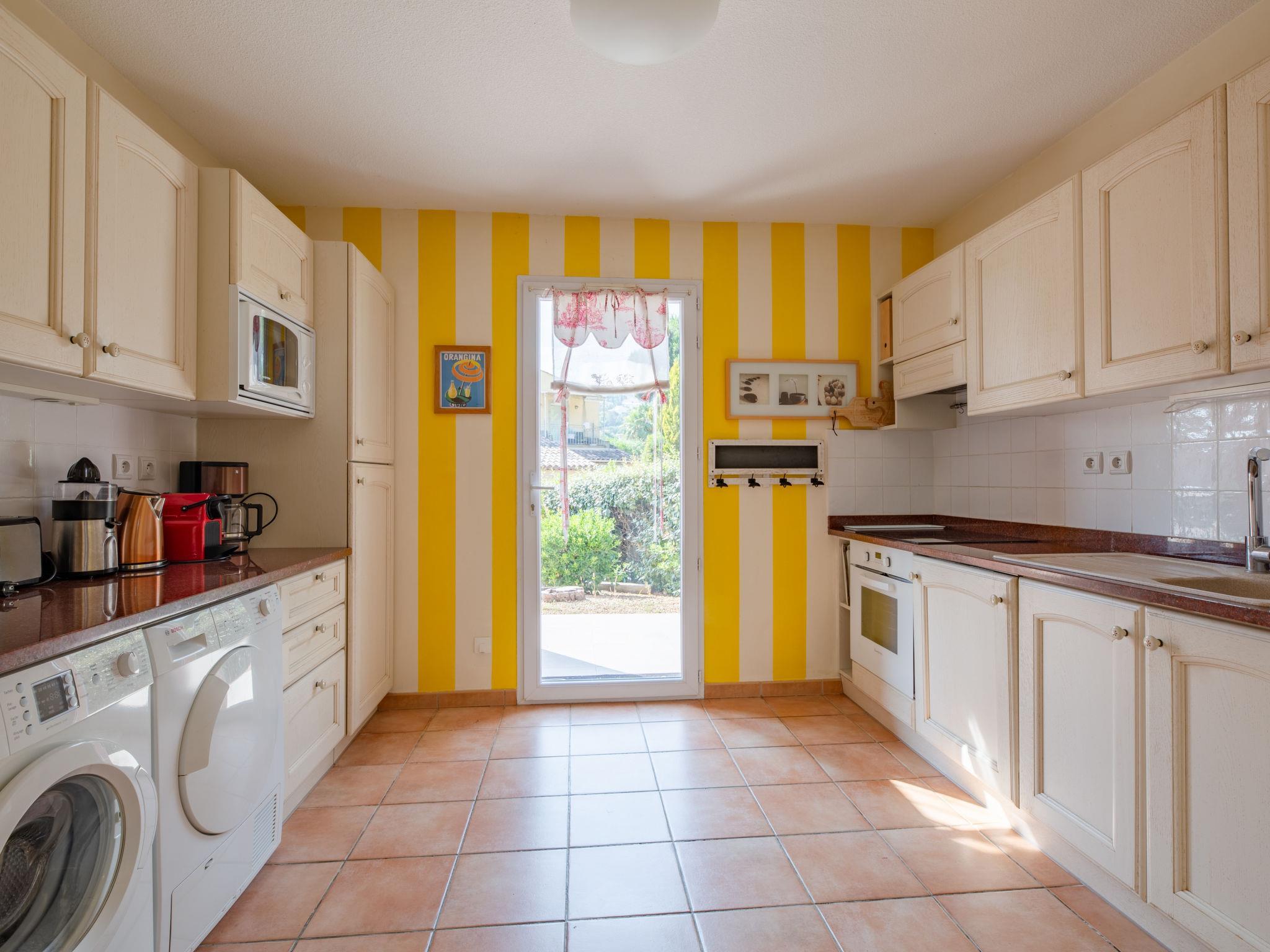 4-room villa 140 m2 on 2 levels, south-east facing position. Comfortable and beautiful furnishings: living/dining room with TV (flat screen). Exit to the garden, to the terrace. Kitchen (oven, dishwasher, 4 ceramic glass hob hotplates, toaster, kettle, microwave, freezer, electric coffee machine). Exit to the garden, to the terrace. Sep. WC. Upper floor: 1 room with 1 french bed (160 cm, length 200 cm), shower. 1 room with 1 french bed (160 cm, length 200 cm). Exit to the terrace. 1 room with 1 french bed (140 cm, length 190 cm). Bathroom, sep. WC. Electric heating, air-conditioning. Large terrace, garden 500 m2. Terrace furniture. Facilities: washing machine, dryer. Internet (WiFi, free). Garage. Please note: non-smokers only. 1 small pet/ dog allowed. Smoke alarm. 83107000177UG