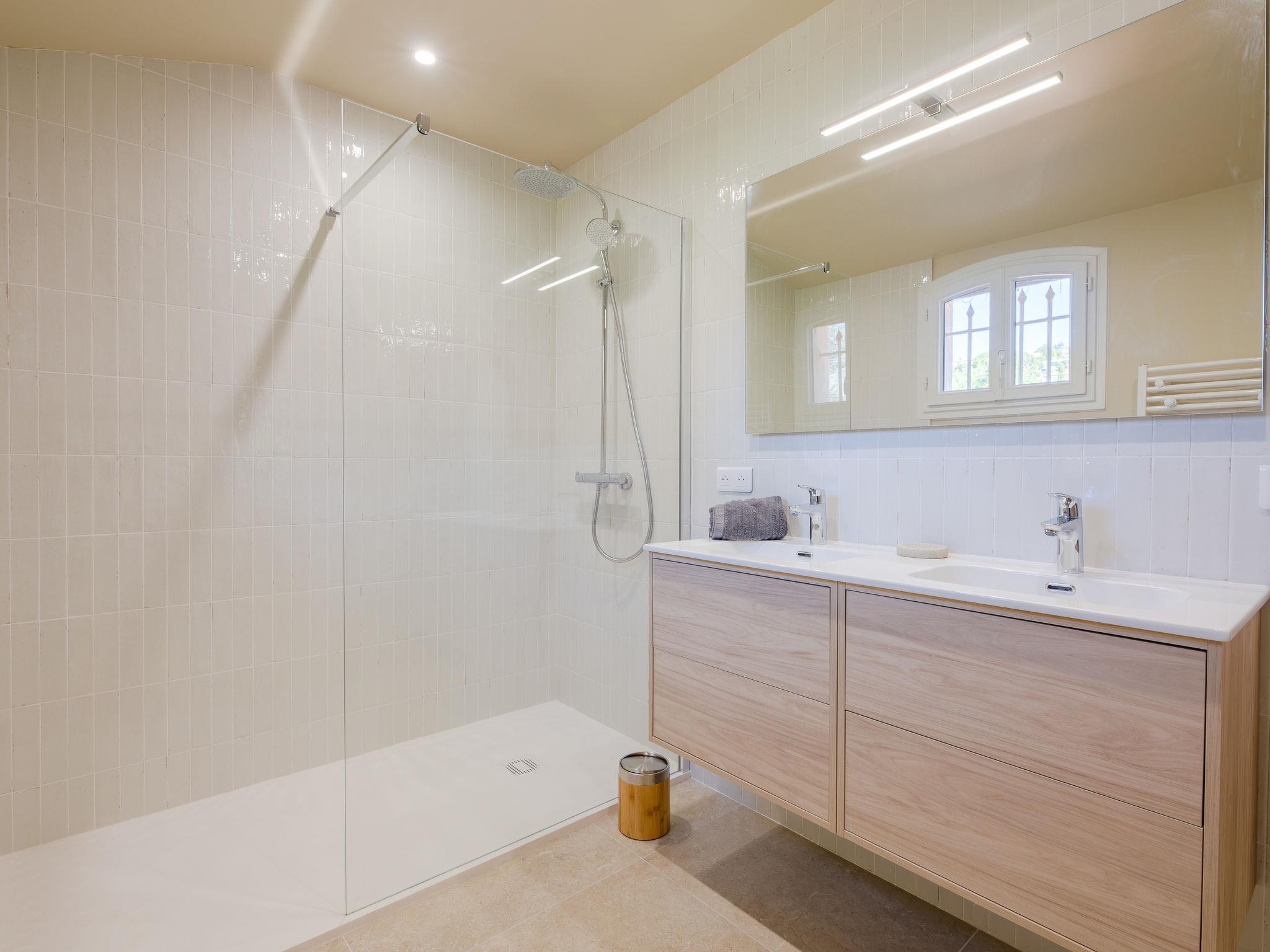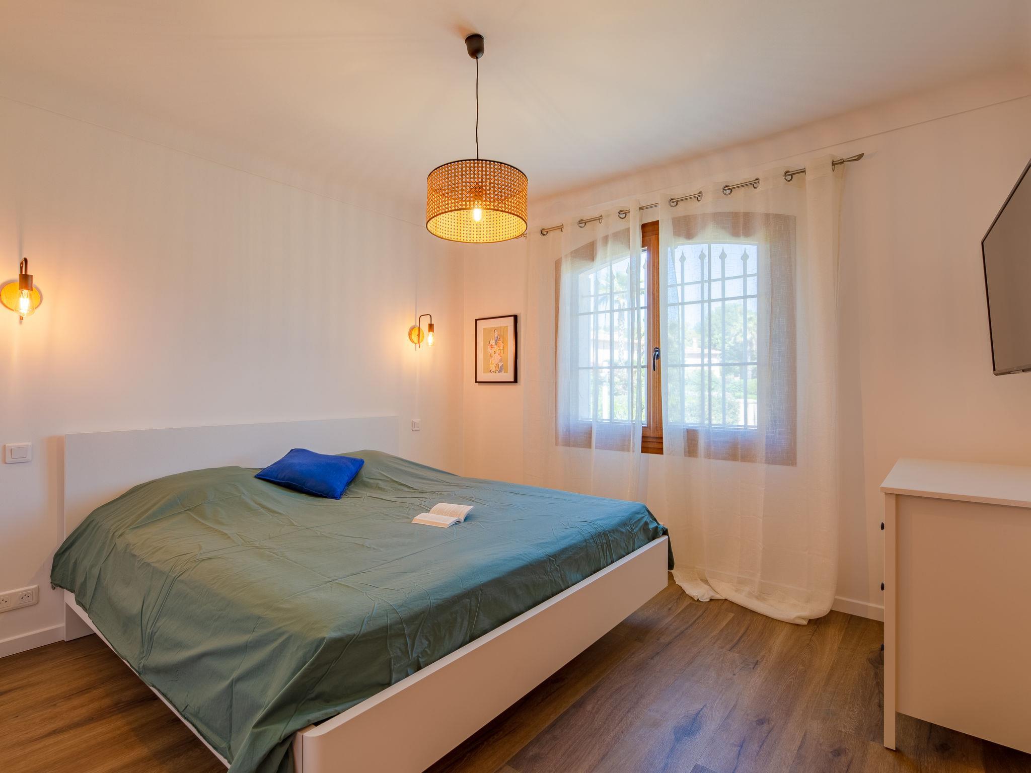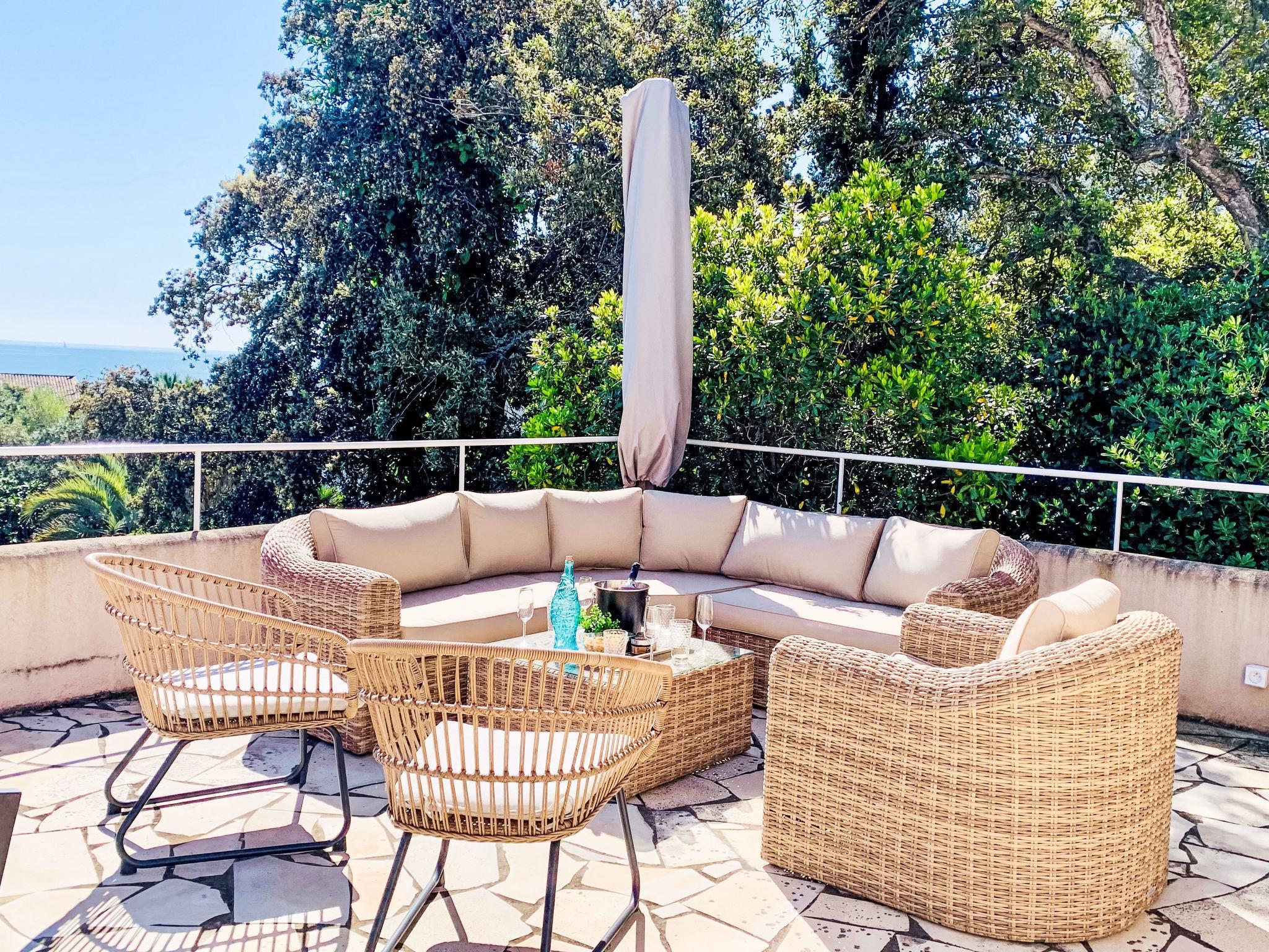 5-room villa 150 m2, on the upper floor. Renovated in 2024, comfortable furnishings: living/dining room with TV, flat screen and air conditioning. Exit to the terrace. 2 rooms with Dressing room, each room with 1 french bed (1 x 180 cm, length 200 cm), shower, TV, flat screen and air conditioning. Large kitchen (oven, dishwasher, 4 induction hot plates, toaster, kettle, microwave, freezer, electric coffee machine, Capsules for coffee machine (Nespresso) extra). Exit to the terrace. Electric heating. On the lower ground floor: 1 room, ceiling height 185 cm with 1 french bed (1 x 140 cm, length 190 cm), TV (flat screen). Shower/WC. Electric heating. Upper floor: office. 1 room with 1 french bed (1 x 160 cm, length 200 cm), TV, flat screen and air conditioning. Exit to the balcony. Shower/WC. Electric heating. Balcony 6 m2, south facing position, large terrace 60 m2, south facing position. Terrace furniture, electric barbecue, deck chairs (6). Beautiful view of the sea. Facilities: washing machine, dryer, iron, hair dryer. Internet (WiFi, free). Parking. Please note: maximum 1 pet/ dog allowed. Smoke alarm. Offer by a private individual according to Art. 155, IV of CGI. 83107001863XM