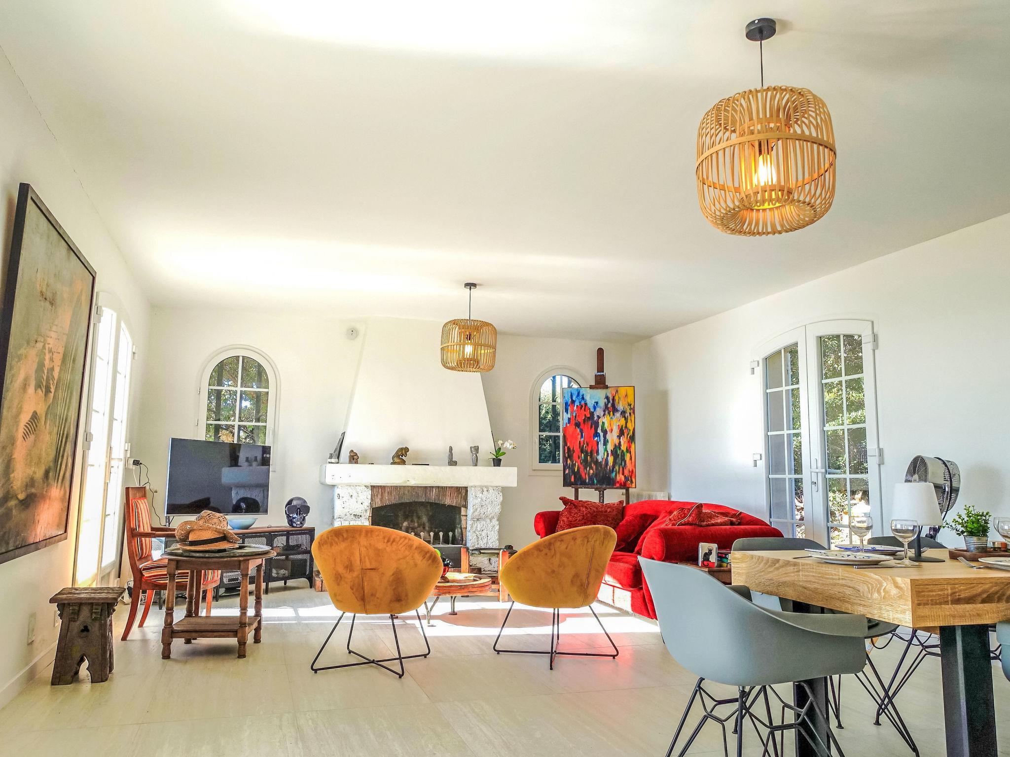 4-room villa 110 m2 on 2 levels, south facing position. Spacious, cosy furnishings: living/dining room with TV (flat screen), hi-fi system, DVD and fan. Exit to the terrace. 1 room with Dressing room with 1 french bed (1 x 160 cm, length 190 cm), fan. Exit to the balcony. 1 room with Dressing room with 1 french bed (1 x 140 cm, length 190 cm), fan. Exit to the balcony. Large kitchen (oven, dishwasher, 4 induction hot plates, microwave, freezer, electric coffee machine, Capsules for coffee machine (Nespresso) extra). Exit to the terrace. Bathroom, 2 sep. WC's. Oil heating. Upper floor: (steep stair), 1 room with 1 french bed (1 x 160 cm, length 190 cm), shower/WC and fan. Exit to the balcony. 2 balconies 20 m2, south facing position, large terrace, north facing position, large terrace 50 m2 partly roofed, south facing position. Terrace furniture, barbecue, deck chairs (6). Marvellous view of the sea. Facilities: washing machine, safe, iron. Internet (WiFi, free). Parking. Please note: non-smoking house. TV only FR, EN. Smoke alarm. Offer by a private individual according to Art. 155, IV of CGI. 83107002714FX