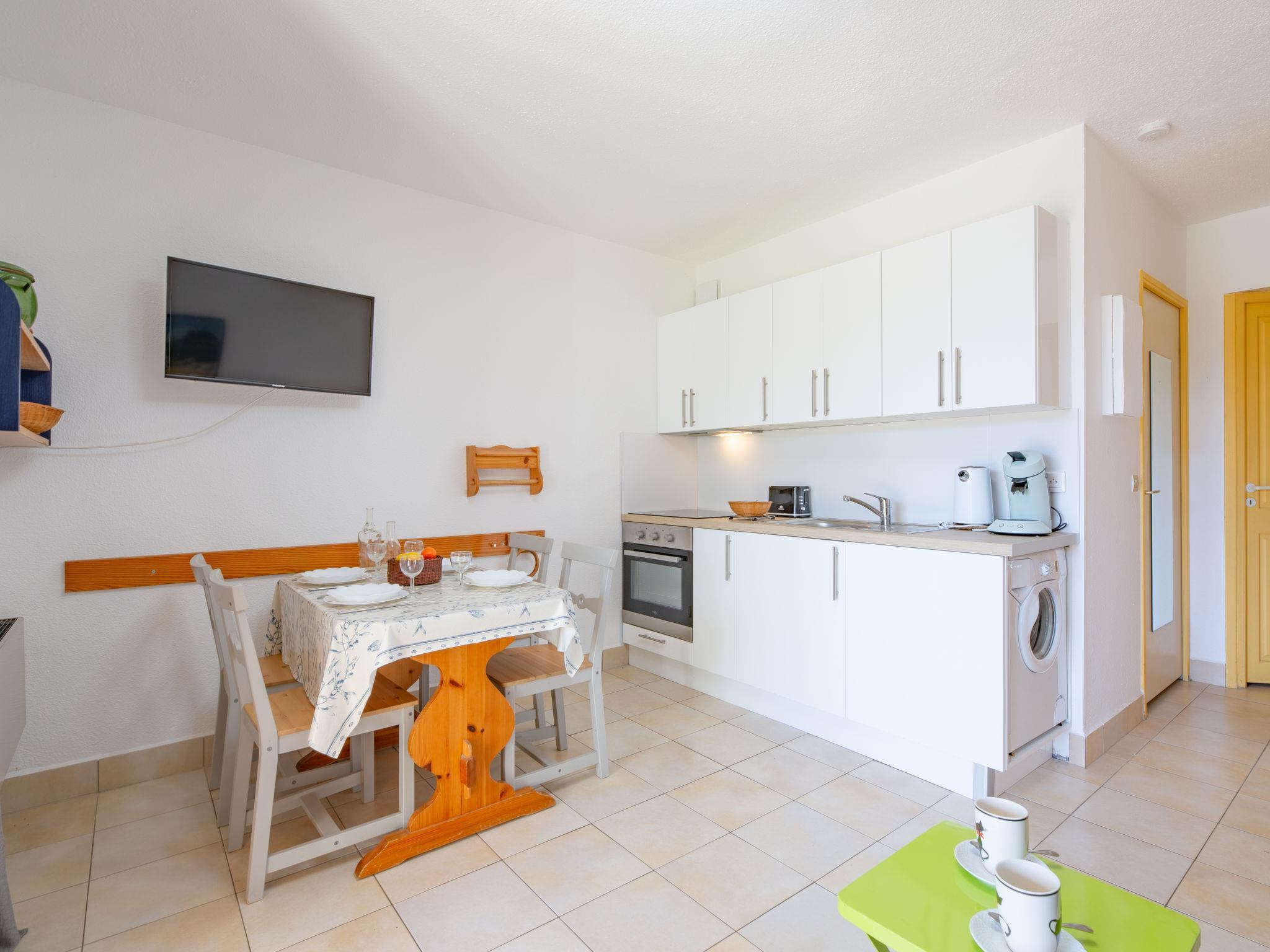 1-room apartment 36 m2, on the ground floor. Simple and practical furnishings: living/dining room with 1 double sofabed (140 cm, length 190 cm), TV. Exit to the terrace. Sleeping alcove, without window with 1 x 2 bunk beds (80 cm, length 190 cm). Kitchenette (4 hot plates, oven, toaster, kettle, microwave, electric coffee machine). Bathroom, sep. WC. Electric heating. Large terrace 40 m2, south facing position. Terrace furniture. View of the sea. Facilities: washing machine. Internet (WiFi, extra). Parking. Please note: non-smokers only. Maximum 1 pet/ dog allowed. Smoke alarm. Access to the apartment is via some stairs and a pathway. 83107000188UE