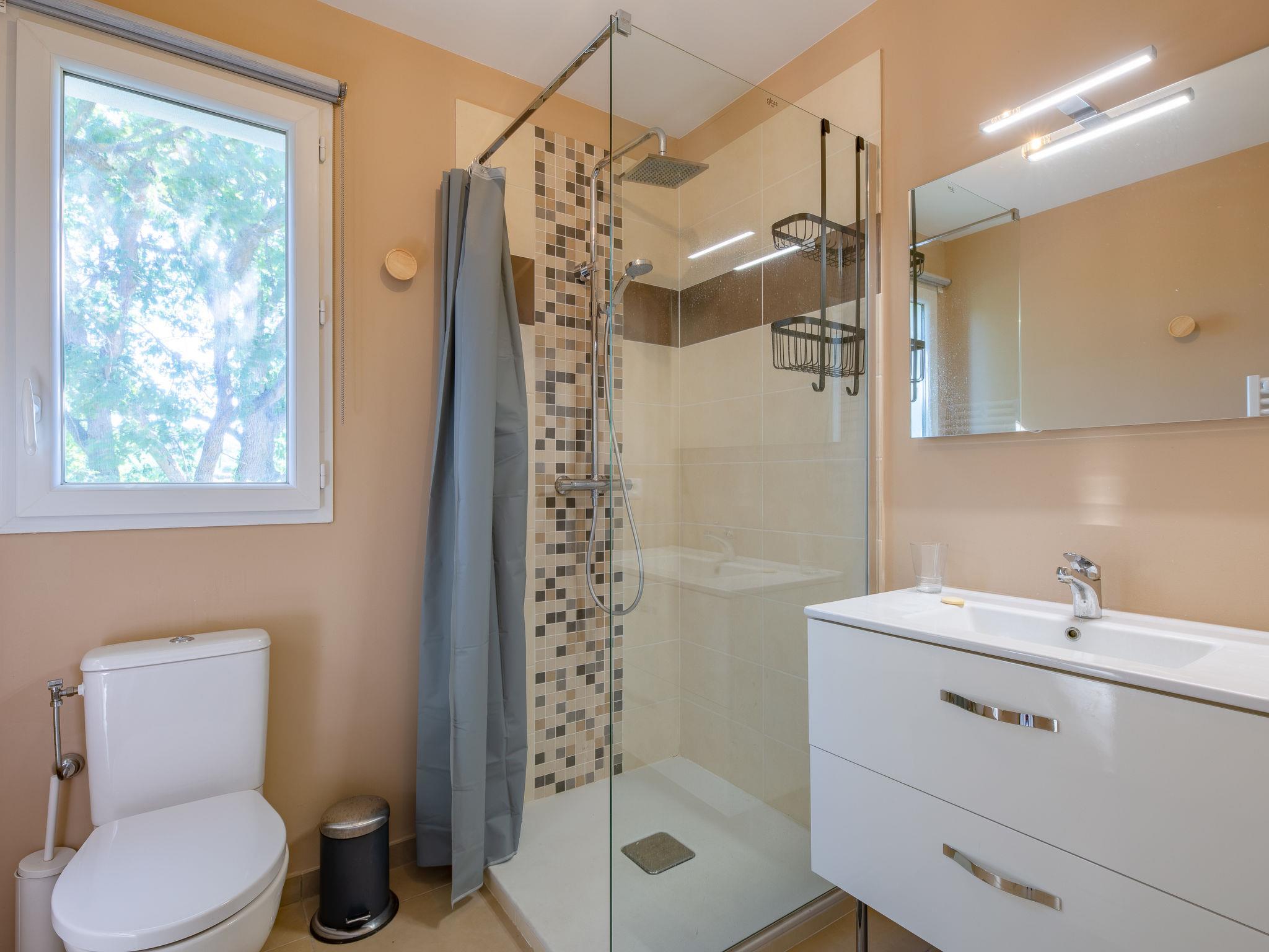 "Villa Julia", 4-room terraced house 110 m2 on 2 levels. Very beautiful and tasteful furnishings: large living/dining room with TV. Exit to the terrace. Open kitchen (oven, dishwasher, 3 induction hot plates, toaster, kettle, microwave, freezer, electric coffee machine). Sep. WC. Upper floor: 1 room with 1 french bed (180 cm, length 200 cm). Exit to the balcony. 1 room with 1 french bed (160 cm, length 200 cm). 1 room with 1 pull-out bed (2 pers. 2 x 80 cm, length 200 cm). Bathroom, shower/WC, sep. WC. Electric heating, air-conditioning. Terrace 12 m2, roofed, south facing position and west facing position. Terrace furniture, electric barbecue, deck chairs (3). View of the garden. Facilities: washing machine. Internet (WiFi, free). Parking (1 car). Please note: non-smoking house. Offer by a private individual according to Art. 155, IV of CGI. 831070017714A