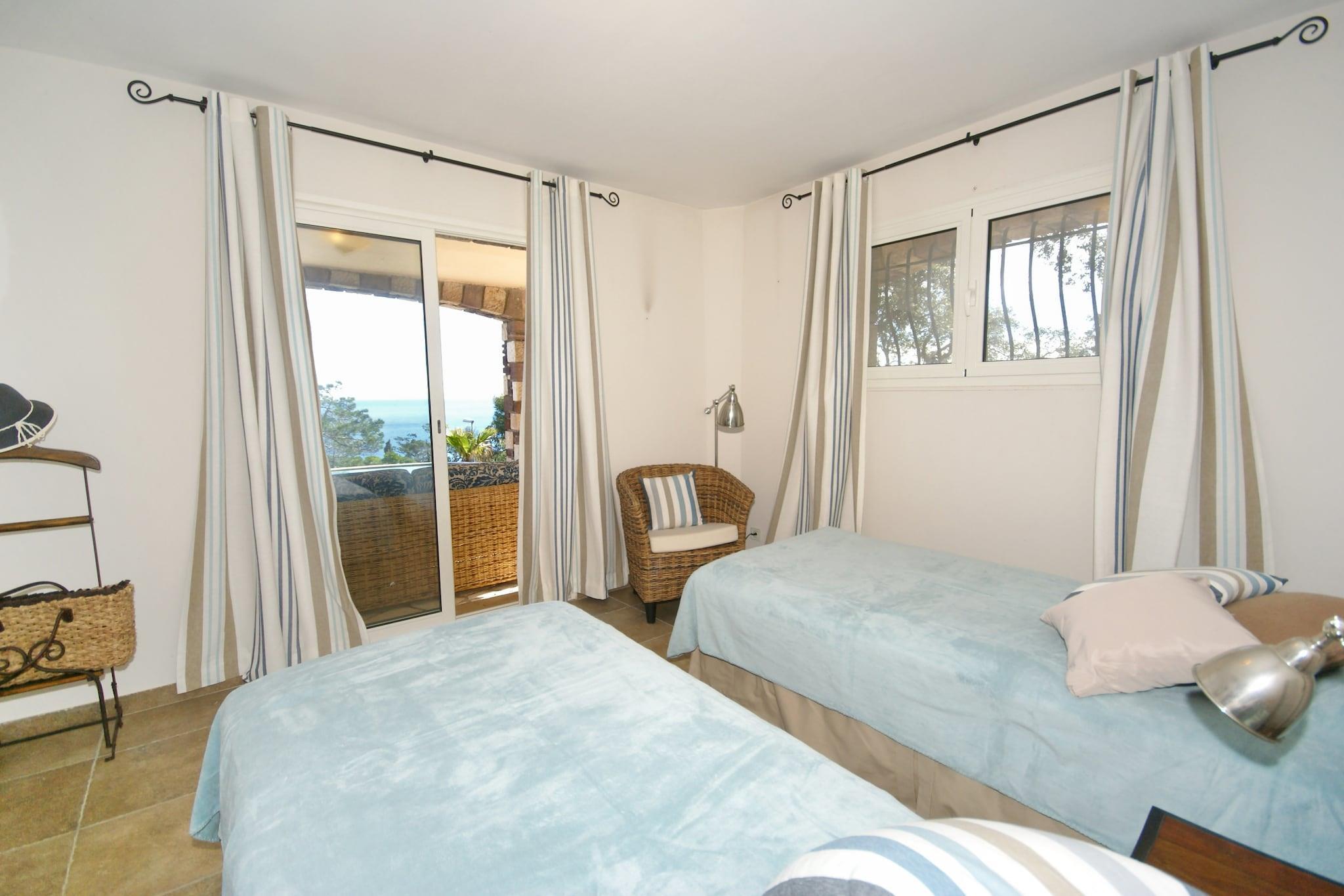 Ground floor: (Living room(seating area, electric kettle, fridge), bedroom(double bed(160 x 200 cm), air conditioning), bedroom(2x single bed, air conditioning), bathroom(shower, washbasin, toilet), bathroom(shower, 2x washbasin, toilet)) On the 1st floor: (Kitchen(electric kettle, cooker(4 ring stoves), coffee machine(filter), oven, microwave, dishwasher, fridge-freezer, air conditioning), Living/diningroom(dining table, fireplace, seating area), bedroom(double bed(200 x 200 cm), air conditioning), bathroom(shower, washbasin, toilet), bathroom(shower, washbasin, toilet)) On the 2nd floor: (bedroom(bunk bed, air conditioning), roof terrace) TV, stove, shower, washing machine, patio, heating, terrace, terrace(roofed), garden, garden furniture, sun loungers, BBQ, swimming pool(private, 12 x 8 m.), fitness equipment, children's bed, children's bed, high chair, ironing board, iron