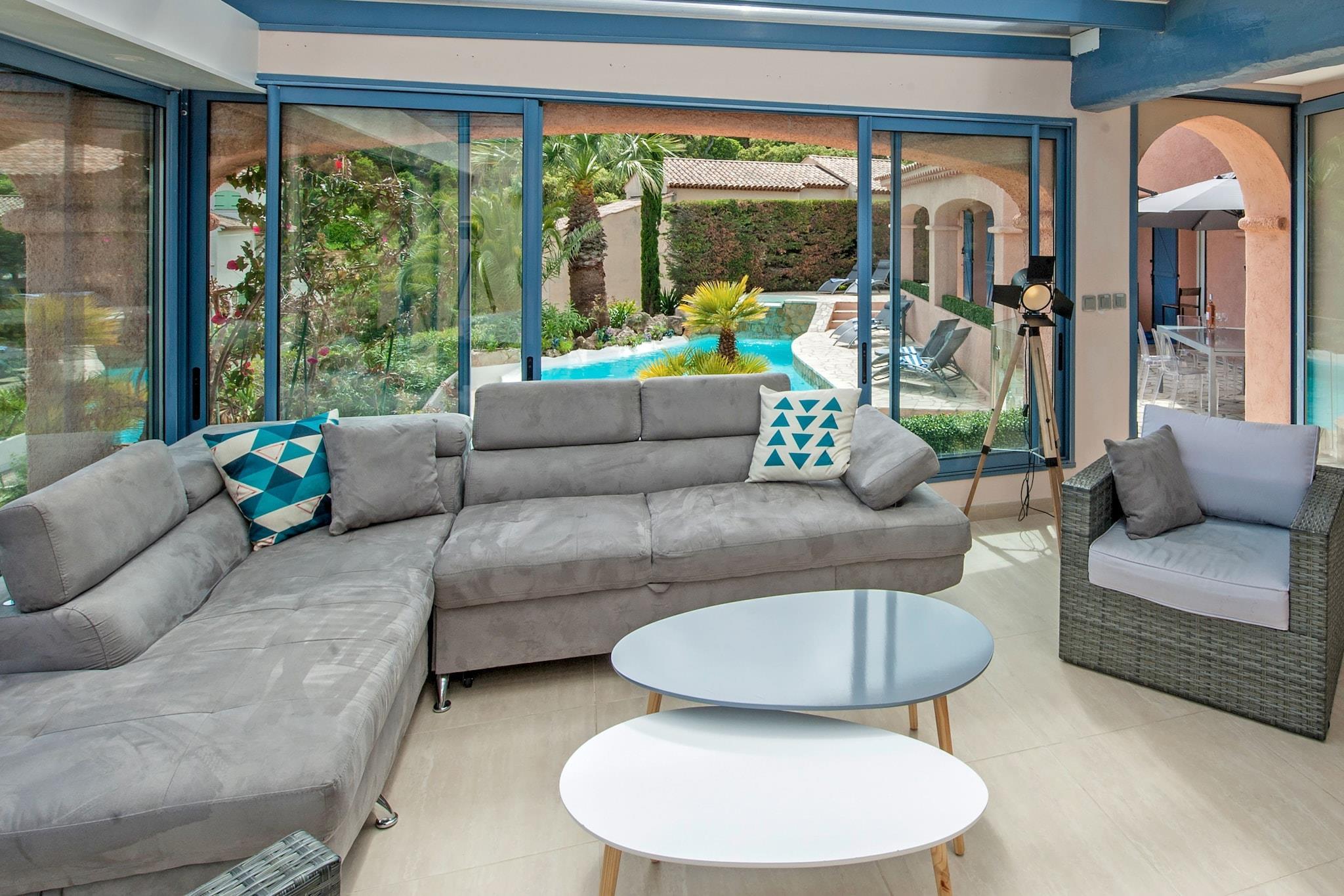 Enjoy a peaceful stay in this beautiful and spacious villa in Les Issambres that was specially designed for large families. This recently renovated luxury home has a sauna and a heated pool (March 15 to October 15), secured with controlled access by parents and an outdoor shower. The terrace is equipped with a summer kitchen with refrigerator and plancha and is furnished for family meals with a magnificent view of the sea. Inside, there is a sauna with separate shower and toilet, a gym with yoga mats, treadmills and air bikes, a lounge with TV, books, board games and a pool table. The children can have fun with the swing and the slide in the garden but also in the mezzanine equipped with games, books and toys. For the babies you have at your disposal dishes, a baby bed (movable by the janitor in the room you wish, thank you to ask him in advance), a high chair, a baby playpen (90*90), a changing table, a potty, a toilet reducer and a stroller with a lying position for the toddlers The house is fully air-conditioned (except for the basement where the sauna and the fitness room are located); The five bedrooms are equipped with high quality bedding; The four parental suites, each with its own bathroom, allow you to enjoy a splendid view of the sea. On the first floor one of them has direct access to the pool and on the first floor one of them has its own terrace. There are two beaches nearby and you can do all your shopping at the supermarket located 2.5 km away. At 3.5 km you will find the center of Saint Aygulf with horse riding possibilities. The lake of Etang de Villepey is 5 km away and the city center of Les Issambres is 6 km away. Roquebrune sur Argens, where you can play golf, is 9 km away. You can park up to 4 cars for free. Our discreet but available concierge lives on the property and will be happy to help you. Do not hesitate to ask him, he knows the area very well.