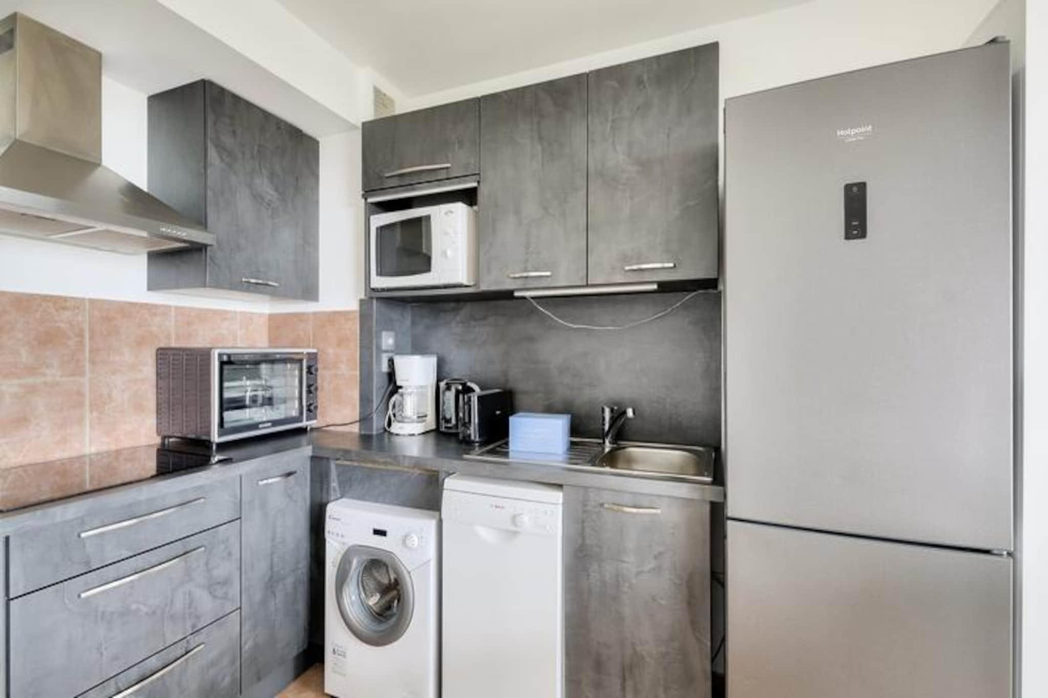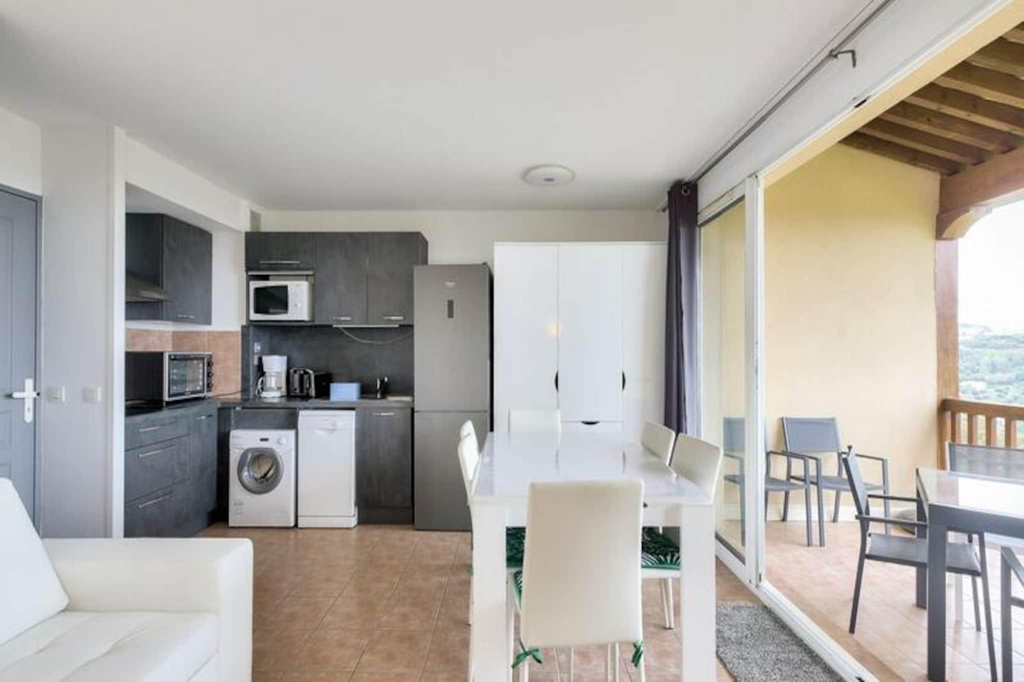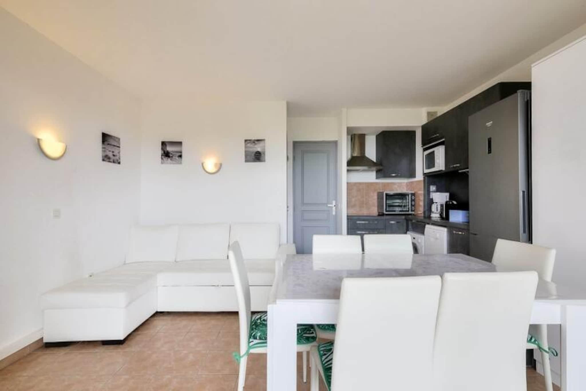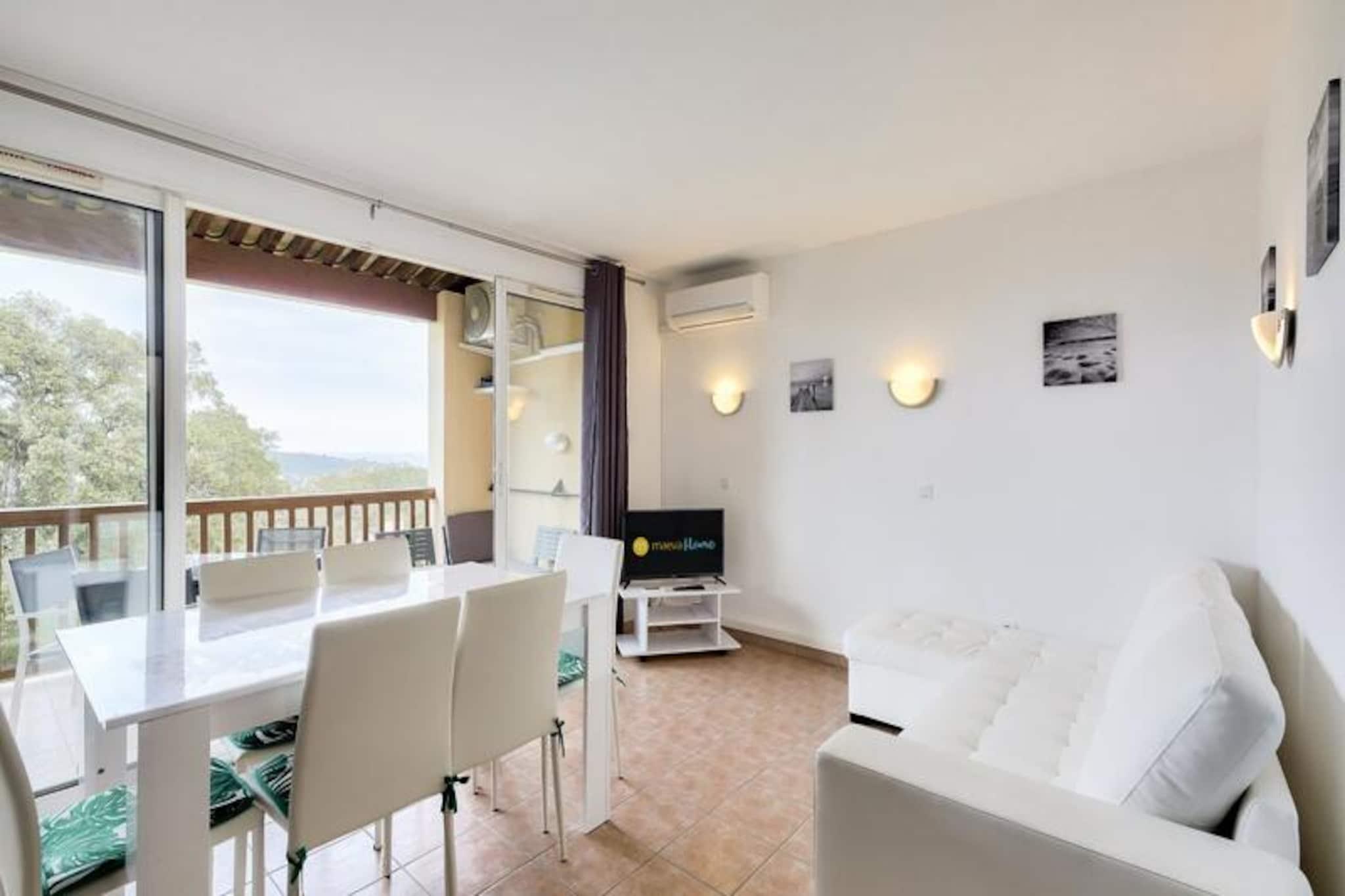 This bright 37 m² apartment is perfect for up to 4 people, featuring 2 bedrooms, including a double bed and a bunk bed. The spacious living room offers a sofa bed, and the apartment includes 2 bathrooms and a separate toilet. Pets are allowed; however, please inquire for pricing. Enjoy the beautiful south-facing terrace with sea views and the convenience of free outdoor parking (subject to availability). Bed linens and towels are available for an additional cost. Located between Saint-Raphael and Saint-Tropez, the property is just a few kilometers from the beaches of Sainte Maxime and Issambres, accessible by a scenic 4km walking path. The area offers various outdoor activities, including sailing, water skiing, and kayaking. You can explore nearby towns like Fr?jus, Saint Raphael, and Sainte Maxime, or enjoy the local sports offerings such as tennis, golf, and quad biking. A shared swimming pool is available from May to September. The apartment features a fully equipped American-style kitchen with seating, ideal for preparing meals. The two bathrooms include a bathtub and a shower, providing plenty of convenience for guests. Enjoy modern amenities like an electric hair dryer, free power outlets, and a TV, along with additional services such as Wi-Fi (subject to availability) and end-of-stay cleaning.