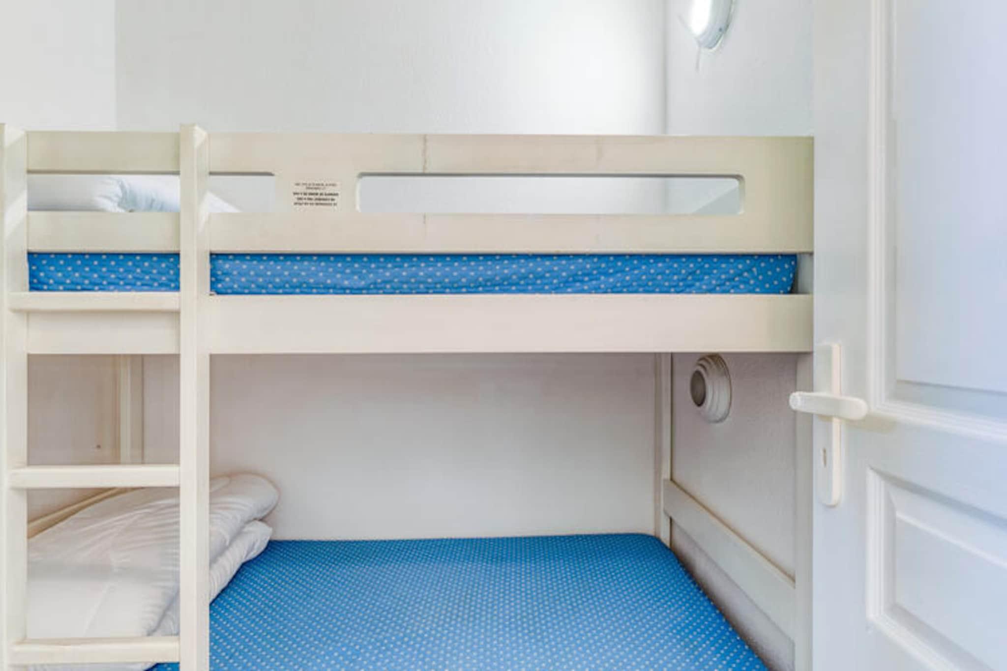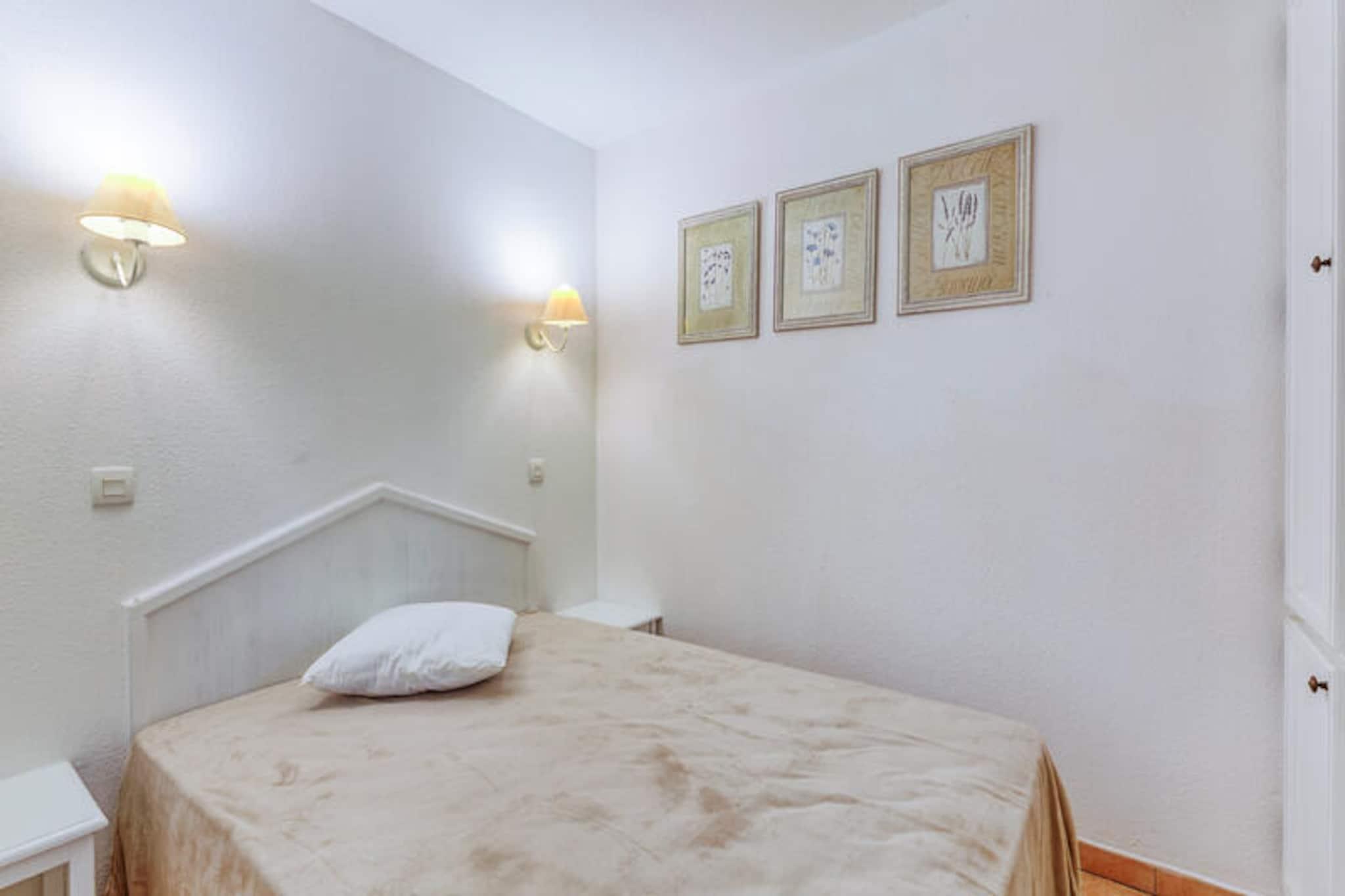 This charming holiday home comfortably accommodates up to six guests. It features a bedroom with a double bed, a cabin area with bunk beds, and a living room with a sofa bed and trundle bed. There are two bathrooms, one with a bathtub and the other with a shower. The property is pet-friendly, allowing pets for an additional fee. Enjoy the tranquility of the south-facing terrace and garden with a beautiful sea view, making it an ideal spot to relax after a day of adventure. Located between Saint-Raphaël and Saint-Tropez, the property is just a few kilometers from the beaches of Sainte Maxime and Issambres, accessible via a scenic walking path. Visitors can enjoy nearby attractions such as Fréjus, Saint-Raphaël, and Sainte-Maxime. The area offers various activities like sailing, water skiing, diving, and kayaking, as well as hiking trails, tennis, and golf, providing something for everyone. Local cafes, markets, and shops are within a short distance, offering a taste of the Mediterranean lifestyle. The holiday home is equipped with all the essentials for a comfortable stay. It includes a well-equipped kitchen, a spacious living and dining area, and modern amenities such as a TV. Additional services like bed linen, towels, and end-of-stay cleaning are available for an extra charge. Guests can also enjoy access to the outdoor swimming pool (seasonal) and free outdoor parking, subject to availability.