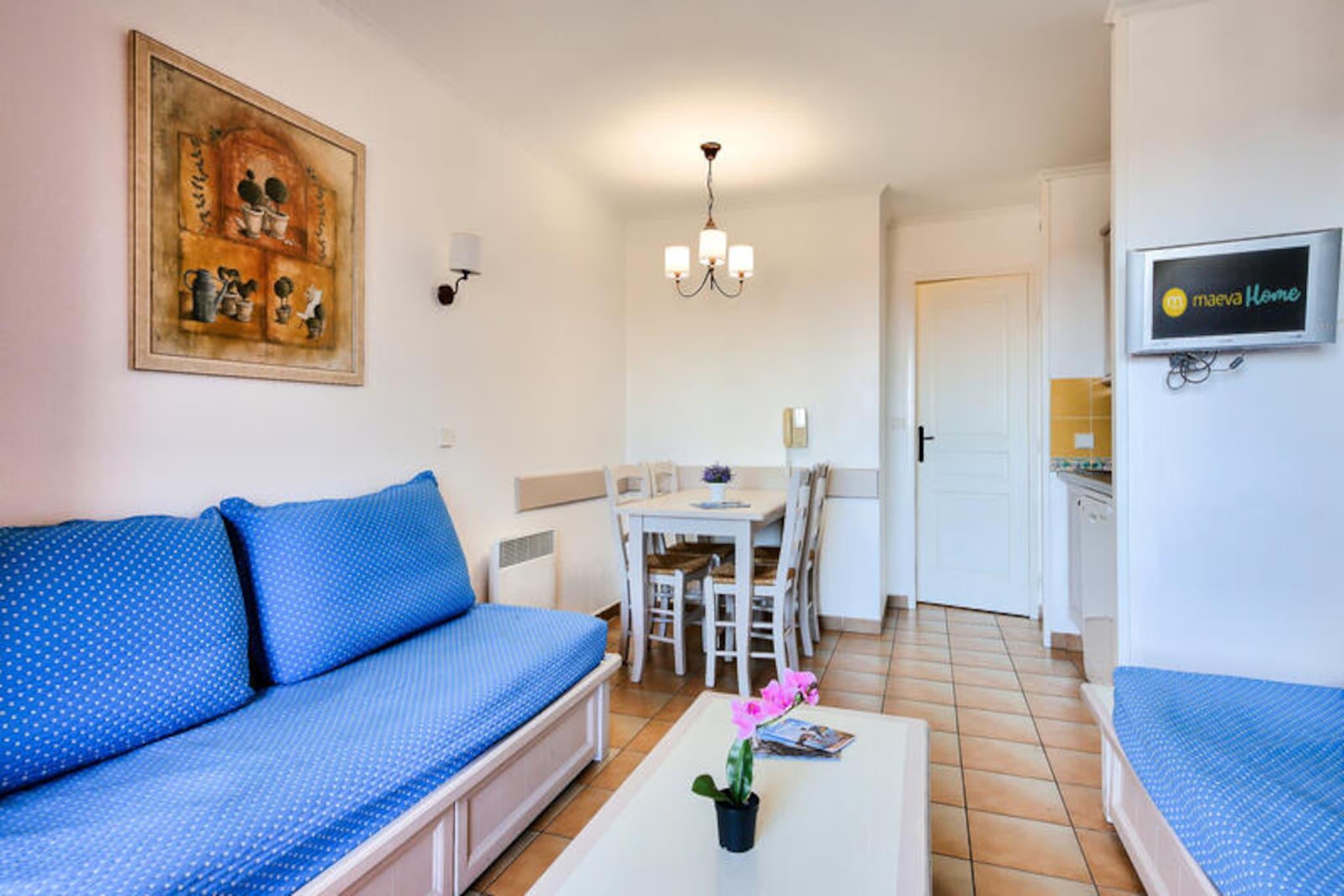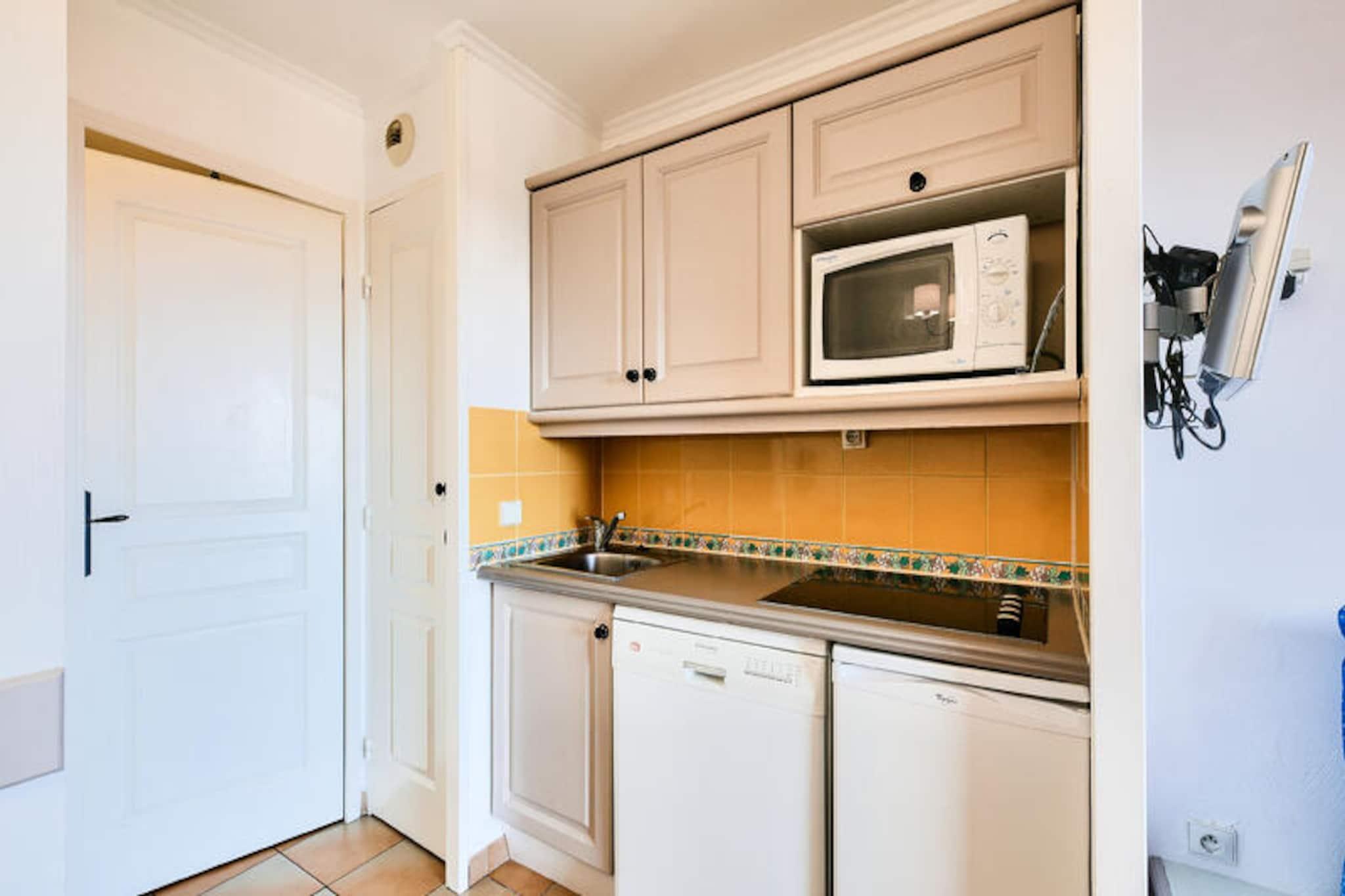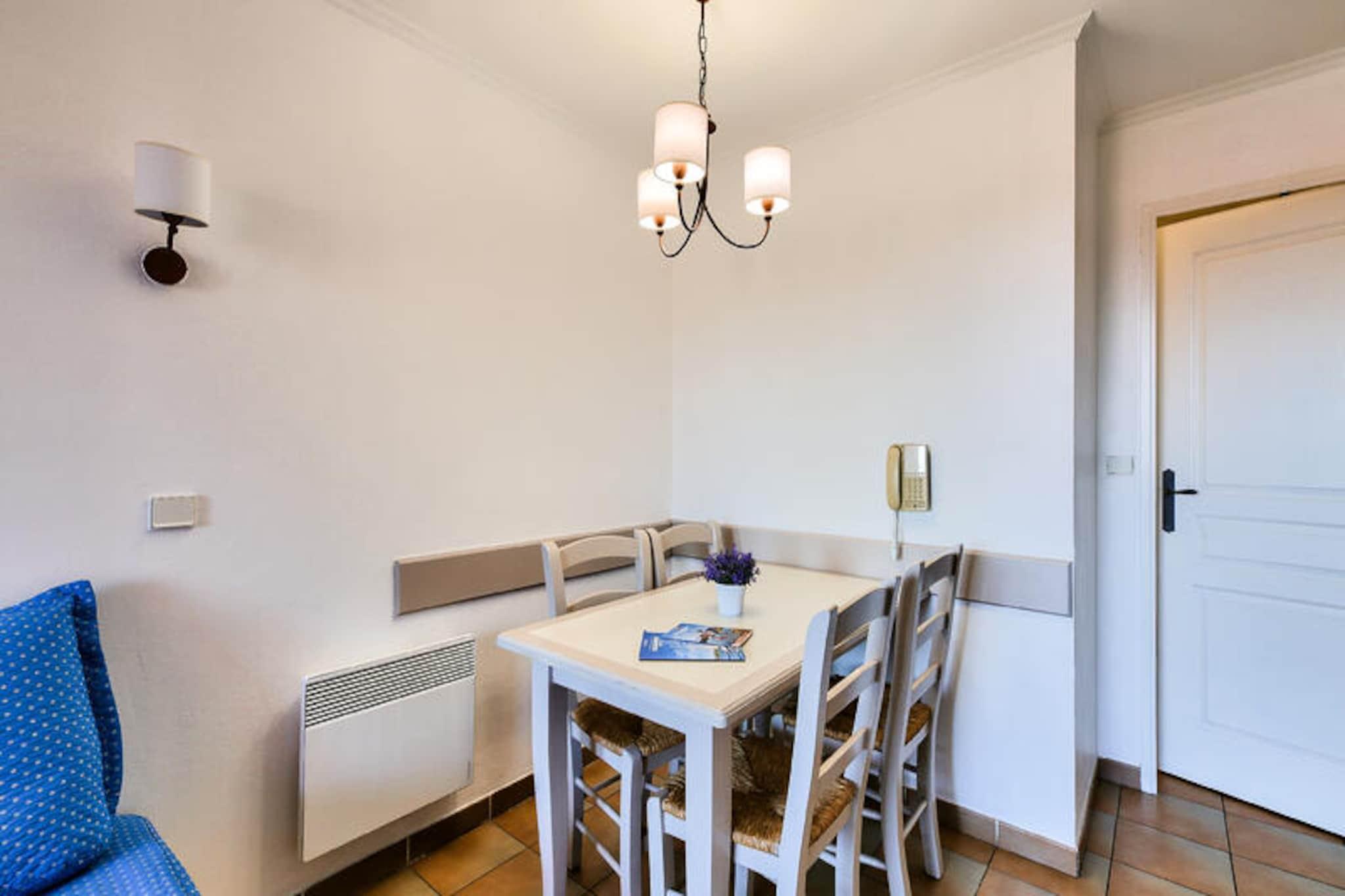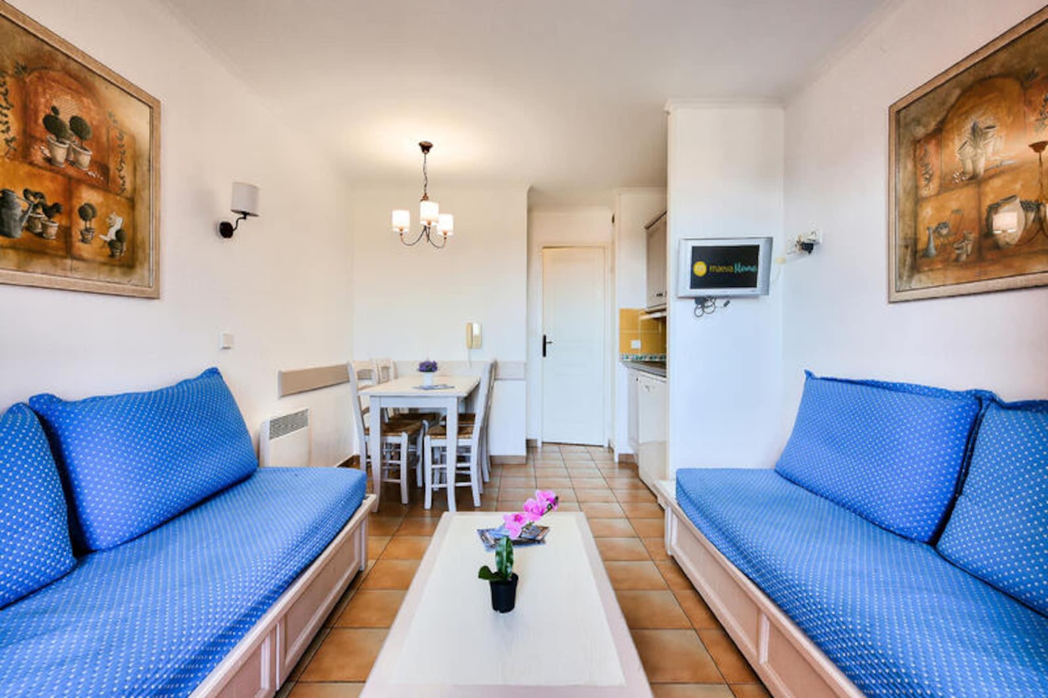 Located between the marina and the old village of Les Issambres, this vacation rental offers a peaceful retreat with breathtaking views of the Mediterranean Sea. The residence, nestled in a garden full of southern plants, features buildings of 3 or 4 stories, providing a charming and relaxing atmosphere. The beach is just 100 meters away, with direct access to the sea, while the Thalasso center at the nearby Premium Les Calanques des Issambres residence offers pampering services. On-site, you can enjoy a beautiful unheated outdoor swimming pool with a paddling pool and lounge on deckchairs in the sun. The apartment itself offers 30m² of well-designed space, located on the second floor. It includes a living room with a sofa bed, a kitchen with an American-style dining area, one bedroom with a double bed, and a bathroom with a bathtub. The apartment also features a balcony with a sea view, facing south-east, providing the perfect spot to relax. Parking is available for your convenience, and the residence’s prime location ensures you are close to the village center and a variety of local activities, including diving, tennis, sailing, and golf. Additional services include bed linen, a maintenance kit, and access to Wi-Fi for a fee. Pets are allowed upon inquiry, and a baby kit is available on request. Final cleaning is required and can be arranged upon check-in. With its prime location and well-equipped apartment, this residence is the perfect spot for a relaxing vacation by the sea.