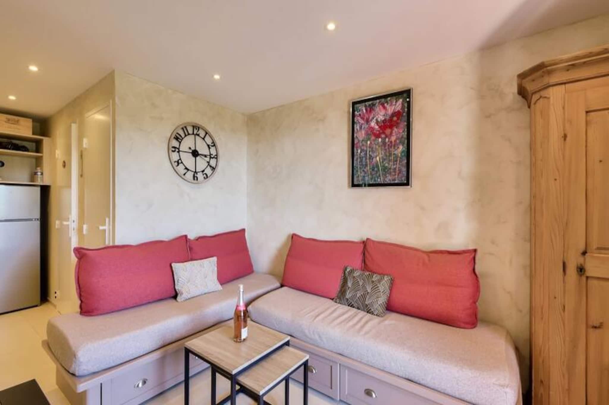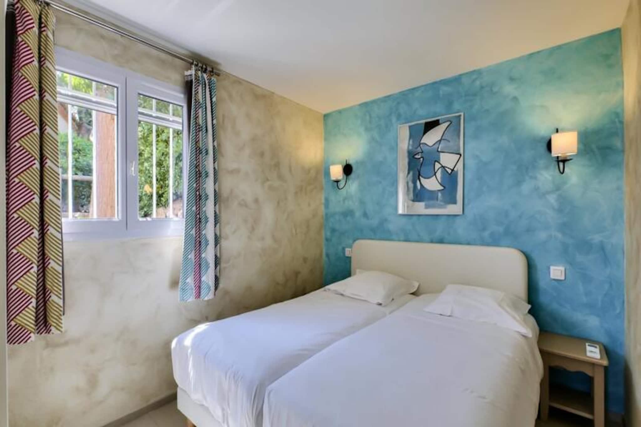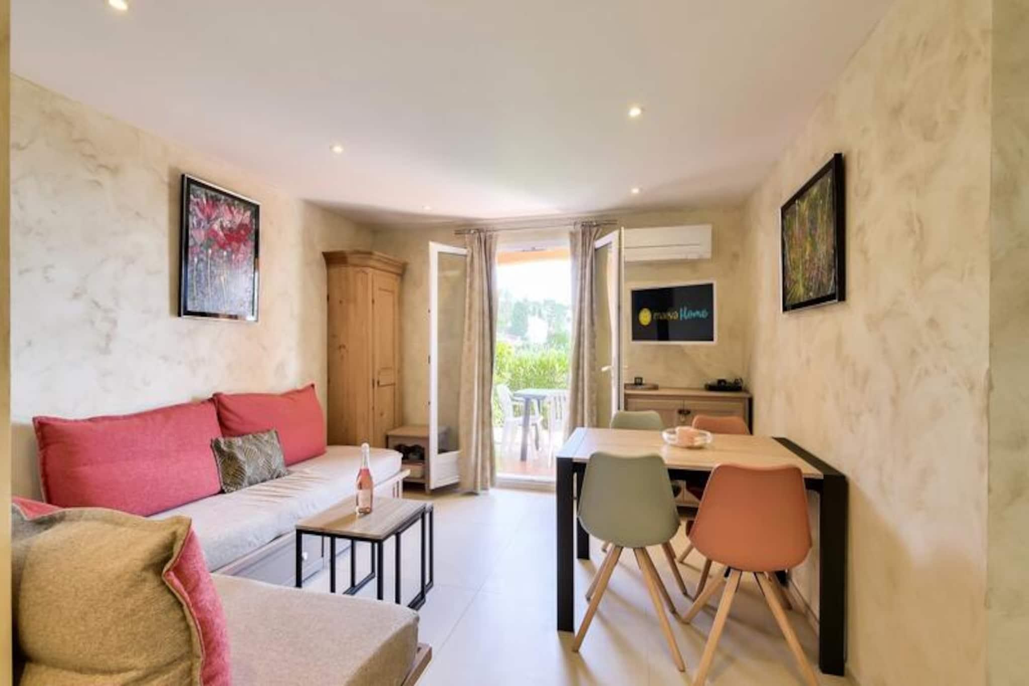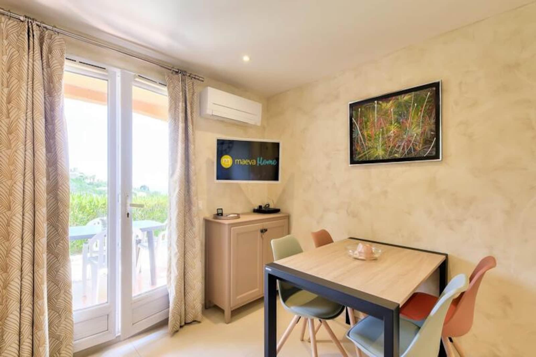This elegant holiday apartment in Les Issambres offers breathtaking panoramic views of the Gulf of Saint-Tropez and its serene hills. Located within a quiet residence, it features two tastefully decorated bedrooms, a cozy living room with two sofa beds, a renovated kitchen, and a private balcony. Guests can enjoy the 330 m² balustraded swimming pool (open June-September) and a dedicated parking spot. Air conditioning is available in every room for your comfort, and pets are welcome with prior arrangement. Perfectly situated, this property is only 5 km from pristine beaches and just 10 km from the vibrant town of Sainte-Maxime. The location also provides easy access to other iconic Côte d'Azur destinations, making it an ideal base for exploring nearby seaside resorts. Guests can savor regional flavors at local cafes, restaurants, and markets, which are within a short drive. The apartment comes fully equipped with a modern kitchen, including all necessary appliances for self-catering, and a sleek bathroom with a shower. Fresh linens, towels, and essential amenities are available as part of additional services. Beds are made on arrival, and end-of-stay cleaning ensures a hassle-free vacation. The balcony's stunning views of the sea provide the perfect setting to unwind.