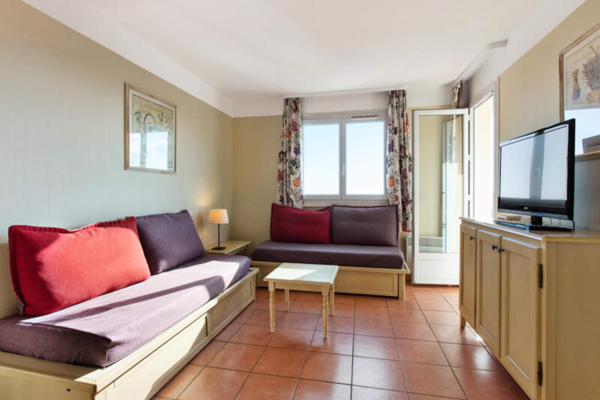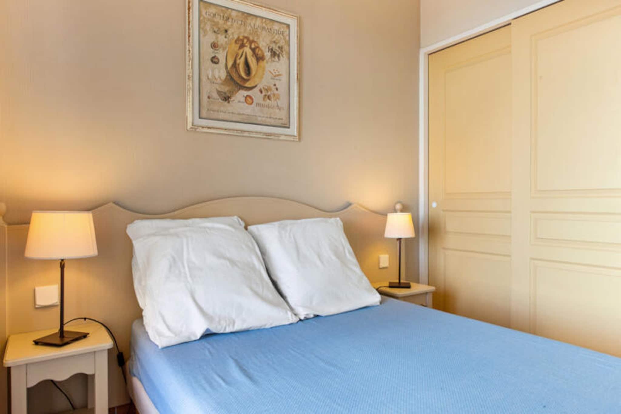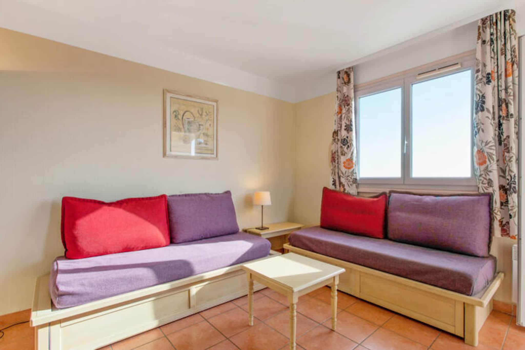 This comfortable apartment is located in the peaceful Lauriers district of Les Issambres, offering a great base for your stay in the South of France. The apartment is ideal for families, with a living room featuring two single sofa beds and a trundle bed, as well as a separate bedroom with a double bed. The space is bright, quiet, and not overlooked, with a lovely view of the Gulf of Saint-Tropez. Pets are allowed with an additional charge. Guests also enjoy access to an unsupervised swimming pool and paddling pool from May to September. The apartment is perfectly situated for exploring the local area. Just 3 km away, you’ll find beautiful beaches like Plage de la Gaillarde, where you can relax in the sun, or San Peïre Beach, ideal for families. For nature lovers, nearby hiking trails like the Sentoral du Littoral offer stunning sea views, while the Massif des Maures provides scenic routes through wooded hills. The Gulf of Saint-Tropez and other local attractions are also easily accessible. Inside, the apartment is fully equipped with a kitchen open to the living room, a bathroom with both a bathtub and shower, and a separate toilet. The balcony, with a table and chairs, provides a relaxing space to enjoy the beautiful sea view. Additional amenities include optional Wi-Fi, parking, bed linens, towels, and end-of-stay cleaning for an extra charge.