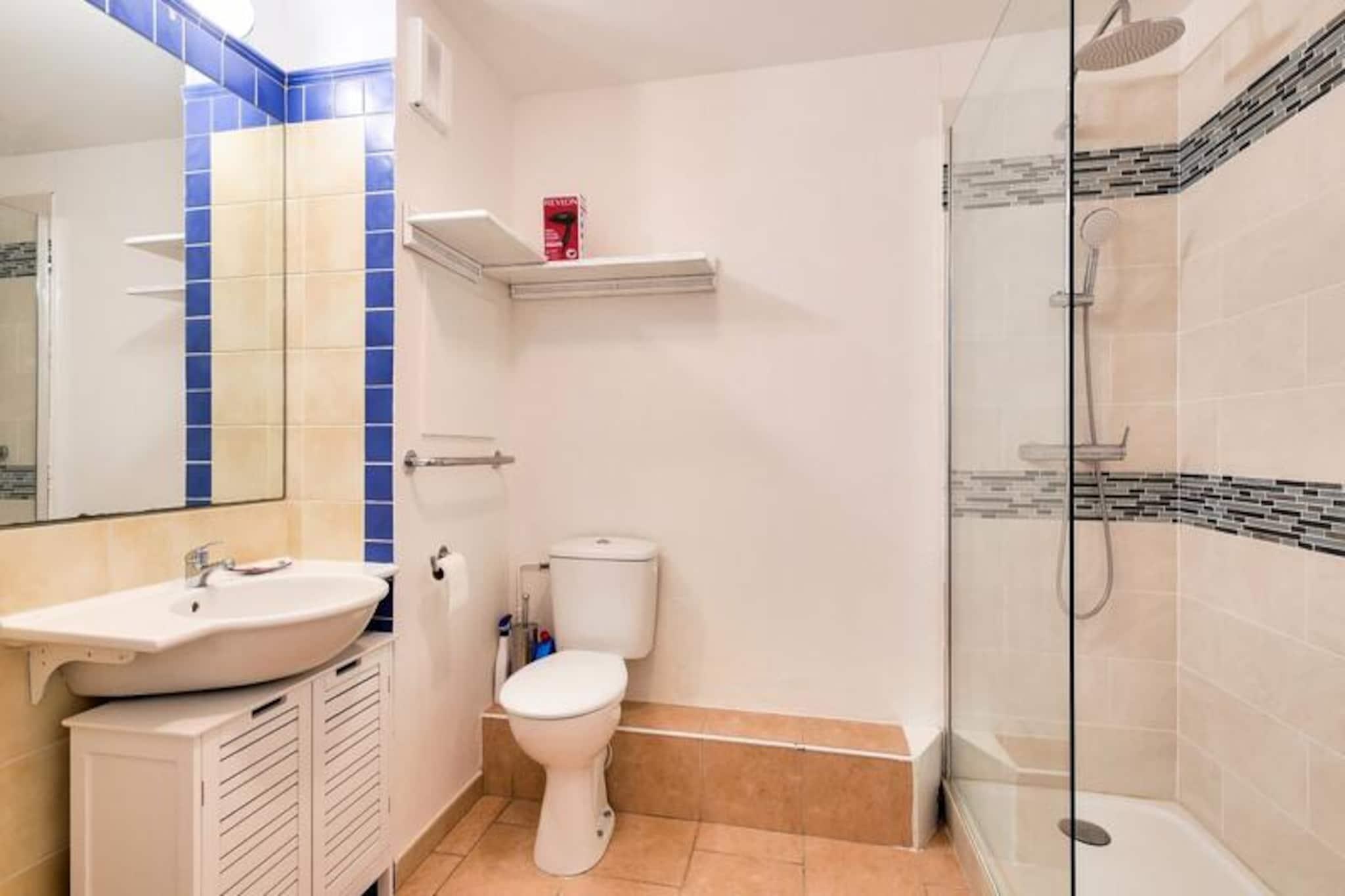 This one-bedroom apartment is ideally located in the heart of Les Issambres, just 100 meters from the beach and the shops. The residence boasts a 300sqm saltwater swimming pool (open April-October), a children's play area, and on-site Thalgo® thalassotherapy treatments (additional charge). Pets are allowed, but inquire with the residence for fees. The apartment itself is situated on the second floor and offers a south-facing terrace with a sea view. It features a living room with a sofa bed that sleeps two, a kitchen with a dining table for four, a bedroom with a double bed, a bathroom with a shower, and a private parking space. Optional services include bed linen, towels, and final cleaning. The apartment does not include a television. A deposit of EURO500 is required.