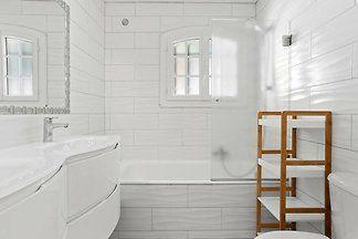 Inside the house, you will find a comfortable living space equipped with amenities such as air conditioning in the living room, fans in the bedrooms, a tumble dryer and washing machine for your exclusive use and a fireplace for cosy evenings. The bedrooms are designed so that each room offers a view of the sea, while high-quality beds and mattresses ensure you get a good night's sleep every night. For added comfort, rooms can be darkened to guarantee a restful night's sleep.