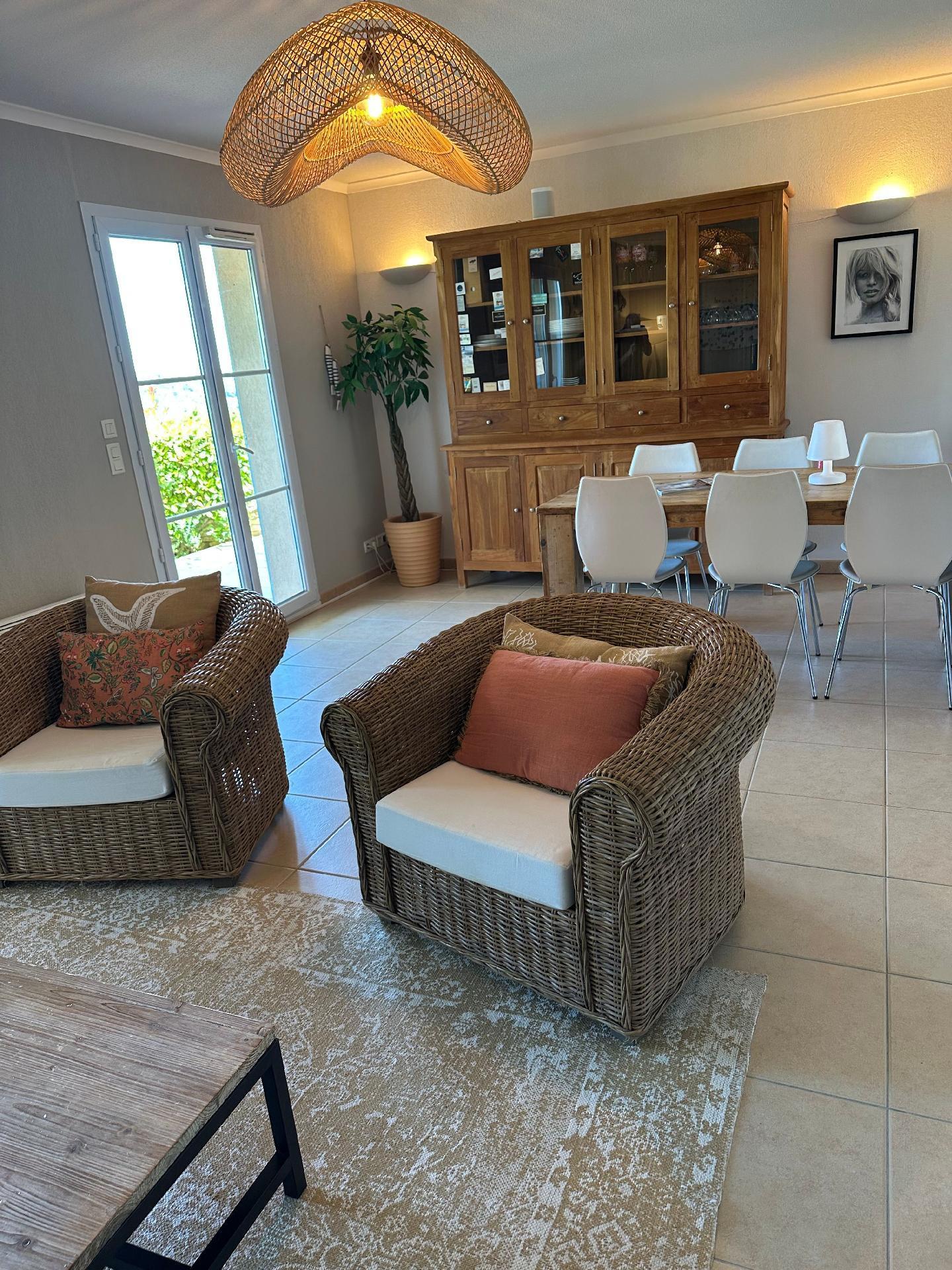 The villa is a luxurious modern holiday home in a small private domaine on the Cote D' Azur with its own garden and terrace overlooking the sea. All modern comfort is available : modern kitchen, washing machine, sat tv, wifi, streaming radio, bbq, 2 bathrooms, 3 bedrooms, 2 toilets The villa is located 1,5 km. from the beach , 3 minutes by car, restaurants and shops 5 minutes away. Ste Maxime is at short distance, where many activities take place in the summer months Nearby you can make beautiful walks in the Massif des Maures, a large nature reserve. Of course there are many possibilities for water sports. From the port there is a regular boat connection to St Tropez. Les Issambres is also a good base for the surrounding cities, such as Frejus, Cannes, Nice and Monaco. A little further away is Aix en Provence , well worth a visit , making Villa Les Coralines an ideal summer and winter holiday home . The resort of Les Issambres has a long coastline with many sandy beaches . There are beaches where you can stay for free and there are beaches where you can use a place with deckchair and parasol for a fee.