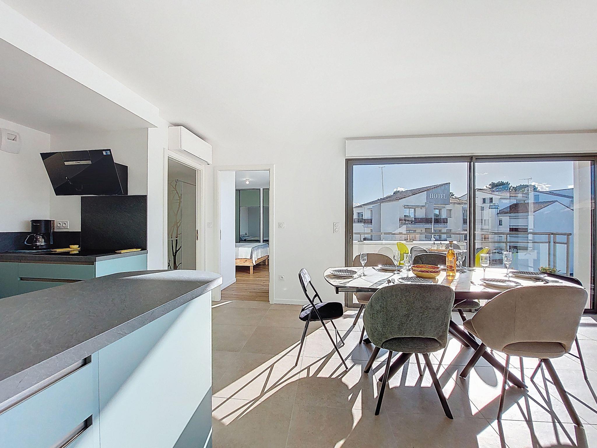 La Palmyre: Residence "Veleda", built in 2025. In a central, busy position, 800 m from the sea, 800 m from the beach. In the complex: lift, storage room for bicycles. Shop, grocery 100 m, restaurant 30 m, bar 70 m, bakery 25 m, café 20 m, bus stop "Arrêt office de tourisme" 300 m, railway station "Royan" 19 km, sandy beach "Plage de La Palmyre" 800 m. Sports harbour 800 m, golf course (9 hole) 2.5 km, surf school 800 m, riding stable 2 km. Nearby attractions: Zoo de La Palmyre 1.1 km, Hippodrome - La Palmyre 900 m, Port La Tremblade - Boyard / Ile d'Aix 11 km, Luna Park (Juillet - Août) 4.5 km, Zagal Cabaret - La Palmyre 1.1 km, Golf Resort La Palmyre 2.5 km. The owner does not accept any youth groups. The keys‘ handover takes place by the agency Interhome in La Palmyre. Neighbourhood highly sensitive to noise. Quietness and good behaviour expected.