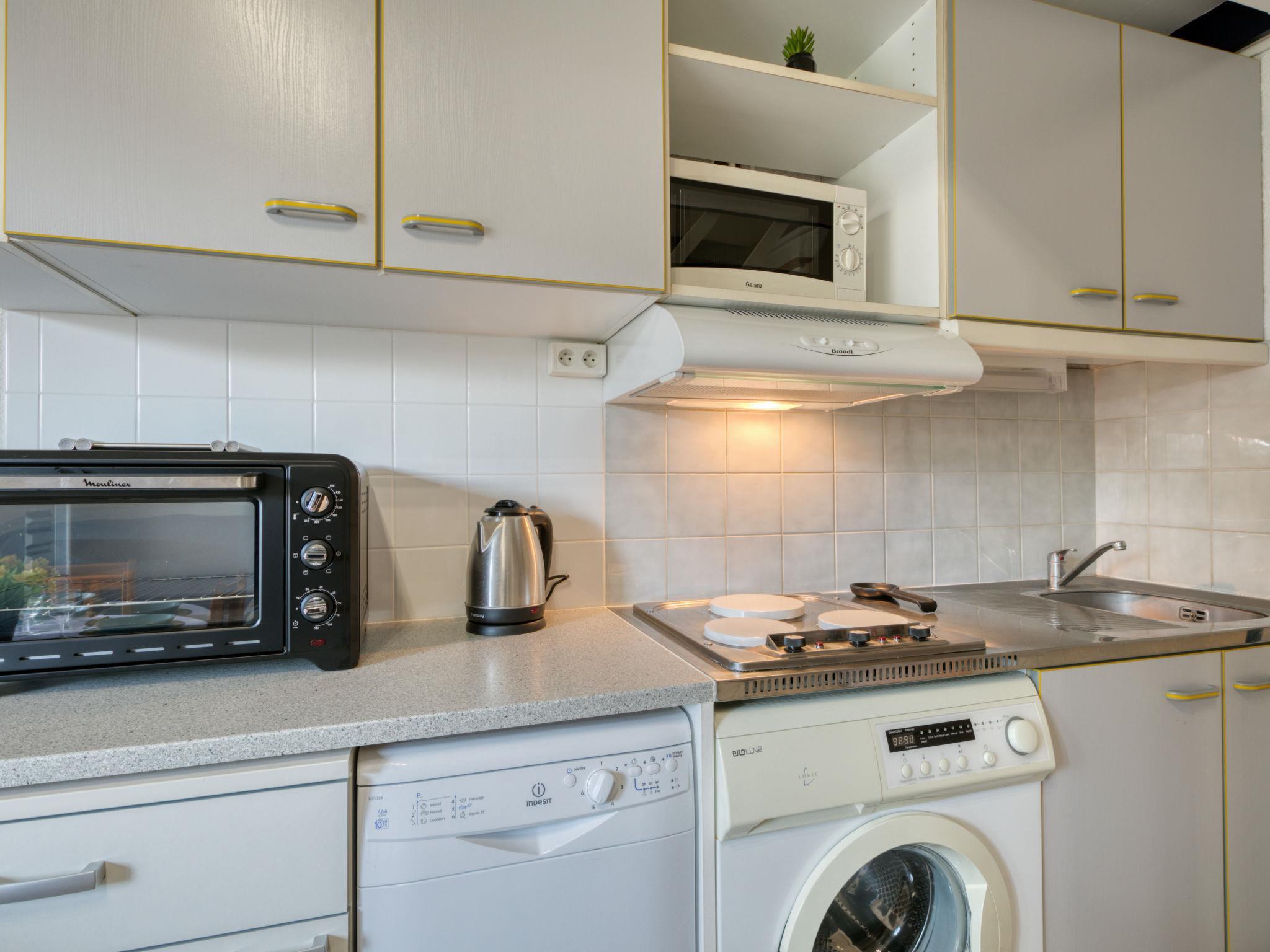 3-room terraced house 37 m2 on 2 levels. Living room with TV (flat screen). Exit to the terrace. 1 room with 1 x 2 bunk beds (80 cm, length 190 cm). Kitchenette (3 hot plates, dishwasher, toaster, kettle, microwave, freezer, electric coffee machine). Shower, sep. WC. Electric heating. Upper floor: gallery with 1 sofabed (140 cm, length 190 cm). 1 room with sloping ceilings with 1 french bed (1 x 140 cm, length 190 cm). Large terrace 25 m2, west facing position. Terrace furniture, electric barbecue. Facilities: washing machine, hair dryer. Internet (WiFi, free). Parking space n 175. Please note: 1 small pet/ dog allowed. Smoke alarm. Offer by a private individual according to Art. 155, IV of CGI.