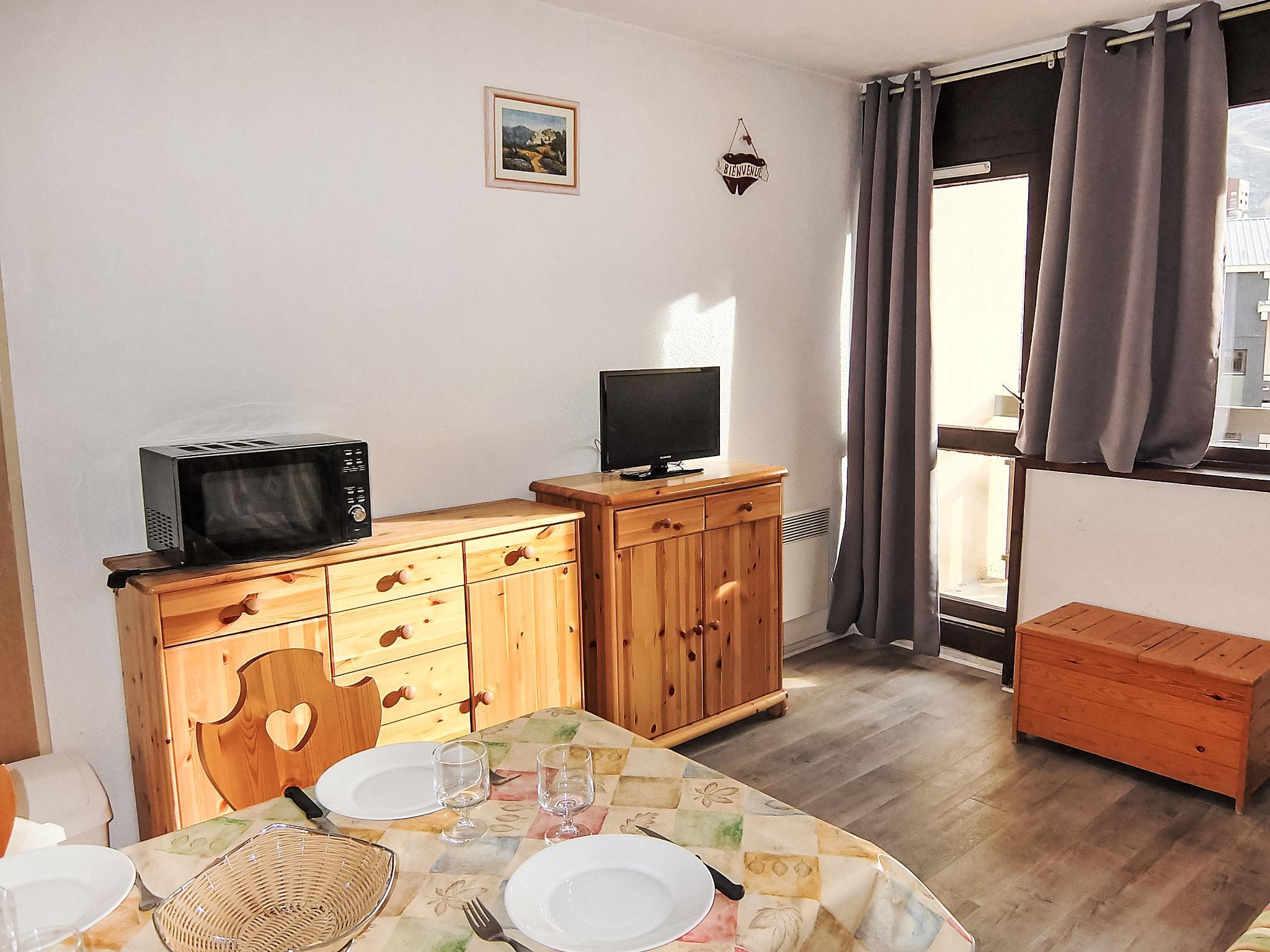 "Asters 804 Bâtiment C5", 1-room apartment 24 m2 on 3rd floor. Living/dining room with 1 double sofabed (160 cm, length 190 cm), TV (flat screen). Sleeping alcove with 1 x 2 bunk beds (70 cm, length 190 cm). Kitchenette (2 hot plates, kettle, microwave, electric coffee machine). Bath/WC. Electric heating. Balcony, south facing position. Facilities: Internet (WiFi, extra). Please note: maximum 1 pet/ dog allowed. Smoke alarm. Building C5. Apartment is on entrance level. Instead of an enclosed bedroom, some sleeping areas are located in an open-plan area (gallery, alcove, etc.). 73257007961WF