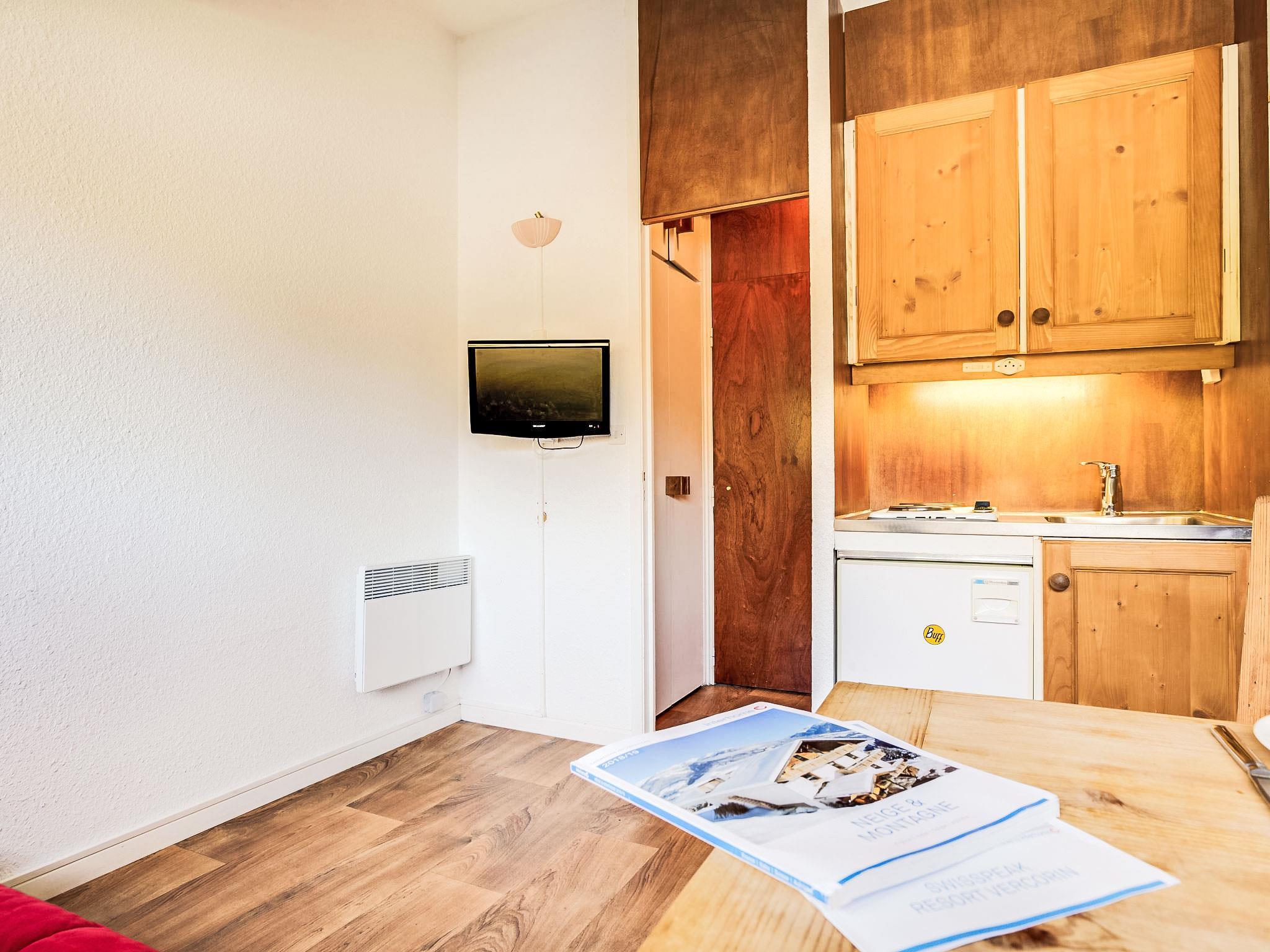 "Brelins Les Combes 942", 1-room studio 15 m2 on 9th floor, north facing position. Beautiful furnishings: living/dining room with 1 double sofabed (140 cm, length 190 cm), TV (flat screen). Kitchenette (2 hot plates, microwave). Bath/WC. Electric heating. Facilities: Internet (WiFi, extra). Please note: smoke alarm. 73257006324AK