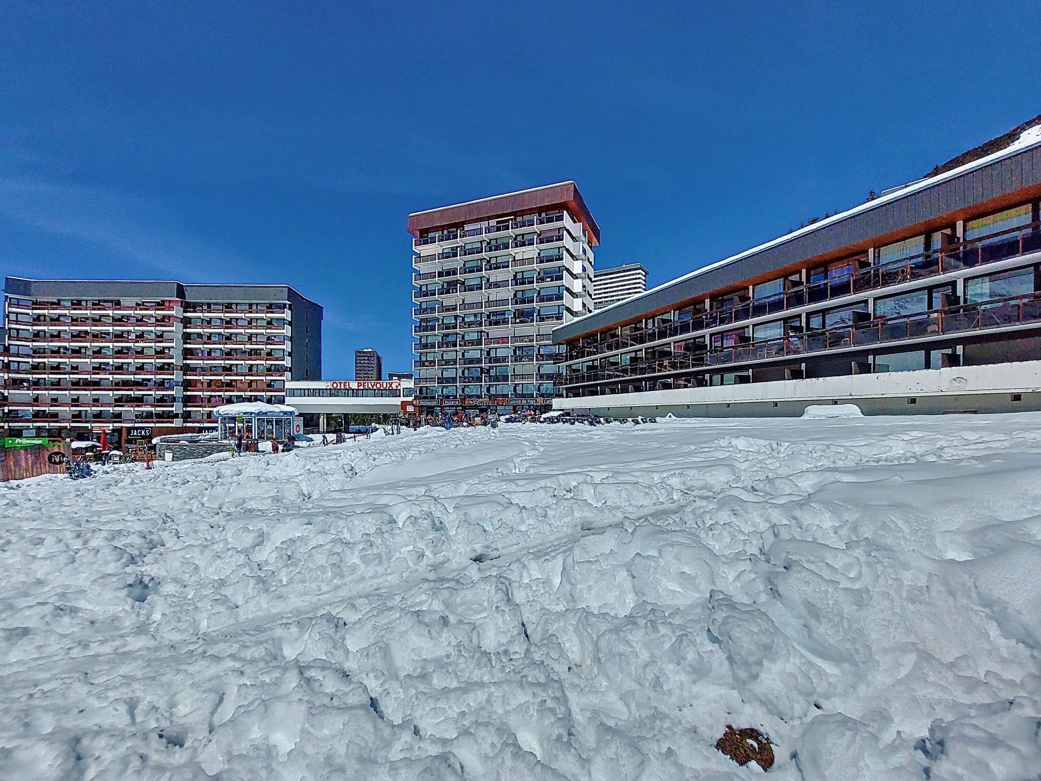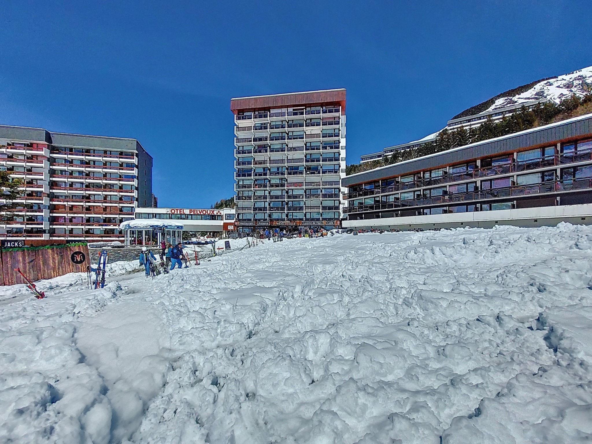 Apartment block "Pelvoux", 10 storeys. In the centre of La Croisette, directly by the skiing area. In the house: lift, storage room for skis, central heating system. Public parking 20 m. Supermarket, shopping centre, restaurant 50 m, bus stop "Gare routière Les Menuires" 100 m. Sports centre 100 m, skisport facilities, slopes 20 m, ski rental 20 m, ski school 50 m. Well-known ski regions can easily be reached: 3 Vallées. Please note: lift to 9th floor. The photograph shows a typical example. Additional accommodations can be booked.