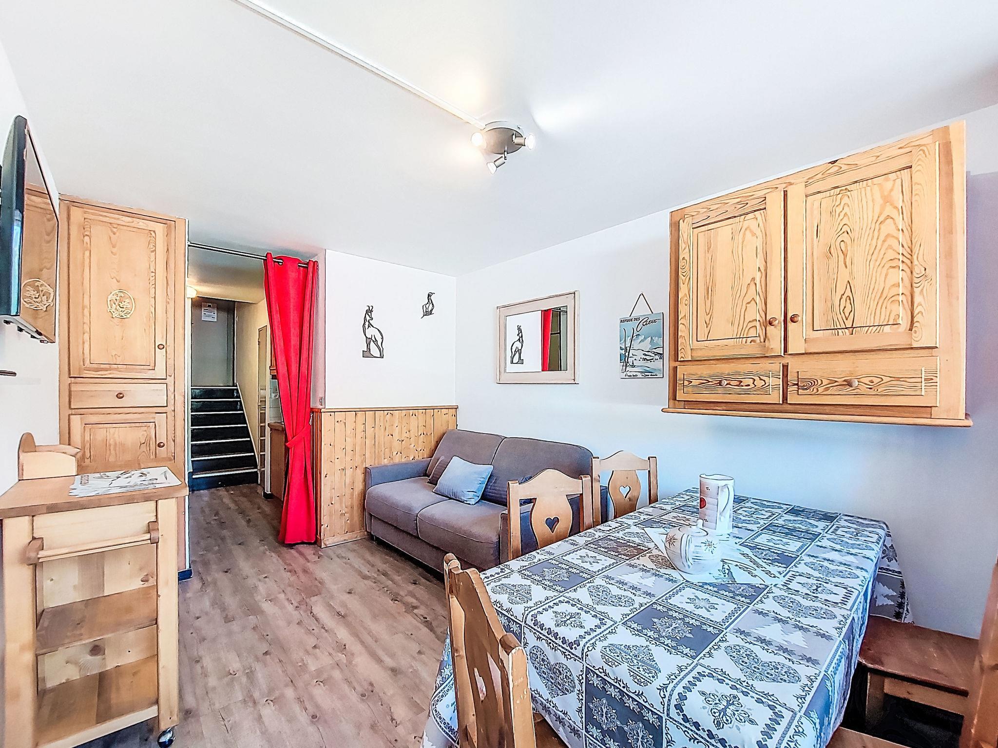 "Les Lauzes C19", 2-room apartment 33 m2 on 2 levels on 2nd floor. 1 room with 1 bed (80 cm, length 190 cm), 1 x 2 bunk beds (80 cm, length 190 cm). Shower. On the lower ground floor: living/dining room with 1 double sofabed (160 cm, length 190 cm), TV (flat screen). Exit to the balcony, west facing position. Kitchenette (4 hot plates, dishwasher, kettle, microwave, electric coffee machine, Capsules for coffee machine (Nespresso) extra, raclette grill). Sep. WC. Beautiful view of the mountains. Facilities: Internet (WiFi, extra). Please note: maximum 1 pet/ dog allowed. Smoke alarm. 73257002074SB