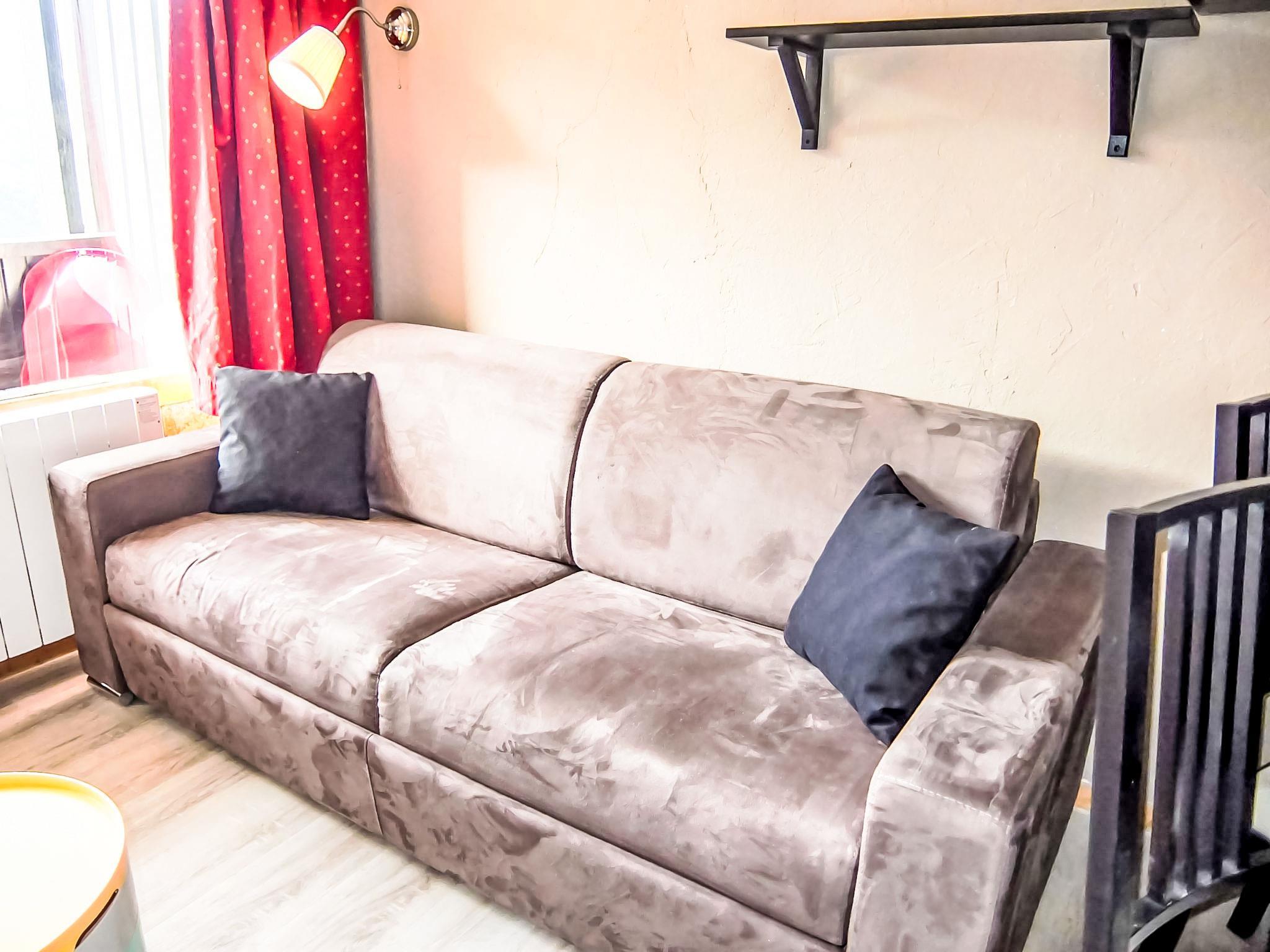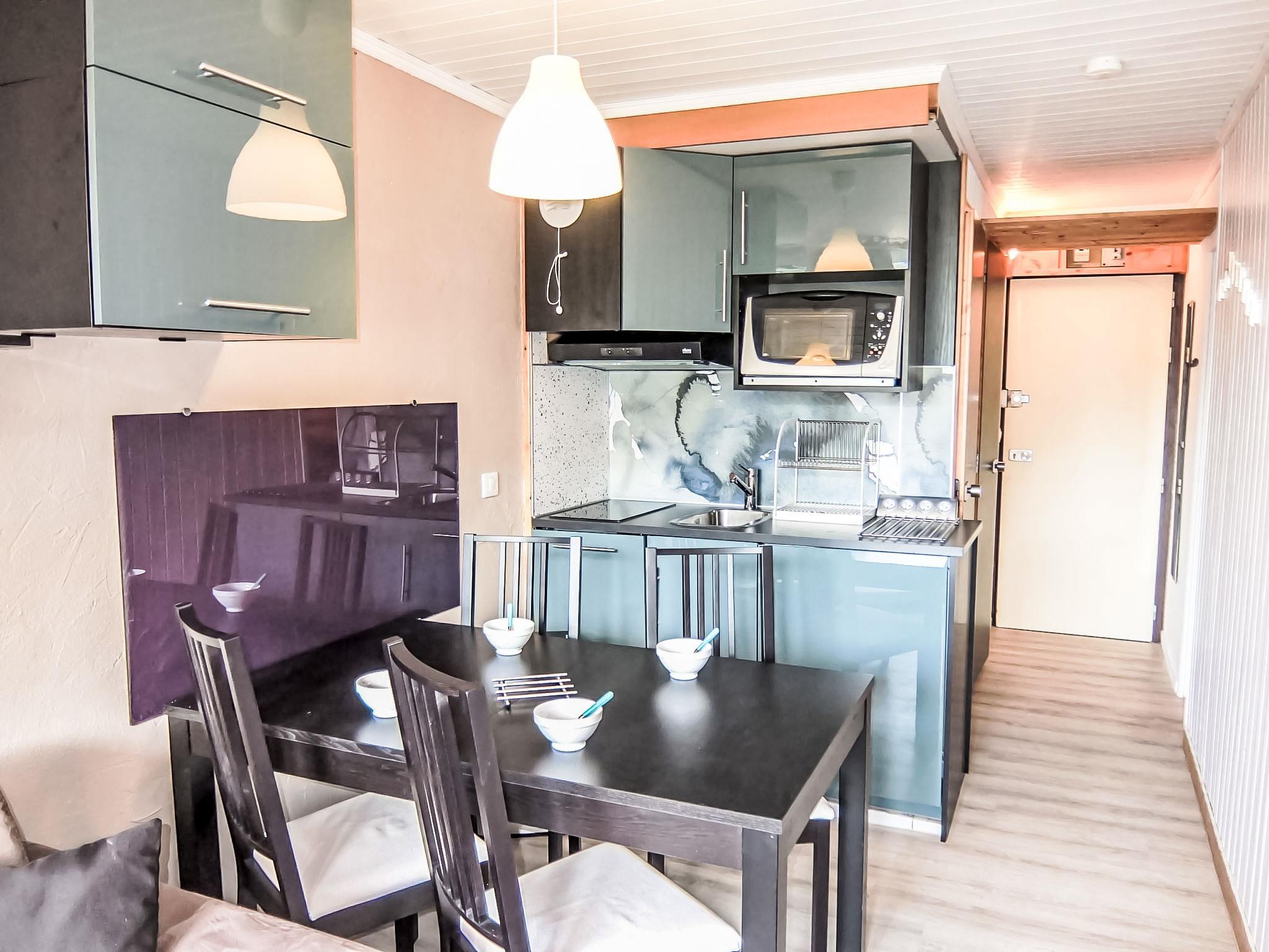 "Villaret 604", 1-room apartment 22 m2 on 6th floor. Renovated, beautiful furnishings: living/dining room with 1 double sofabed (160 cm, length 190 cm), TV (flat screen). Exit to the balcony. Sleeping alcove with Dressing room with 1 x 2 bunk beds (80 cm, length 190 cm). Kitchenette (dishwasher, 2 ceramic glass hob hotplates, toaster, kettle, electric coffee machine, combination microwave). Bathroom, sep. WC. Heating. Balcony, west facing position. Beautiful view of the mountains. Facilities: Internet (WiFi, extra). Please note: maximum 1 pet/ dog allowed. Smoke alarm. Instead of an enclosed bedroom, some sleeping areas are located in an open-plan area (gallery, alcove, etc.). 73257002305DP