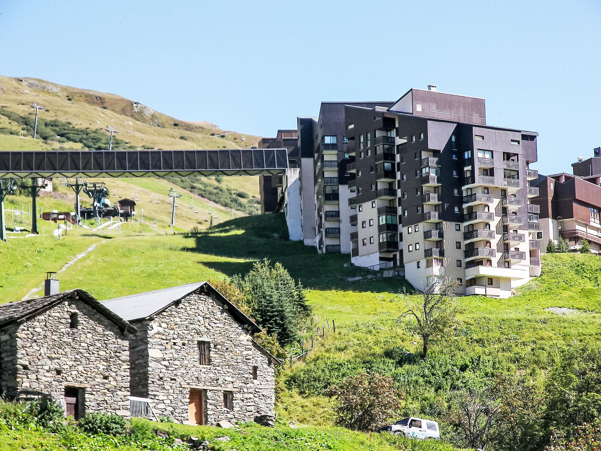 Residence "Ski Soleil 1", 6 storeys. In the district of Bruyères, in a central position, directly by the skiing area. In the complex: lift, storage room for skis. Public parking. Grocery, restaurant 10 m, bus stop "Les Bruyères" 300 m. Sports centre 50 m, skisport facilities 60 m, slopes 20 m, ski school 30 m, ski-kindergarten 20 m. Well-known ski regions can easily be reached: 3 Vallées.