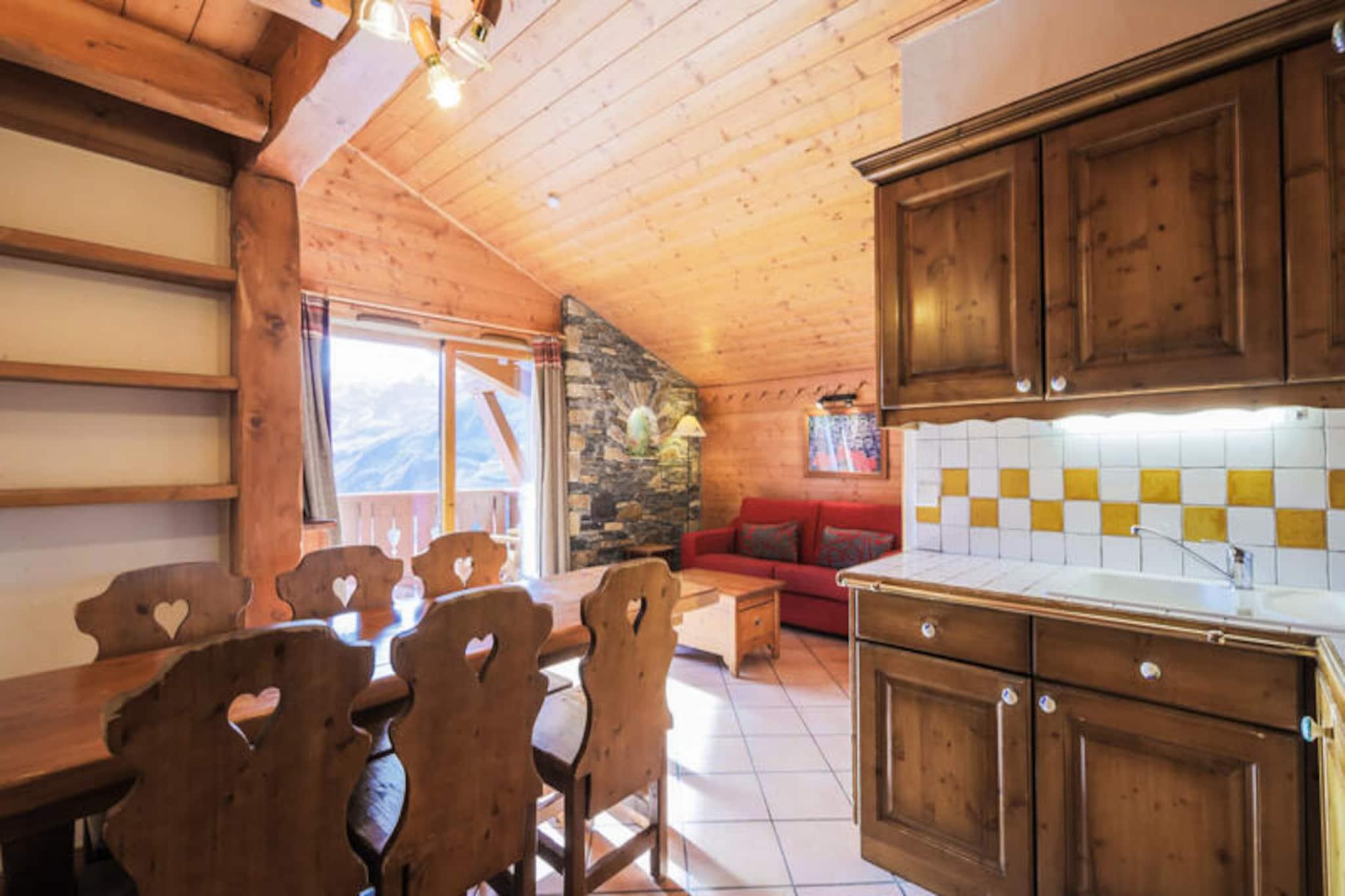 This charming holiday apartment in Les Menuires offers a warm and cozy atmosphere with a living area that includes a sofa bed and armchair, a mezzanine with two single beds, and two bedrooms: one with a double bed and the other with two single beds. The apartment also features two bathrooms, one with a shower and the other with a bathtub-shower, and a separate toilet. Pets are allowed for an additional fee, and baby kits are available upon request. A deposit of ?600 is required. Located in the heart of the 3 Vall?es area, this accommodation offers quick access to some of the best hiking spots and outdoor activities in the region. The property is just 1.5 km from shops, providing easy access to local cafes, markets, and restaurants. Families will enjoy nearby attractions like Walibi Gliss and the BK Park, while nature lovers can immerse themselves in the stunning landscapes and mountain views that surround the area. The apartment includes a fully equipped kitchen that opens into the living area, perfect for preparing meals. The property also provides access to a relaxation area with a heated swimming pool, sauna, and fitness room, all included with your stay. For an additional cost, you can indulge in treatments or massages at the Deep Nature Spa. Covered parking is available for an extra fee, and Wi-Fi access can be arranged, subject to availability.
