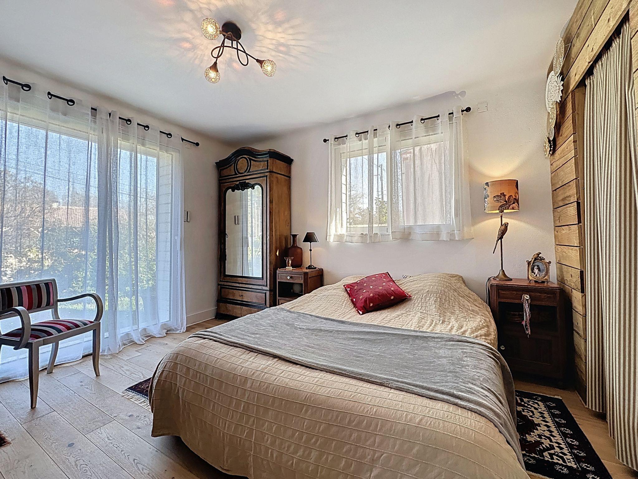 "Les Rainettes", 3-room house 80 m2 on 2 levels, south-west facing position. Living/dining room with open-hearth fireplace (only for decoration), TV (flat screen). Exit to the terrace, south facing position and west facing position. 1 room with 1 french bed (1 x 160 cm, length 200 cm). Large, open kitchen (oven, dishwasher, 3 induction hot plates, toaster, kettle, microwave, electric coffee machine). Shower, sep. WC. Upper floor: large office with sloping ceilings with 2 beds (80 cm, length 190 cm). 1 room with 1 french bed (1 x 140 cm, length 190 cm). Large terrace, south facing position and west facing position, large garden 600 m2, south facing position and west facing position. Terrace furniture, barbecue, deck chairs. Facilities: washing machine, iron, hair dryer. Internet (WiFi, free). Parking (fenced 2 cars). Please note: non-smoking house. Maximum 1 small pet/ dog allowed. Smoke alarm. Offer by a private individual according to Art. 155, IV of CGI.