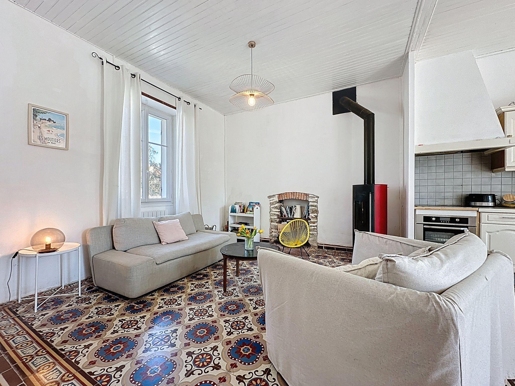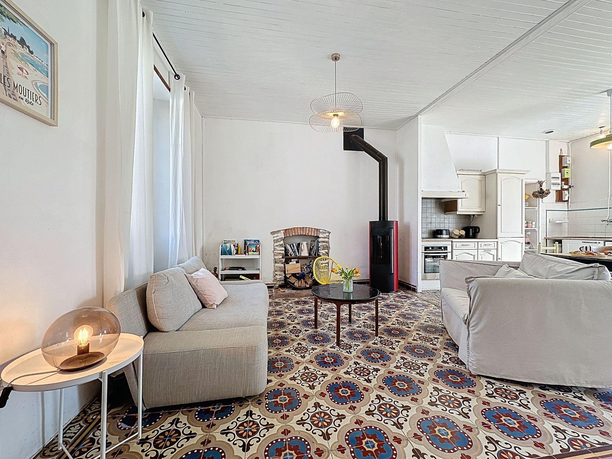 Single-family house "L'Ecluse". In a quiet position, 700 m from the sea, 700 m from the beach. Private: garden 280 m2 (fenced). Grocery 450 m, restaurant 350 m, bakery 450 m, 4 minute walk to the centre, bus stop "Bourg Les Moutiers" 350 m, railway station "Les Moutiers" 350 m, sandy beach "Pré-Vincent" 700 m, thermal baths "Thalasso Pornic" 12 km. Sports harbour 8 km, marina 16 km, golf course (18 hole) 14 km, riding stable 1 km. Nearby attractions: La Bernerie en Retz 4 km, Pornic 11 km, Planete Sauvage 25 km, Nantes 45 km, Ile de Noirmoutier 48 km. Well-known lakes can easily be reached: Lac de Saint Viaud 30 km.