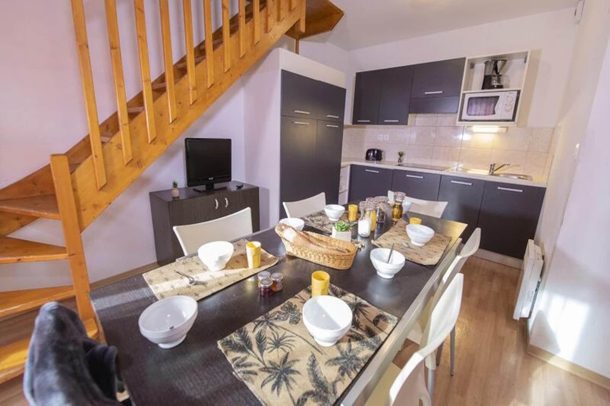 Imagine waking up to the crisp mountain air and stepping onto your balcony to take in the breathtaking views of the slopes at Les Orres. Nestled in the charming hamlet of Bois Méan, the Residence Les Terrasses du Soleil d'Or offers a perfect retreat for families and groups seeking an unforgettable alpine escape. With its ski-in, ski-out location, you’re just 50 meters from the Préclaux chairlift, making it effortless to access the expansive Les Orres ski area. For families with young children, the daycare center and Snow Garden are conveniently located right outside the ski room door, ensuring a stress-free start to your day on the slopes. This spacious 3-room duplex accommodates up to eight guests, featuring a cozy living room with a double sofa bed, a fully equipped kitchen, and a mezzanine with bunk beds. The two bedrooms provide flexible sleeping arrangements, while the balcony offers a serene spot to unwind after a day of adventure. Modern amenities such as a heated indoor pool with whirlpools and an outdoor terrace for sunbathing add a touch of luxury to your stay. Pets are welcome, and additional services like fresh bread delivery, linen kits, and end-of-stay cleaning ensure your comfort throughout your vacation. Beyond skiing, Les Orres offers a variety of activities for all seasons. In winter, explore marked snowshoeing trails, enjoy sledding on the snowfront, or take in a film at the local cinema. For the adventurous, try dog sledding, paragliding, or guided nature outings. Summer transforms the area into a haven for hikers and outdoor enthusiasts, with picturesque trails and family-friendly attractions like trampolines and merry-go-rounds. Whether you’re seeking thrilling alpine adventures or peaceful moments surrounded by nature, Residence Les Terrasses du Soleil d'Or is your gateway to an extraordinary mountain holiday. Book your stay today and create memories that will last a lifetime.