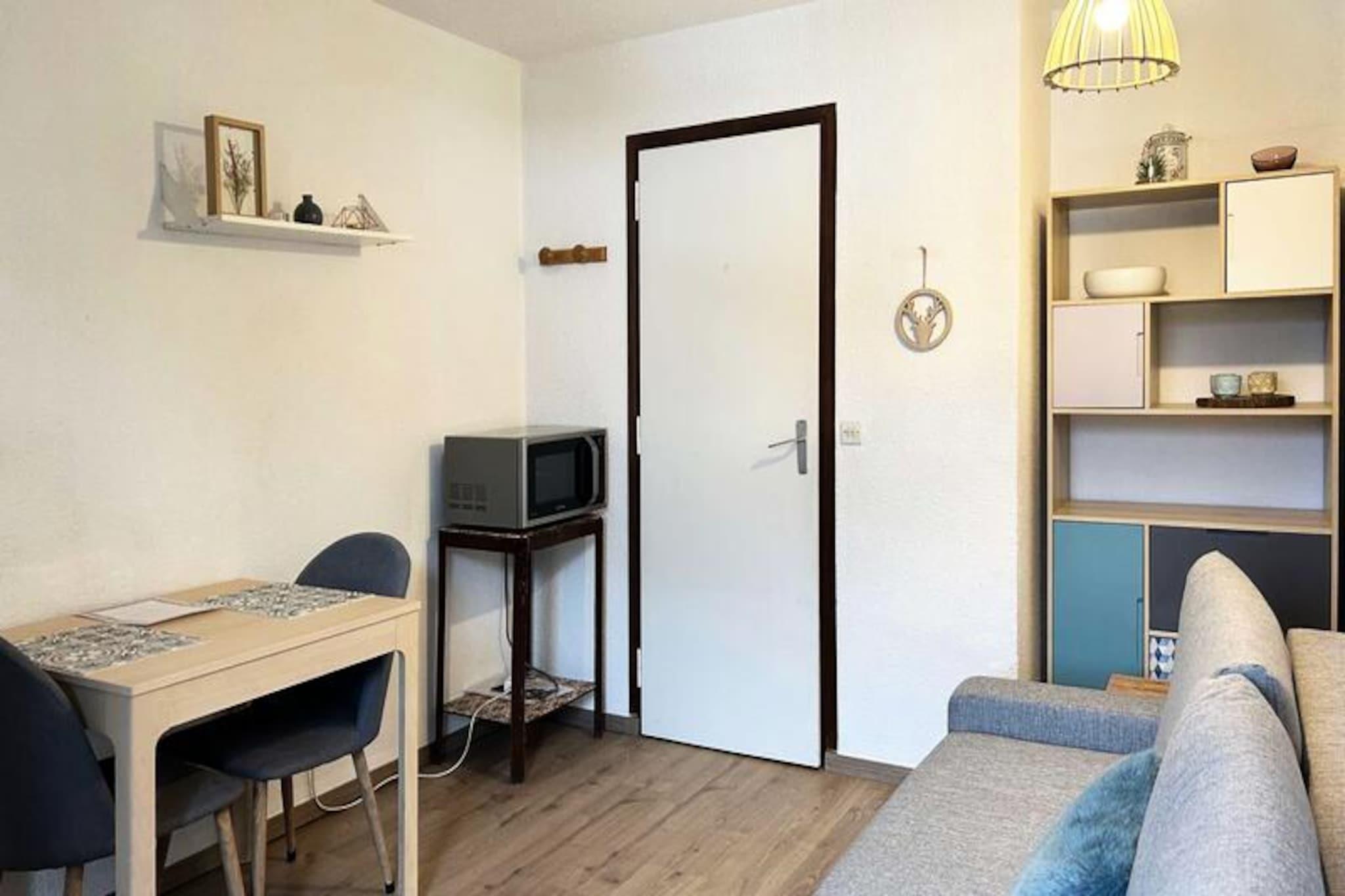 High above the bustling heart of the resort, this charming studio apartment offers a front-row seat to the alpine magic of Les Orres. Located on the fourth floor of the Les Gradins residence, it provides ski-in/ski-out convenience, making it a perfect choice for those eager to hit the slopes the moment they step outside. From the south-facing balcony, soak in unobstructed views of the surrounding peaks and the lively central square below, where the rhythm of mountain life unfolds. Designed to comfortably accommodate up to four guests, the apartment features a thoughtful layout. The entrance hall is equipped with two single bunk beds, while the living room offers a cozy double sofa bed, creating a welcoming retreat after a day of adventure. The kitchenette is fully equipped for preparing hearty meals, and the bathroom with a separate toilet ensures privacy and convenience. The residence also includes a ski locker, adding to the ease of your stay. Step outside, and you’ll find yourself in the very heart of the resort, with direct access to shops, restaurants, and après-ski entertainment. Whether you’re seeking a morning coffee, an evening meal, or a lively atmosphere, everything is just moments away. The central square is a hub of activity, perfect for soaking in the vibrant alpine culture. Whether you’re here to carve through pristine snow in winter or explore the lush mountain trails in summer, this studio is your gateway to unforgettable alpine adventures. Relax, recharge, and immerse yourself in the beauty of Les Orres, where every moment is a celebration of nature and mountain life.