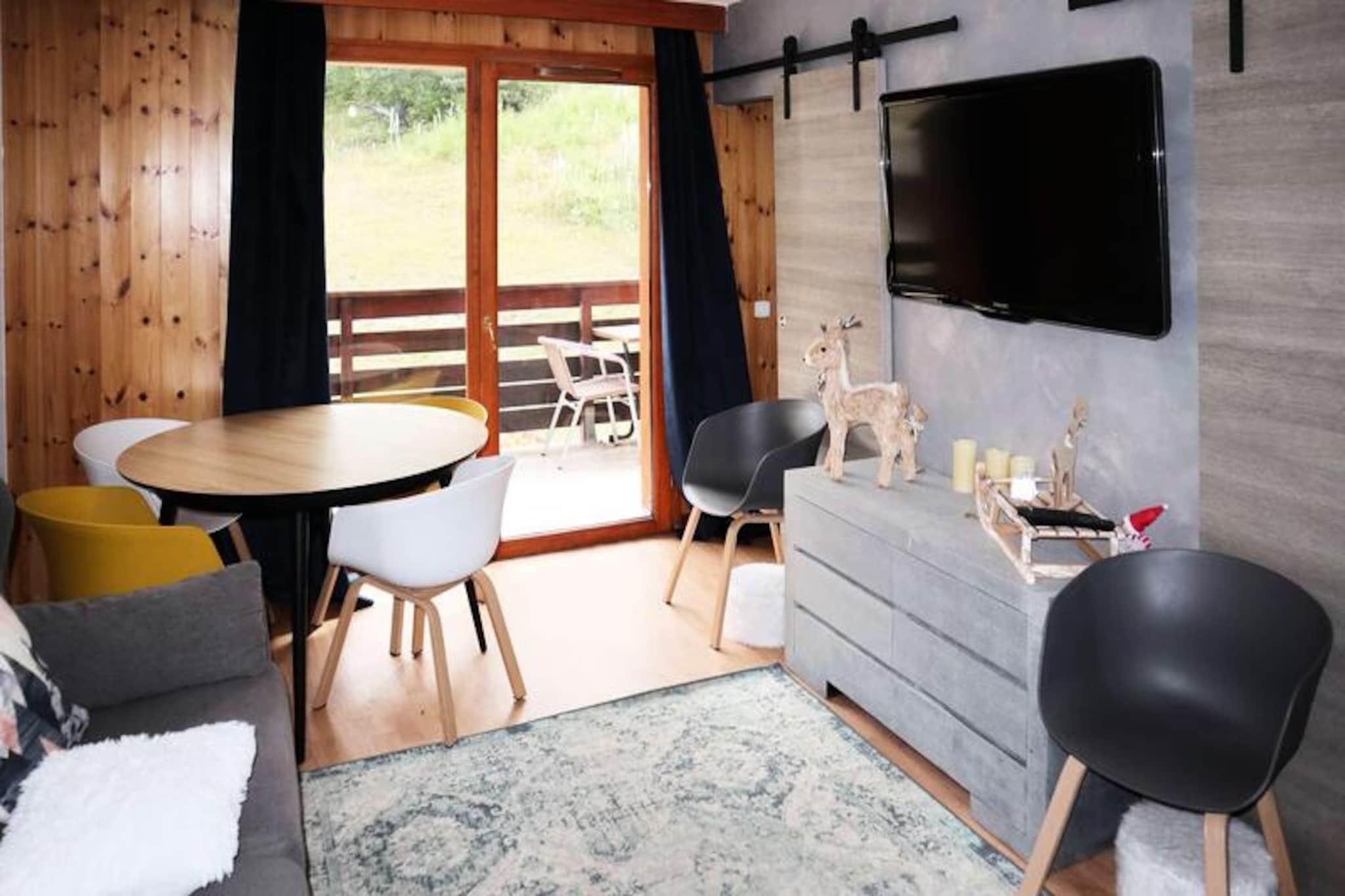 High above the serene valleys of the Hautes-Alpes, this stylish apartment in Les Orres 1800 invites you to experience the perfect blend of alpine charm and modern luxury. With its prime location at the foot of the slopes, every day begins with breathtaking views of snow-dusted peaks from your private balcony, while the crisp mountain air sets the tone for unforgettable adventures. Whether you’re here to ski, hike, or simply unwind, this property offers a warm and welcoming retreat for families and friends alike. \n\nInside, the apartment has been thoughtfully renovated to provide comfort and convenience for up to six guests. The spacious living room features a cozy double sofa bed, while the open-plan kitchen is fully equipped for preparing hearty meals after a day on the slopes. A tranquil bedroom with a queen-size bed promises restful nights, complemented by a separate sleeping alcove with two single bunk beds—perfect for children or additional guests. Modern amenities such as free Wi-Fi, a shower room, and a separate WC ensure a seamless stay, while the heated outdoor pool, sauna, and hammam in the residence add a touch of indulgence to your holiday. \n\nStep outside and you’ll find yourself in the heart of Les Orres 1800, where ski lifts, trails, and local shops are just moments away. In winter, the resort transforms into a snowy wonderland, while summer brings lush greenery and endless opportunities for hiking and biking. The nearby Lac de Serre-Ponçon offers stunning views and water-based activities, making this destination a year-round haven for nature lovers and adventure seekers. \n\nWhether you’re chasing powder on the slopes or soaking up the alpine sun, this apartment is your gateway to the beauty and excitement of the French Alps. Book your stay today and create memories that will last a lifetime.